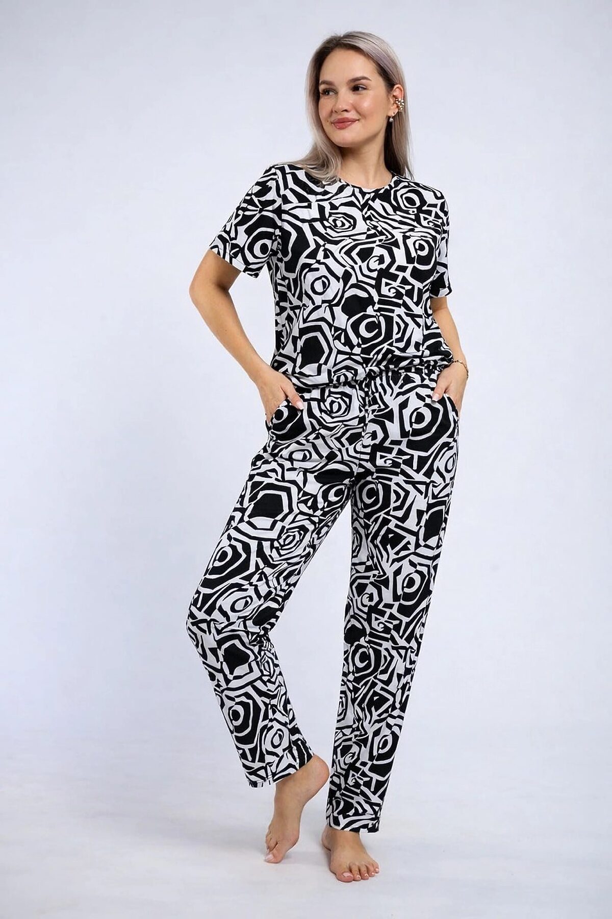 Пижама с брюками 18115 НАТАЛИ, абстрактные розы