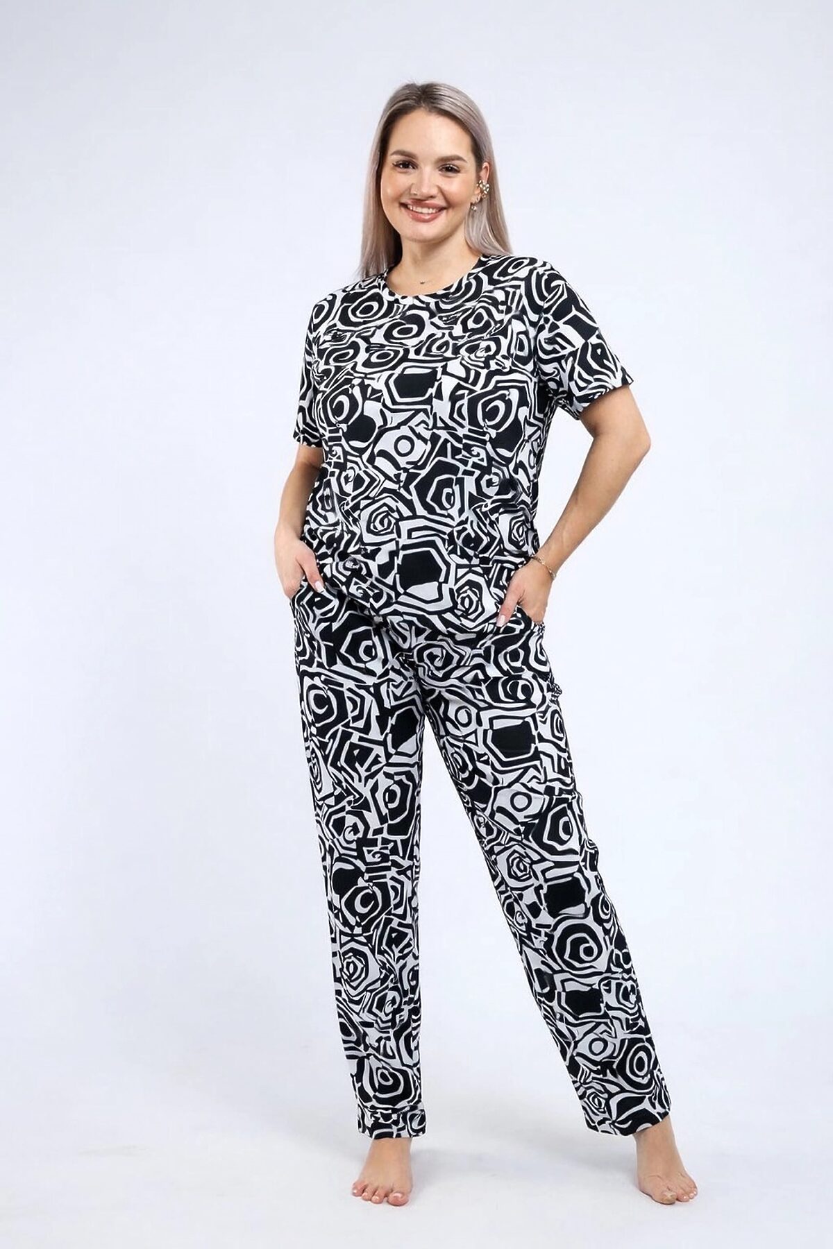 Предлагаются стильные и удобные пижамы из высококачественного материала натуральной кулирки 100% хлопка. Ткань отличается мягкостью, приятна к телу и обладает отличной воздухопроницаемостью, обеспечивая комфорт даже в теплую погоду. Благодаря натуральному составу материал абсолютно гипоаллергенен и безопасен для кожи любого типа. Изделия отличаются долговечностью и устойчивостью окраски, сохраняя свежий вид длительное время. Эти пижамы подарят идеальное сочетание стиля, удобства и здоровья, делая отдых приятным и расслабляющим.