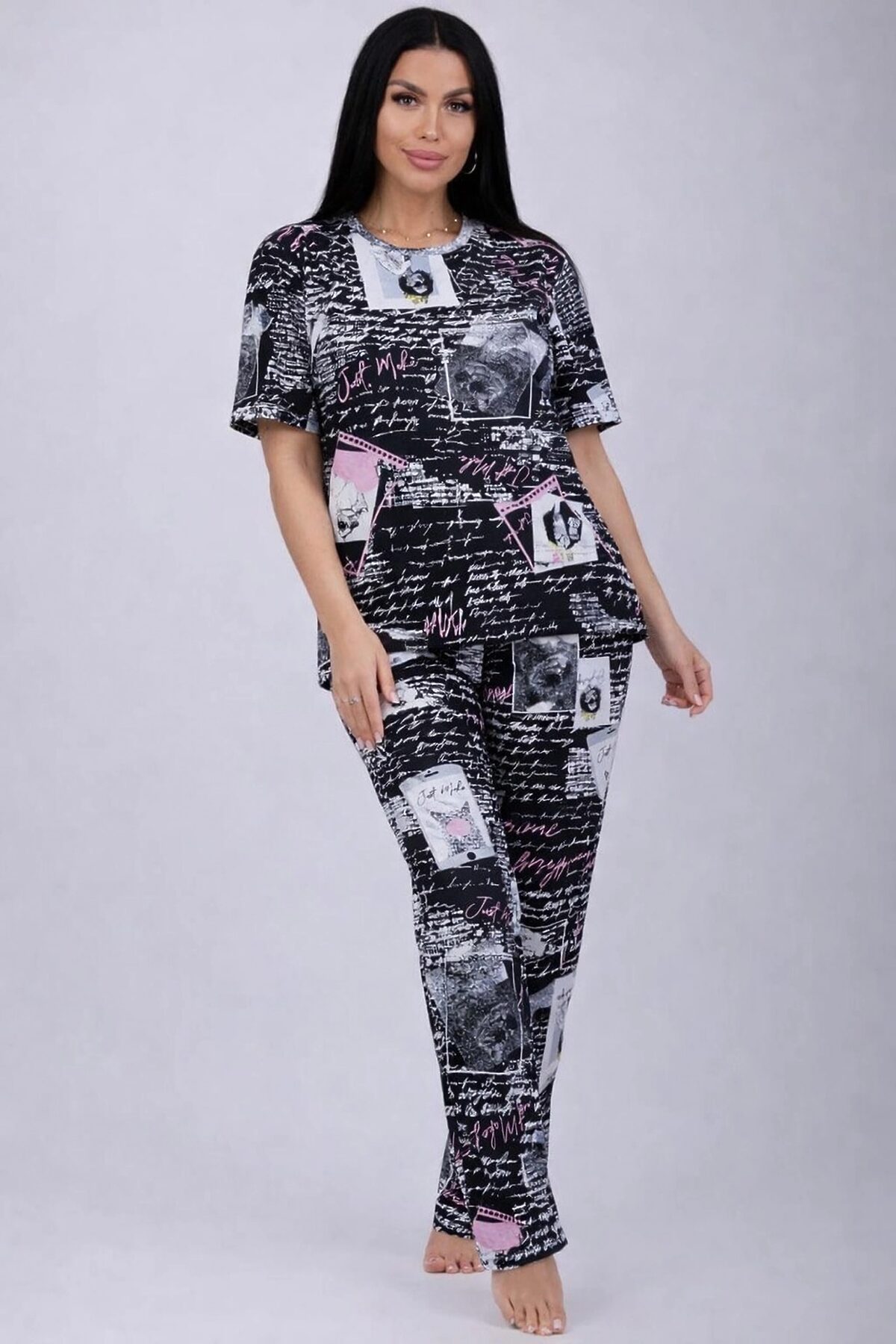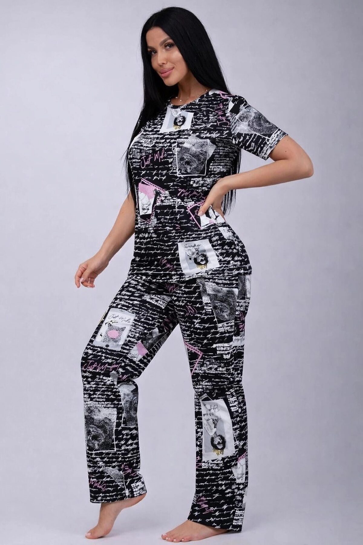 Пижама с брюками 18115 НАТАЛИ, черно-белые портреты