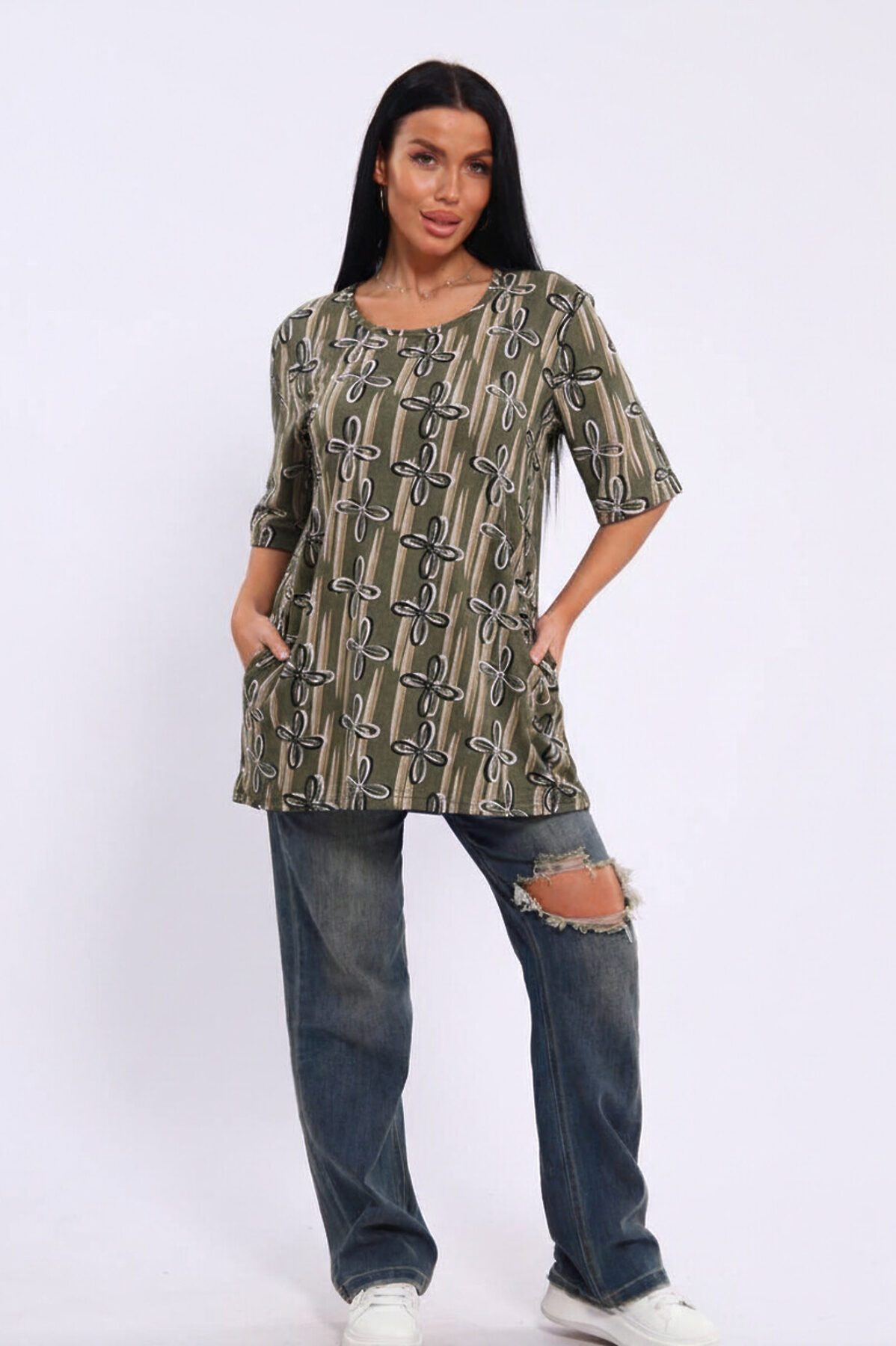 Футболка женская с карманами, модная стильная с рукавом до локтя. Красивая футболка подойдет для спортивного стиля, дополнит гардероб взрослых женщин и девушек - подростков. Свободная футболка подойдет на лето, весну и осень, идеальна для занятий спортом, фитнеса, пляжных прогулок после работы в офисе, бега, тренировок в зале, повседневной носки дома. Модель не теряет форму после стирки, обеспечит полный комфорт. Легкая трикотажная футболка станет крутым подарком на день рождения, новый год и 8 марта для любимой мамы, сестры, жены, подруги, бабушки, отлично подойдет для девушек среднего роста. Удобная футболка с карманами и рукавами 3/4 прекрасно подойдет как для домашнего отдыха, бытовых дел, так и для похода в магазин или на прогулку, или на дачу. В карманы удобно положить ключи или телефон. Отличный подарок на 8ое марта, масленицу или день матери, удобная приятная к телу вещь всегда придется по вкусу и никогда не будет лишней в гардеробе любой женщины.