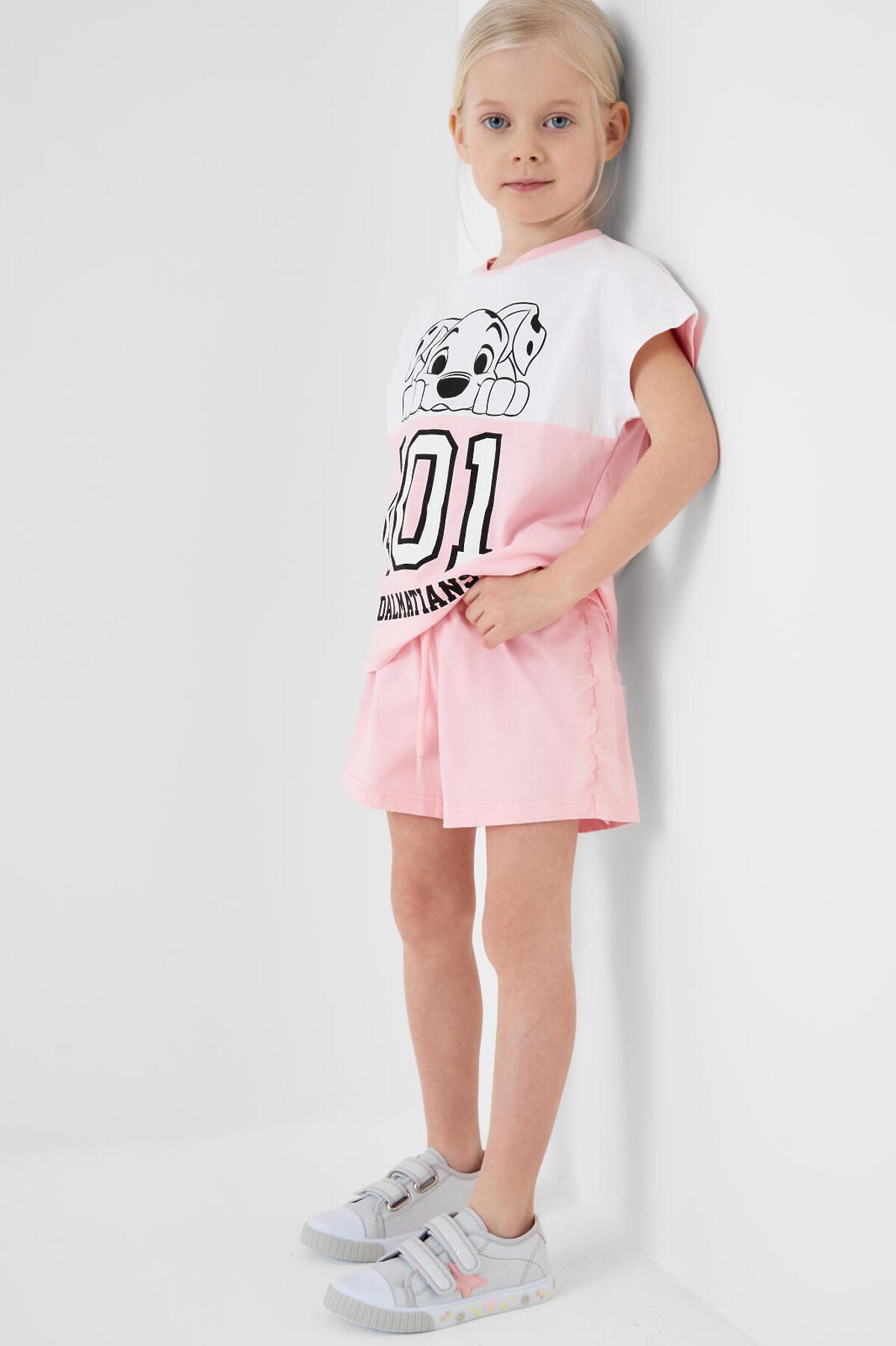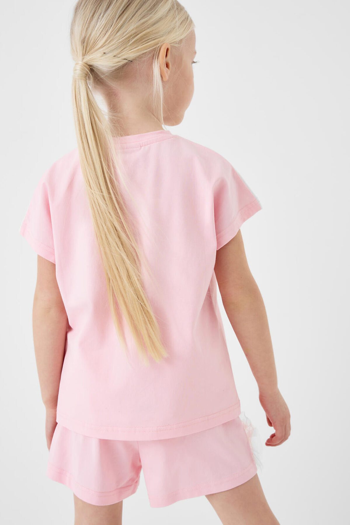 Набор шорт для девочки подростка. В комплект входят две пары шорт свободного кроя, в длине мини. Модели из мягкого, хлопкового трикотажа джерси. Удобная посадка обеспечивается эластичным поясом со шнуром. Декор из сетки по бокам.
