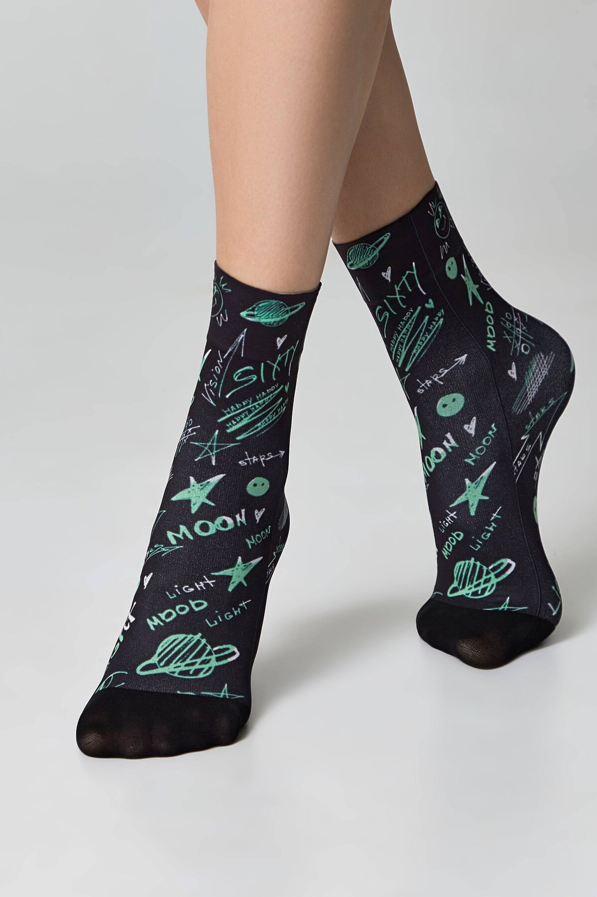 CONTE FANTASY Плотные носки с черным мыском и рисунком «Moon» CONTE ELEGANT, микс
