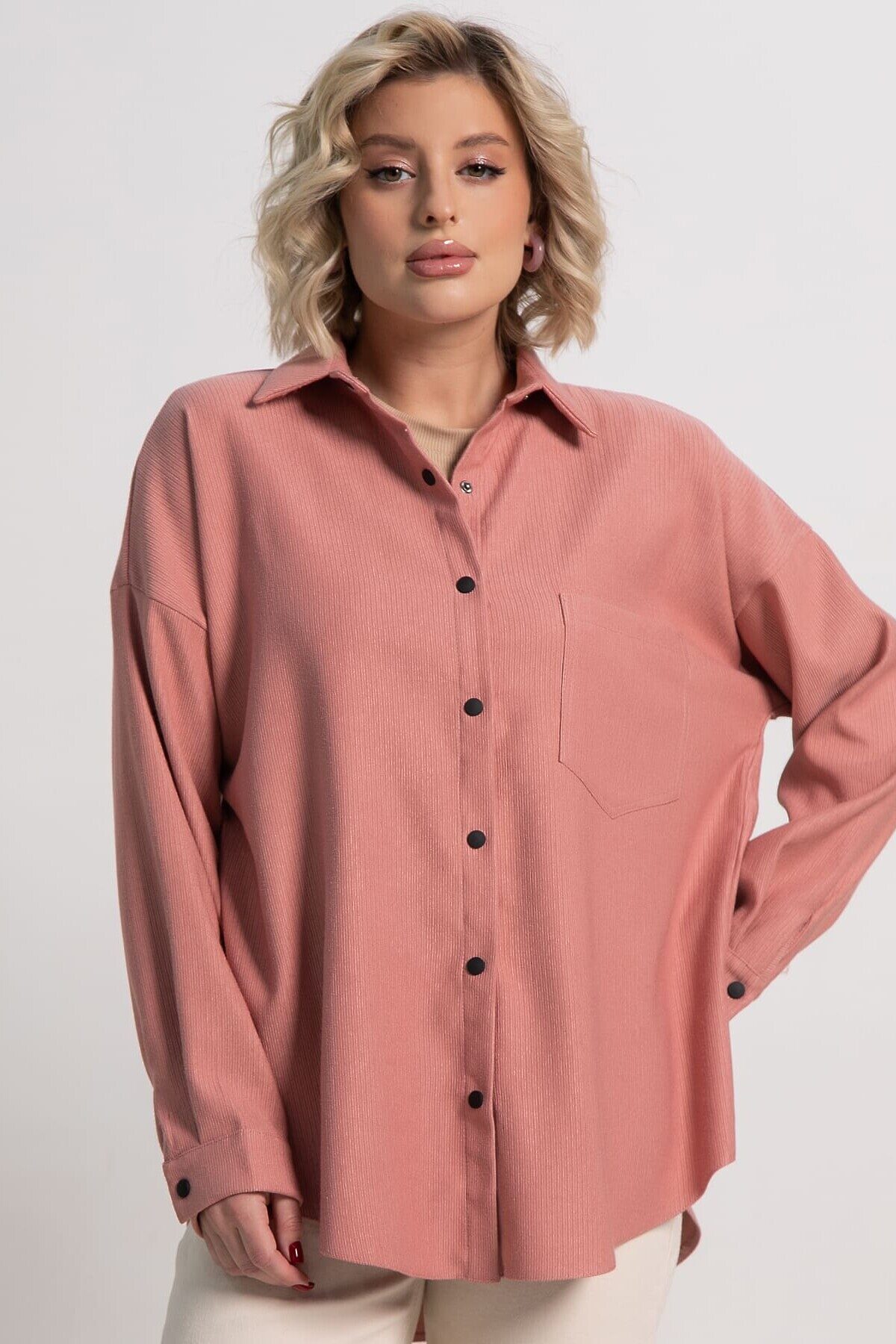 Вельветовая женская рубашка — стильный и комфортный предмет гардероба, идеально подходящий для повседневных образов. Однотонный цвет легко сочетается с различными элементами гардероба, позволяя создавать гармоничные и разнообразные образы. Классический крой с воротником рубашечным, переходящим в планку на кнопках, и манжетами с кнопками, что создает элегантный и актуальный вид. Станет отличным дополнением вашего гардероба, сочетая практичность и актуальность.