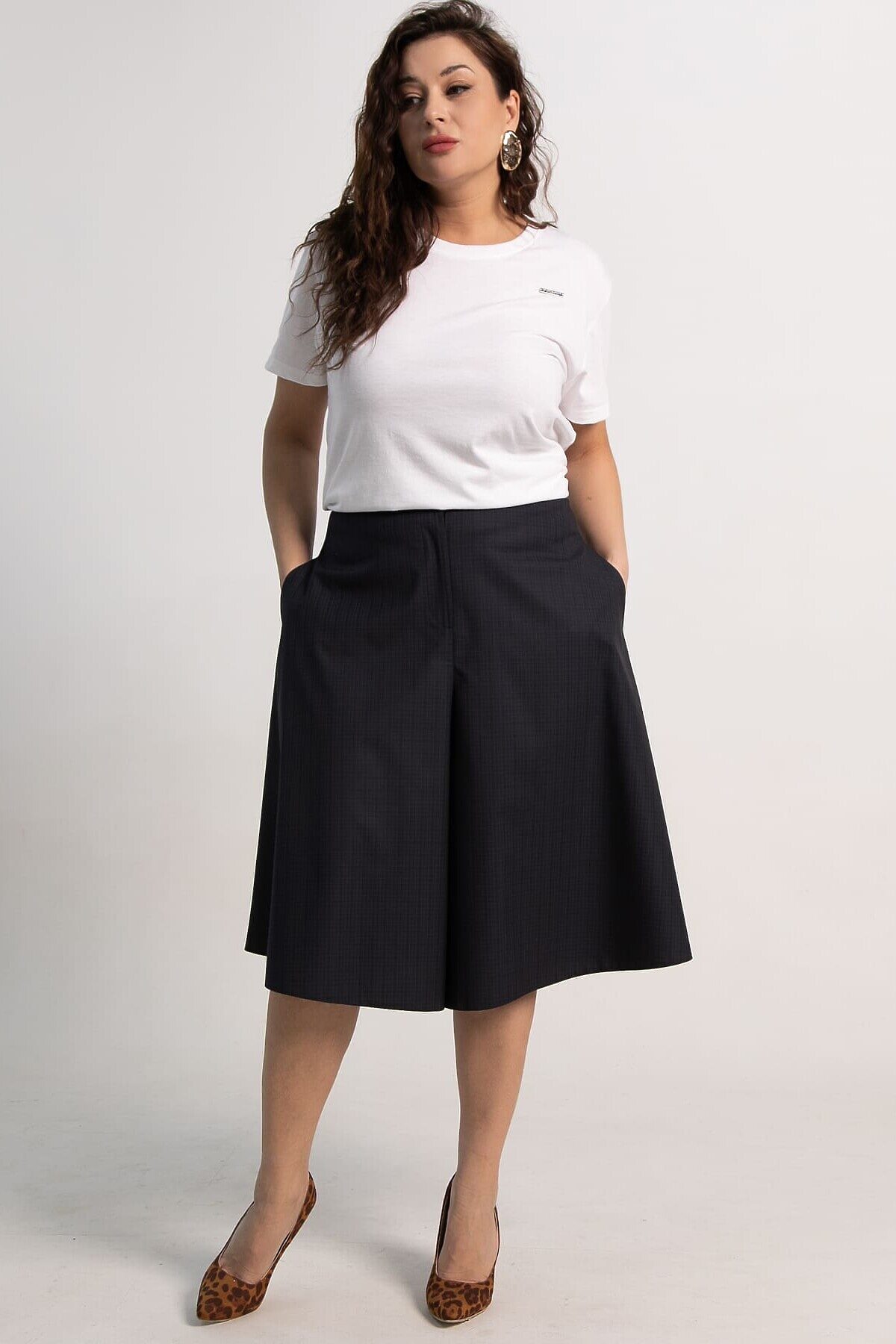 Стильная и удобная юбка-шорты для вашего современного гардероба. Эта модель объединяет элегантность юбки и практичность шорт, обеспечивая безупречный вид и максимальный комфорт. Модель выполнена в синем цвете с мелкой клеткой, что придает ей строгий и элегантный вид. Этот универсальный принт легко сочетается с любыми цветами и фактурами. Юбка-шорты идеально подходит для деловых образов с блузками и жакетами, а также для повседневных ансамблей с футболками и топами. Она поможет вам выглядеть безупречно и уверенно в любой ситуации, сочетая элегантность юбки с удобством шорт.