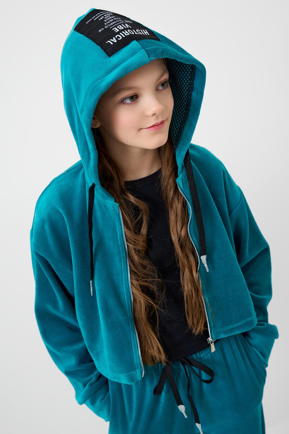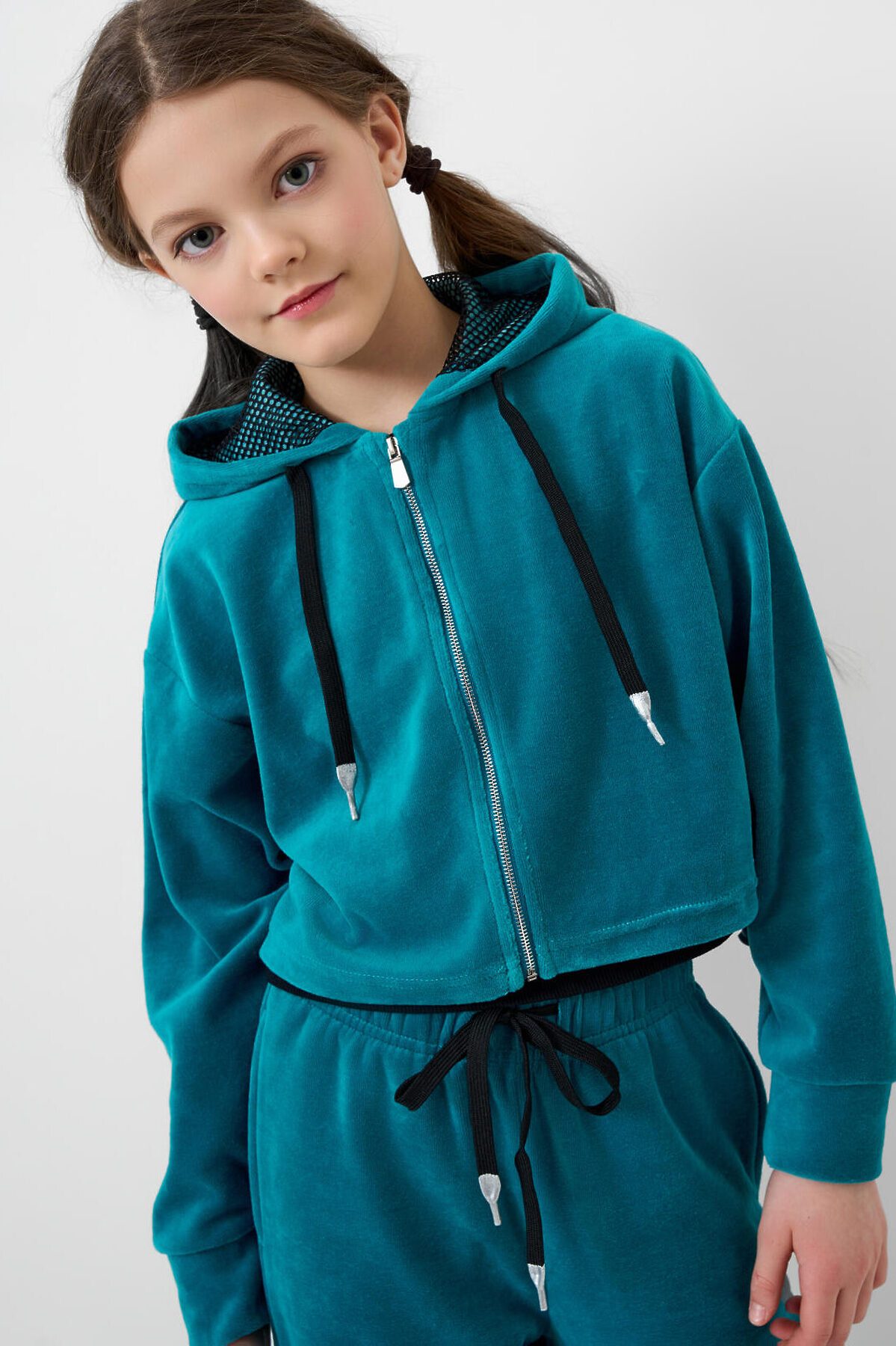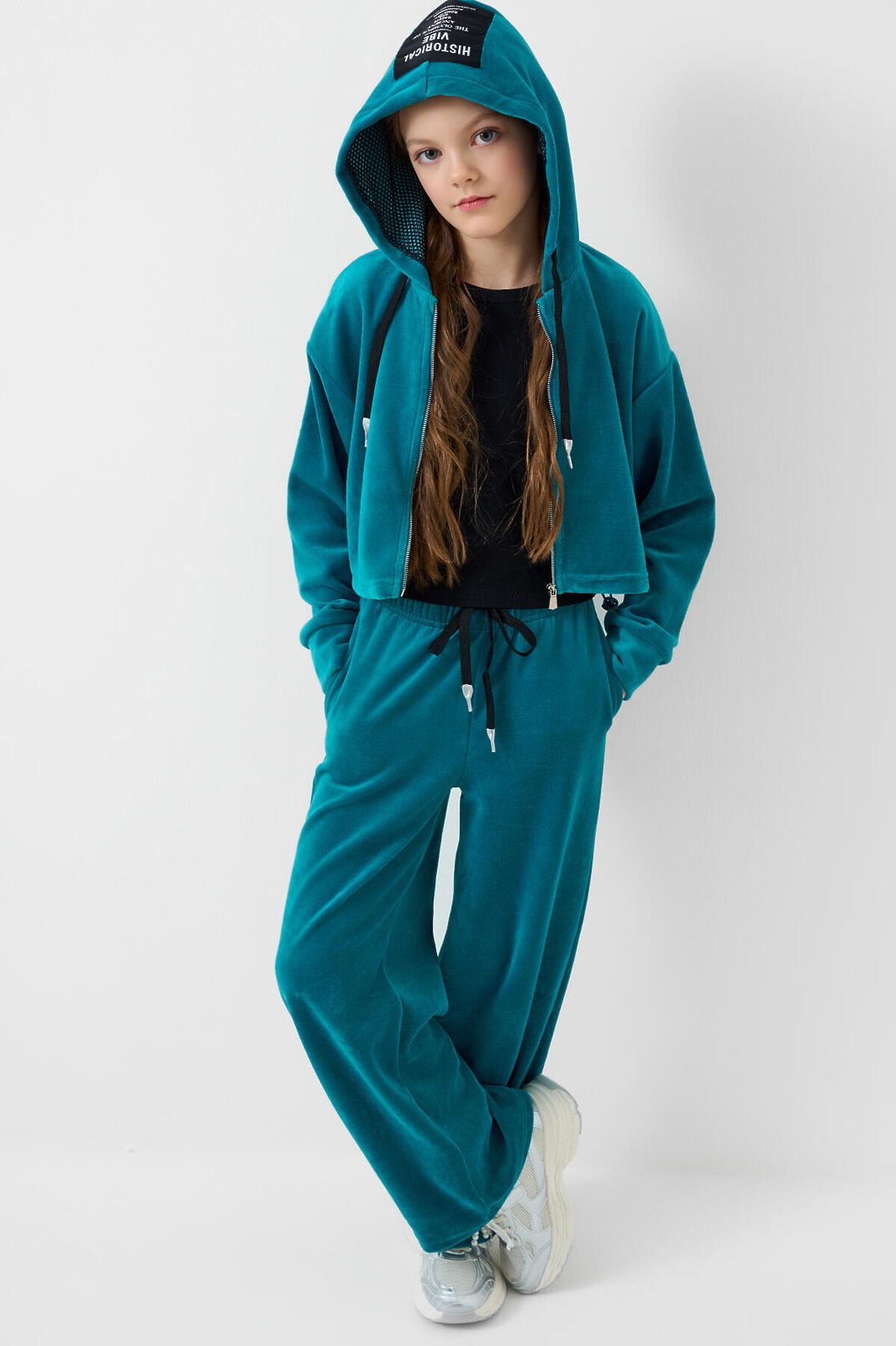 Комплект трикотажный для девочек: толстовка, брюки PLAYTODAY, бирюзовый