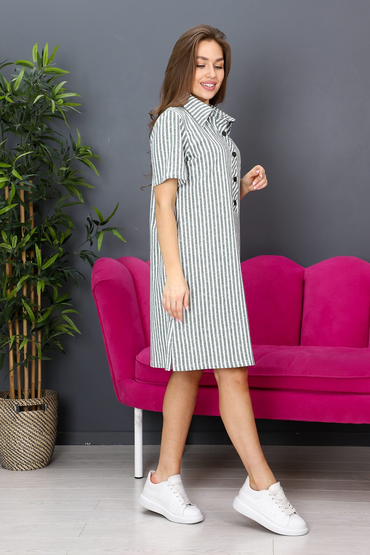 Женское летнее платье это то, что нужно каждой модной девушке! Оно свободное и стильное, идеально подходит для повседневной жизни и прогулок. Это платье изготовлено из мягкого хлопка, что делает его не только красивым, но и удобным. Носите его с туфлями на каблуке и броскими украшениями для создания элегантного образа. Или наденьте кеды или солнцезащитные очки, чтобы создать легкий и стильный образ для прогулок. Оно точно станет вашим любимым выбором для любой ситуации. Кроме того, платье в полоску является классикой моды, которая никогда не выходит из тренда. Свободный крой платья обеспечивает максимальный комфорт и свободу движения, что делает его идеальным выбором для женщин, которые ценят удобство и практичность.