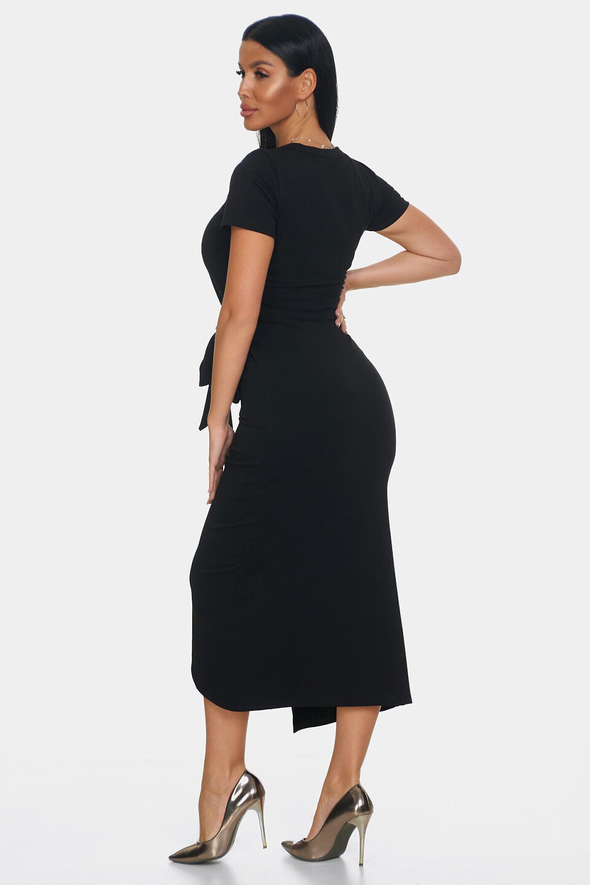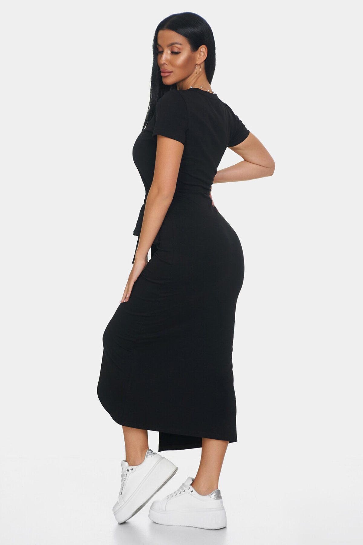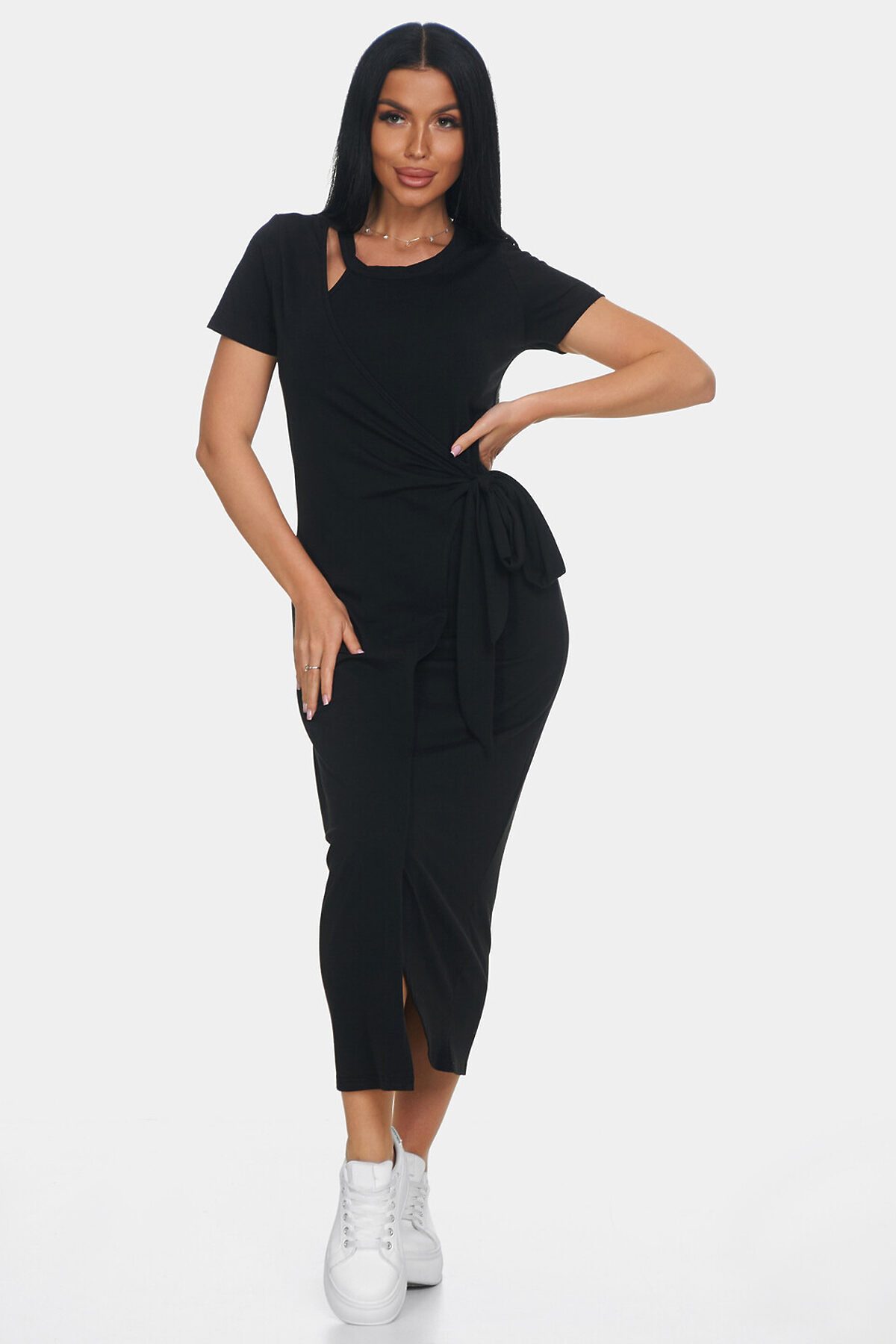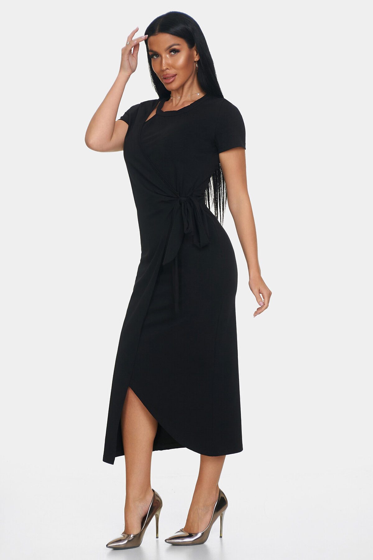 Элегантное платье идеальный выбор для создания женственного и комфортного образа. Платье офисное с длинной макси и короткими рукавами создаст утонченный и воздушный силуэт, подчеркивая вашу фигуру и обеспечивая полную свободу движений. Повседневное платье выполнено с эффектом запаха, что делает образ непринужденным и в то же время очень стильным. Необычный вырез у шеи еще одна изюминка этой модели. Такой вырез добавляет уникальности и акцента в образ, при этом оставаясь элегантным и сдержанным.
