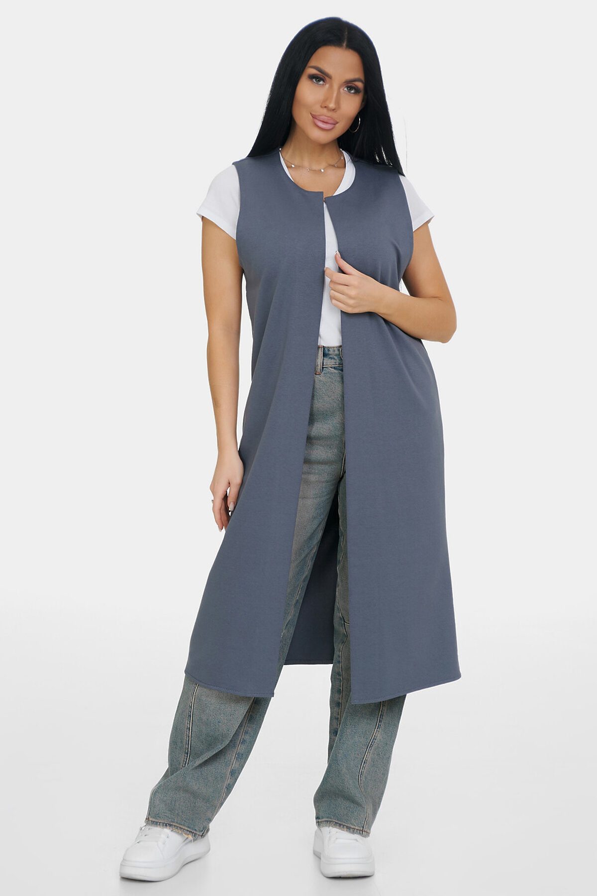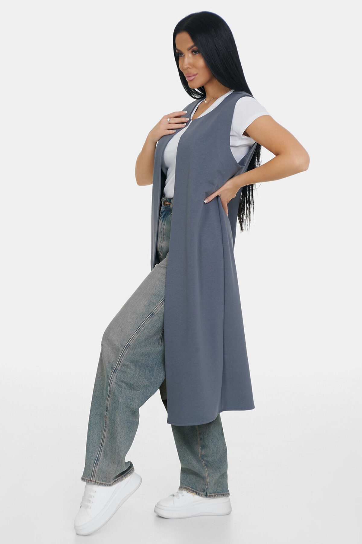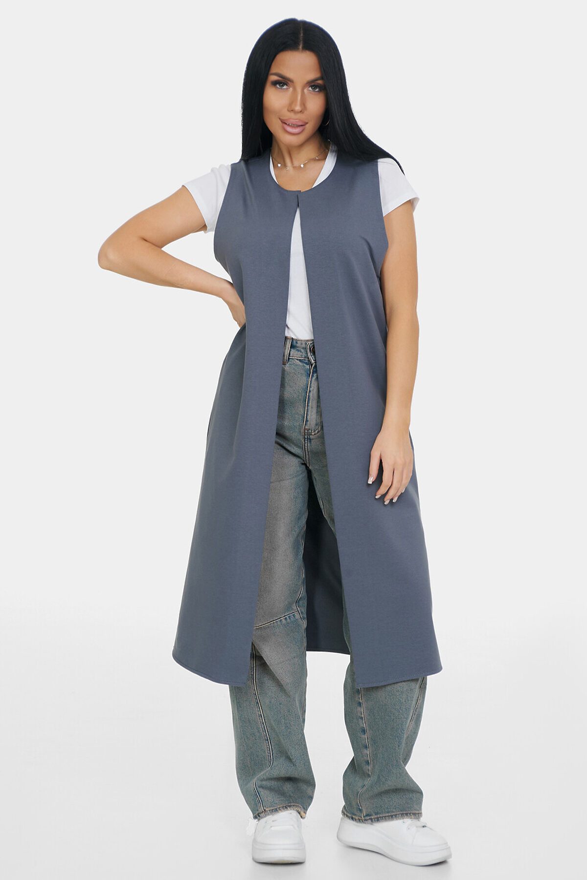 Жилетка женская длинная офисная больших размеров. Качественный удлиненный элемент женской одежды. Строгий жилет с правильной посадки, прямого кроя. Костюмный жилет поможет создать деловой образ.