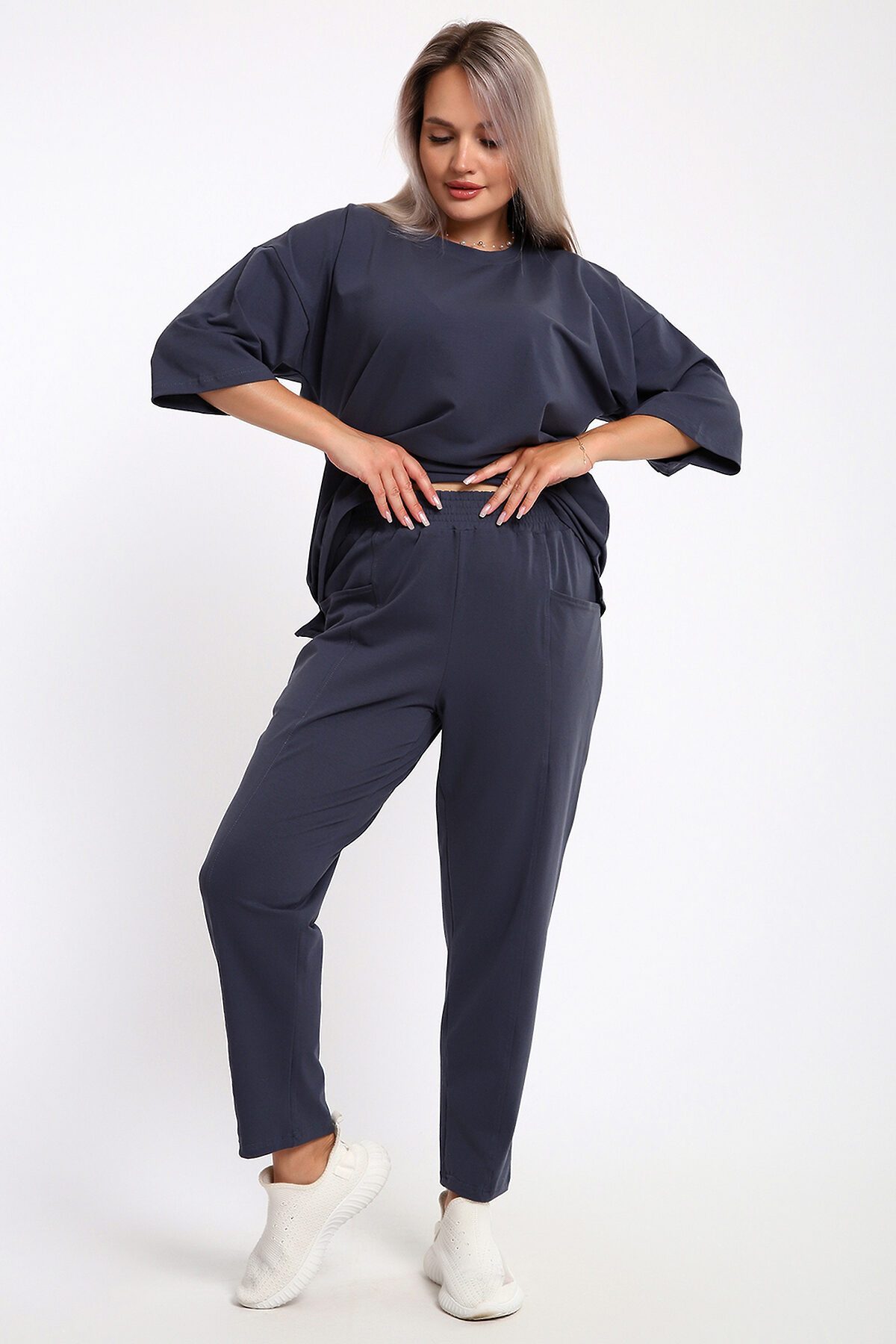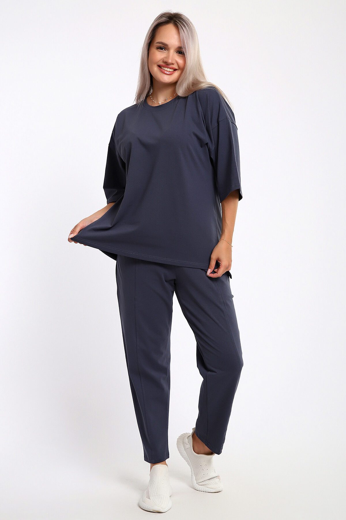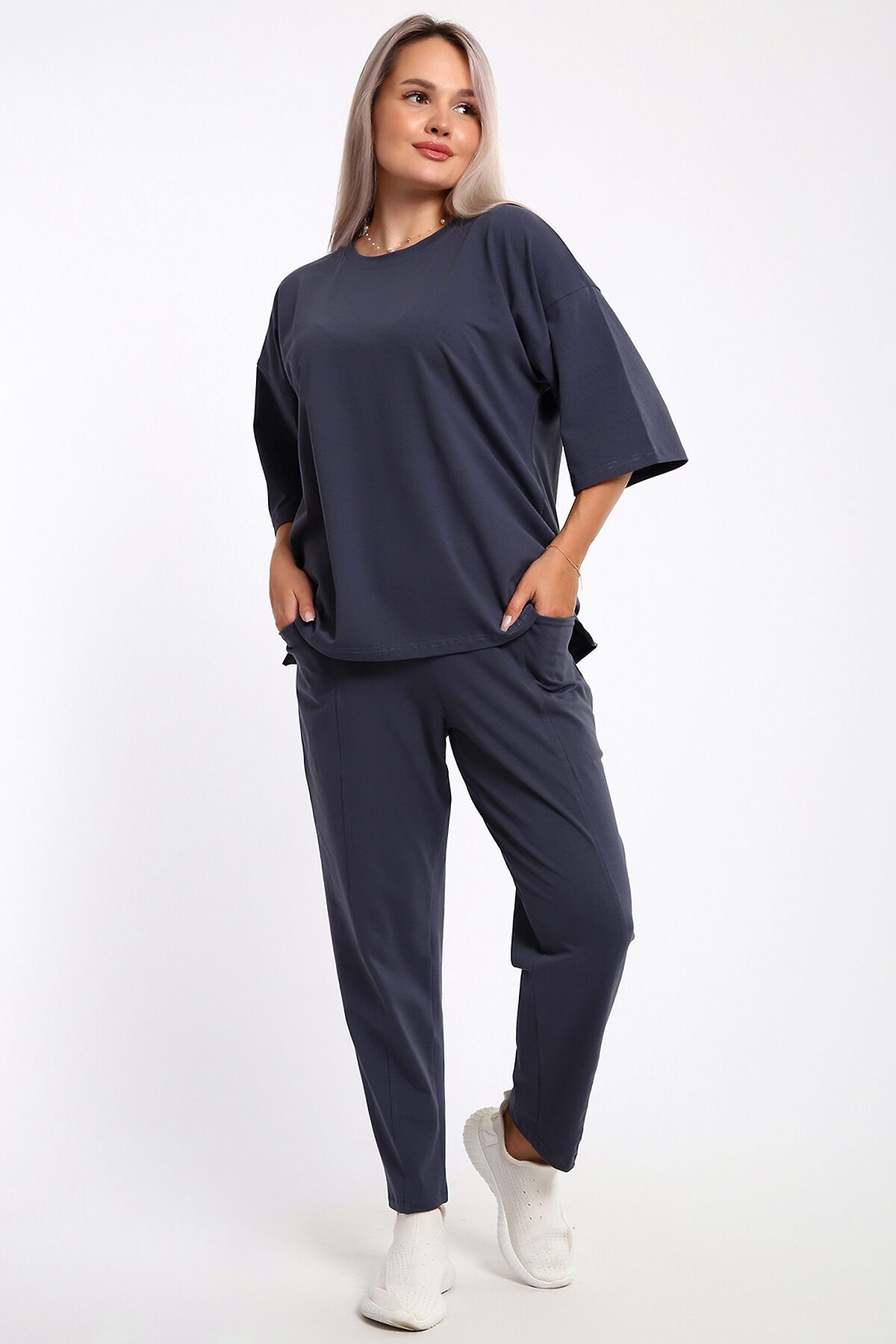 Этот женский костюм из легкого но плотного трикотажа идеальный выбор для тех, кто ценит сочетание практичности и современного стиля. Модель выполнена из кулирки с лайкрой, что делает ее незаменимой для летних прогулок, отдыха или в качестве стильной домашней одежды. Характеристики изделия: Ткань: Высококачественная кулирка с лайкрой. Натуральный хлопок позволяет коже дышать, а небольшое содержание лайкры обеспечивает отличную эластичность, предотвращает вытяжение коленей и деформацию изделия после стирки. Размерный ряд: Представлен в размерах 4858, что позволяет подобрать идеальный вариант для любого типа фигуры Детали кроя: Верх (Кофта): Силуэт: Свободный крой (оверсайз) обеспечивает максимальный комфорт и скрывает возможные нюансы фигуры. Рукав: Укороченный или спущенное плечо, что добавляет образу легкости и удобства в движении. Низ (Брюки): Фасон: Брюки свободного или прямого кроя с комфортной посадкой. Функциональность: Модель дополнена удобными глубокими карманами. Пояс: Эластичная резинка мягко фиксирует брюки на талии, не вызывая дискомфорта при длительной носке