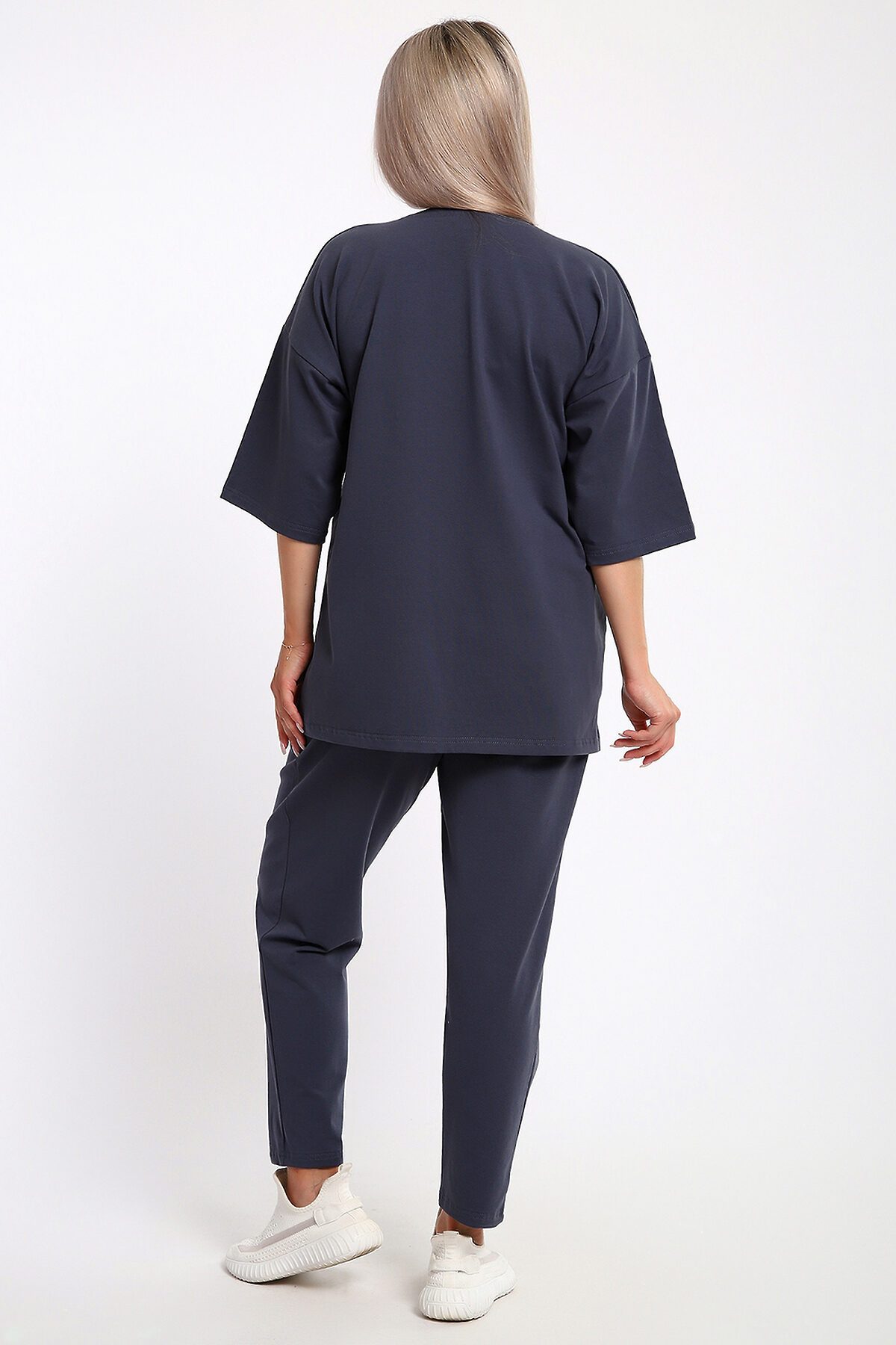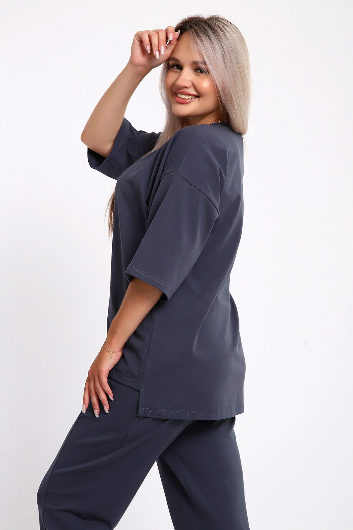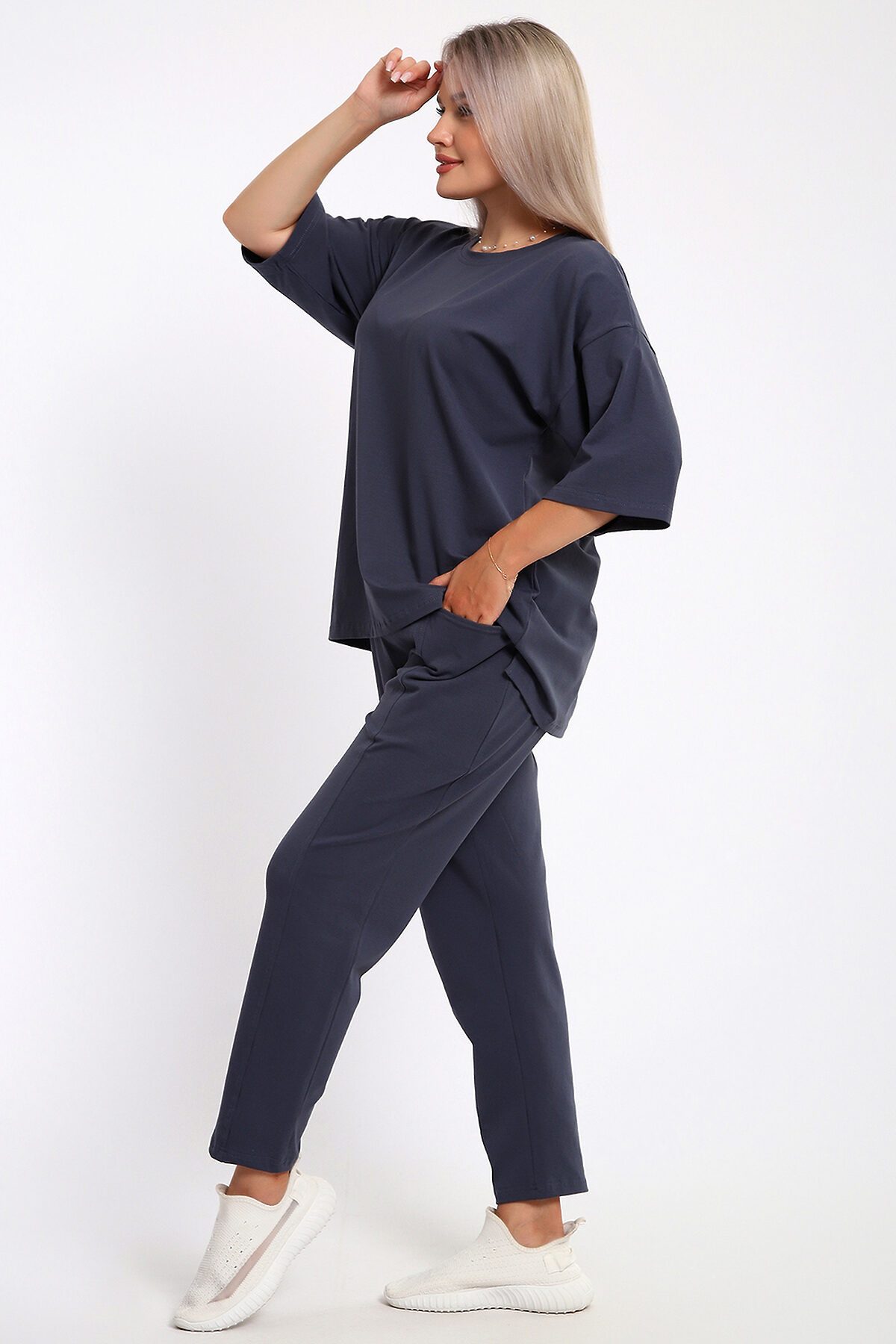 Этот женский костюм из легкого но плотного трикотажа идеальный выбор для тех, кто ценит сочетание практичности и современного стиля. Модель выполнена из кулирки с лайкрой, что делает ее незаменимой для летних прогулок, отдыха или в качестве стильной домашней одежды. Характеристики изделия: Ткань: Высококачественная кулирка с лайкрой. Натуральный хлопок позволяет коже дышать, а небольшое содержание лайкры обеспечивает отличную эластичность, предотвращает вытяжение коленей и деформацию изделия после стирки. Размерный ряд: Представлен в размерах 4858, что позволяет подобрать идеальный вариант для любого типа фигуры Детали кроя: Верх (Кофта): Силуэт: Свободный крой (оверсайз) обеспечивает максимальный комфорт и скрывает возможные нюансы фигуры. Рукав: Укороченный или спущенное плечо, что добавляет образу легкости и удобства в движении. Низ (Брюки): Фасон: Брюки свободного или прямого кроя с комфортной посадкой. Функциональность: Модель дополнена удобными глубокими карманами. Пояс: Эластичная резинка мягко фиксирует брюки на талии, не вызывая дискомфорта при длительной носке