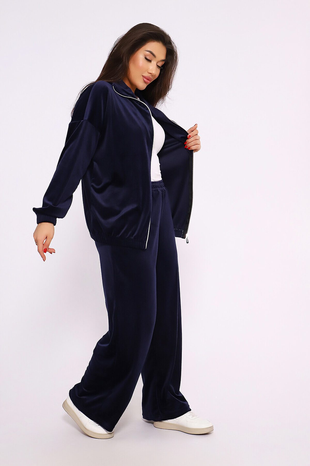 Этот велюровый прогулочный костюм идеальное сочетание шика нулевых и современного комфорта. Мягкая фактура ткани с деликатным переливом делает образ дорогим и уютным одновременно. Детали модели: Олимпийка: Практичный верх на молнии с высоким воротником-стойкой, который защищает от ветра. Манжеты на рукавах и по низу изделия обеспечивают идеальную посадку. Брюки: Свободный крой дарит полную свободу движений. Пояс на мягкой эластичной резинке не перетягивает талию. Материал: Плотный, но дышащий велюр премиум-качества. Ткань износостойкая, не вытягивается на коленях и локтях, сохраняя презентабельный вид долгое время. Акцент: Главная фишка эффектный принт на спине, который превращает базовый спортивный костюм в стильный элемент стритстайл-гардероба. Костюм подходит как для активных прогулок и путешествий, так и для создания расслабленного домашнего образа.