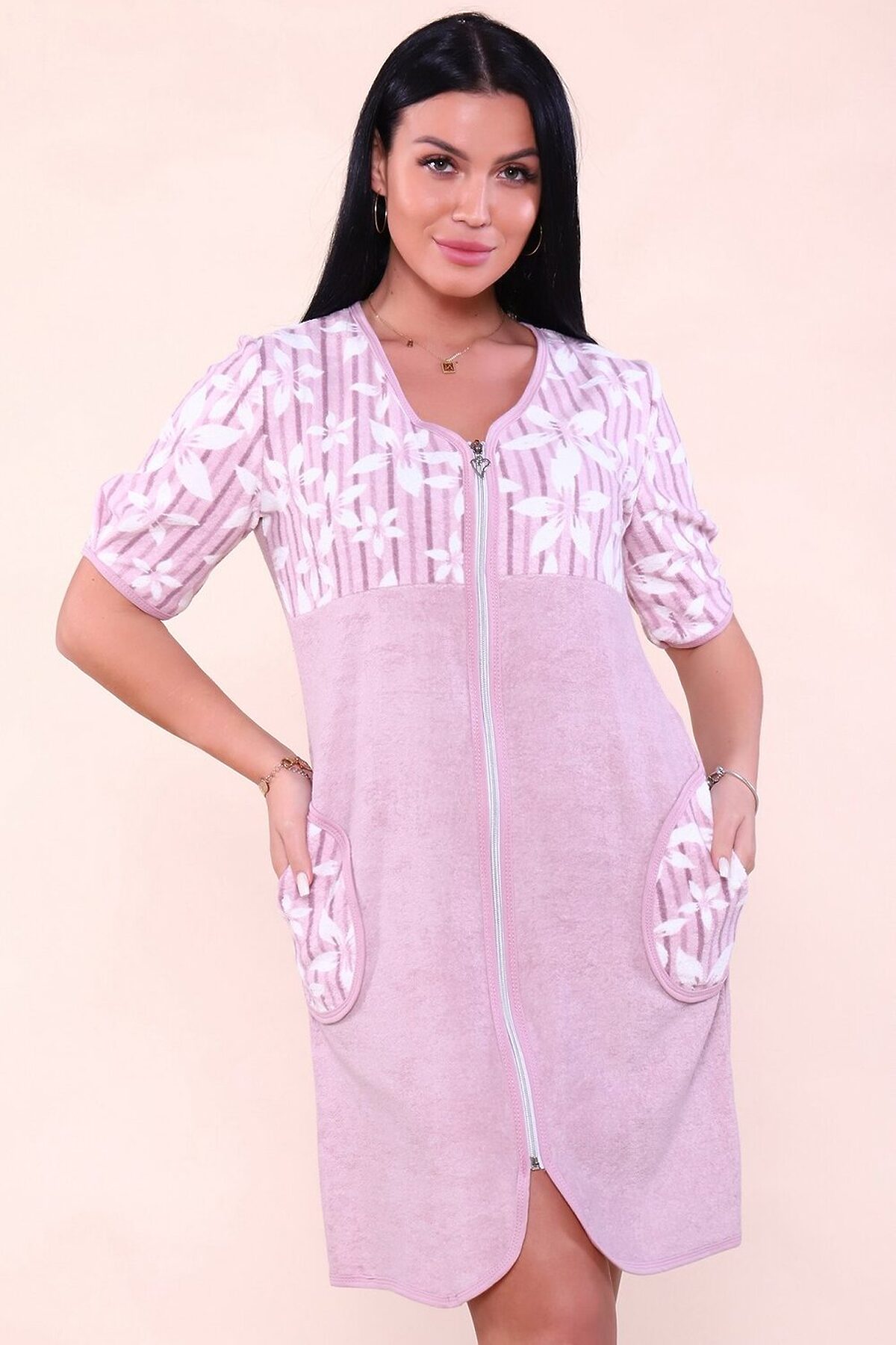 Халат 503 махровый Цветы НАТАЛИ, сухая роза