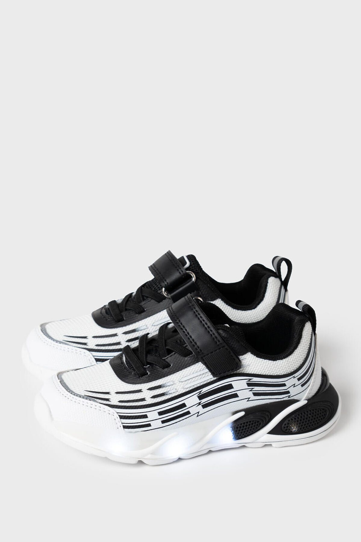 Кроссовки для мальчика с подошвой с LED-подсветкой Кроссовки выполнены из дышащего текстиля и искусственной кожи с повышенной износостойкостью. Эластичные шнурки и липучка создают удобство при обувании. Профилированная съемная стелька из натуральной кожи с анатомической формой подсводника обеспечивает правильную нагрузку на стопу. В носочной части обуви стоит текстильная подкладка c высоким содержанием хлопка 80%, которая обладает высокой гигроскопичностью. В пяточной части обуви текстильная подкладка обладает хорошей износостойкостью. Кроссовки имеют светоотражающие элементы. Формоустойчивый задник поддерживает стопу в правильном положении. Эргономичная форма колодки обеспечивает правильное формирование стопы ребенка. Подошва из ЭВА очень легкая.