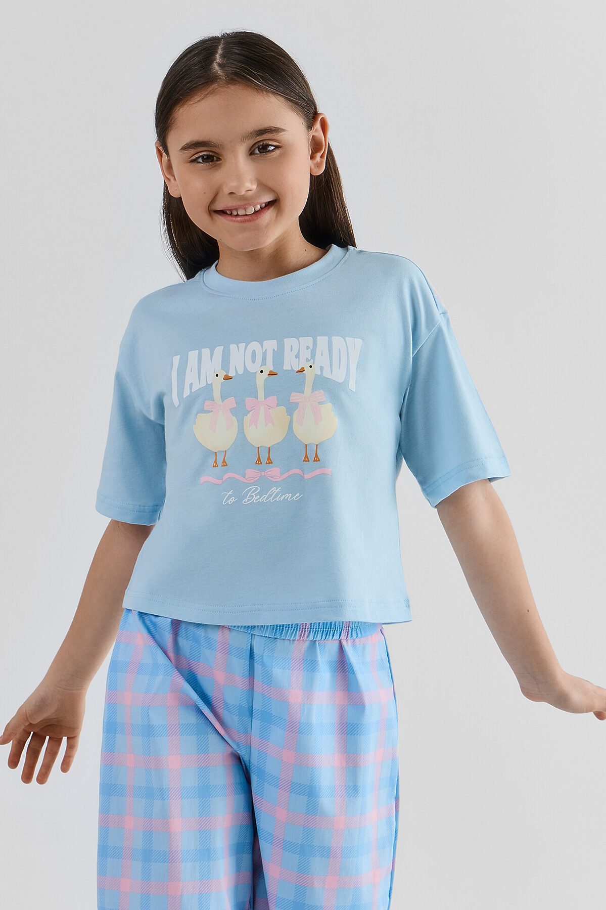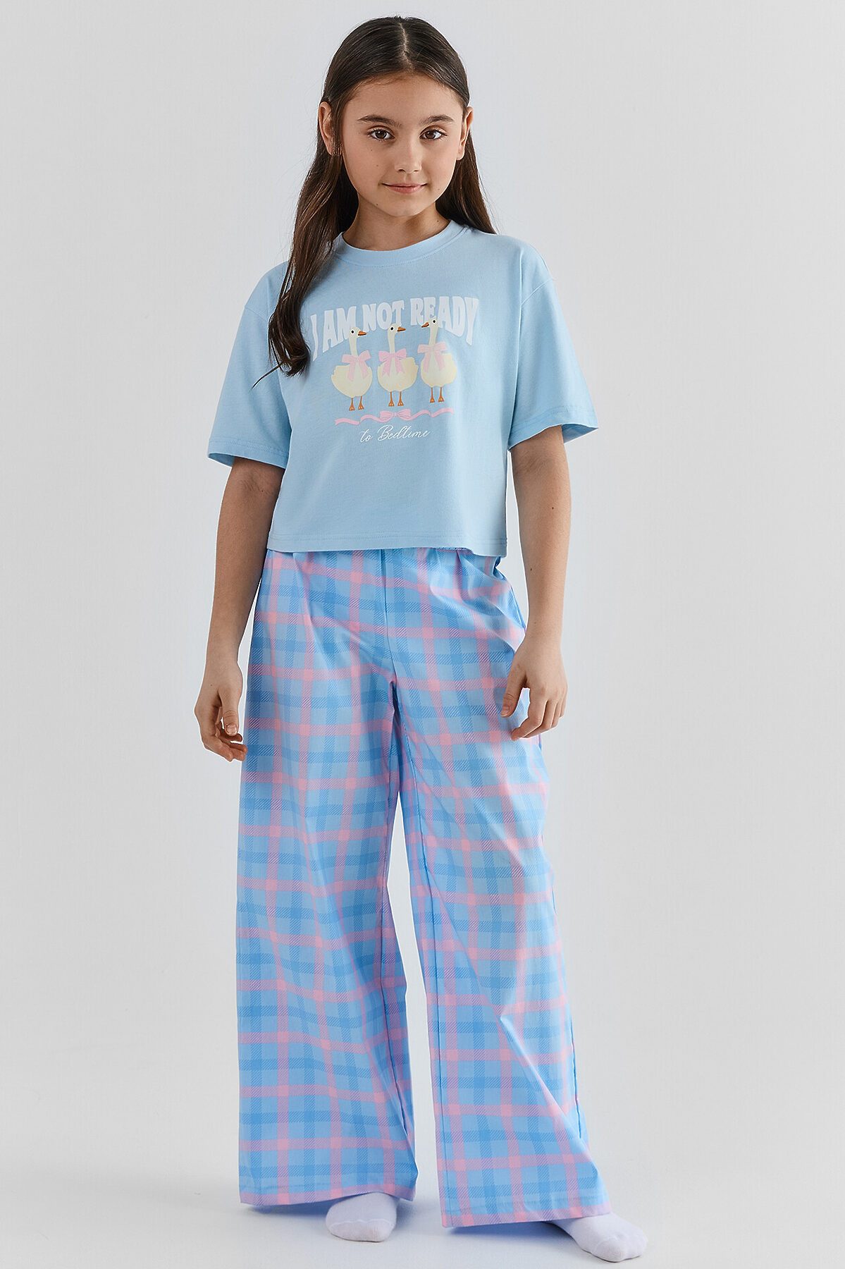 Комплект для девочек (футболка, брюки) MARK FORMELLE, голубой +розово -голубая клетка