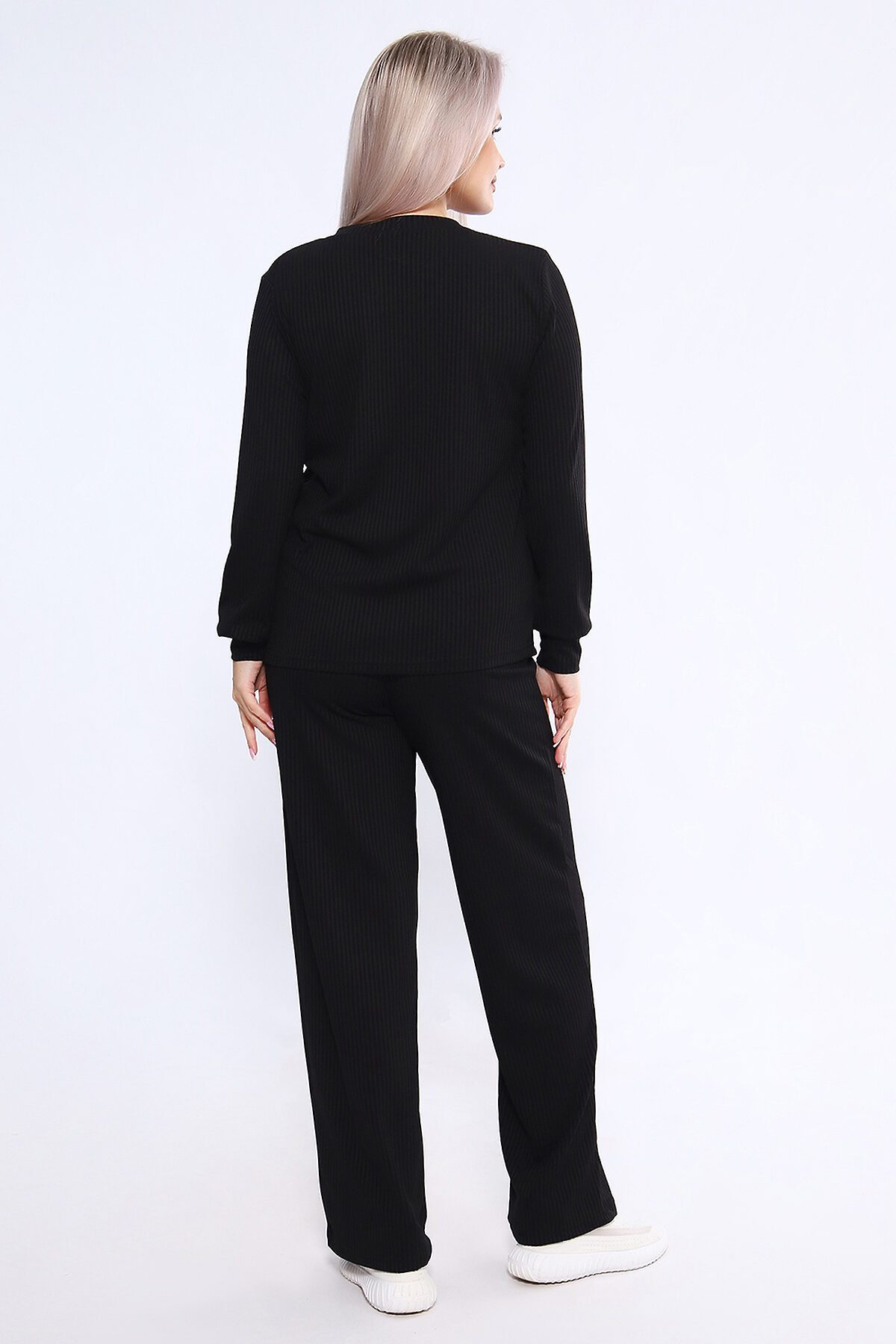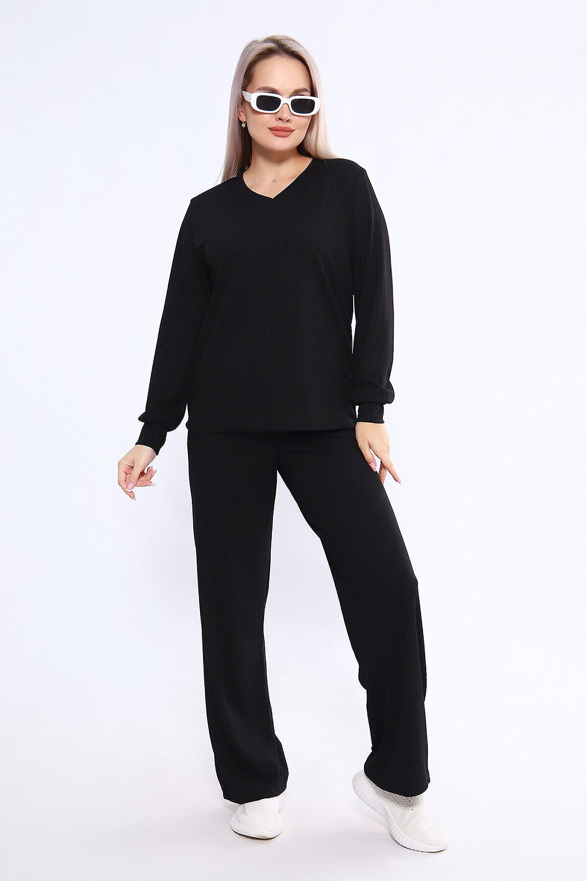 Женский костюм из трикотажа лапша (рубчик) состоит из лонгслива с длинными рукавами и манжетами и свободных брюк, выполнен из материала с преобладанием полиэстера (95%) и добавлением спандекса (5%), что обеспечивает комфорт и практичность. Костюм подходит как для повседневного ношения, так и в качестве домашней одежды, и представлен в широком размерном диапазоне от 46 до 60 Материал и состав: Основу составляет полиэстер (95%), что делает ткань прочной, устойчивой к износу и легкой в уходе (не линяет и не скатывается). Добавление спандекса (5%) обеспечивает эластичность, благодаря чему костюм хорошо садится по фигуре и не сковывает движений. Трикотаж имеет характерную фактуру в вертикальный рубчик, известную как лапша или кашкорсе. Лонгслив: Модель включает лонгслив (кофту с длинным рукавом), свободного силуэта. Рукава, как правило, дополнены манжетами. Брюки: В комплекте идут свободные прямые брюки, что помогает скрыть возможные недостатки фигуры и подчеркнуть достоинства. Могут быть на резинке для дополнительного комфорта. Размерный ряд: Костюм доступен в широком диапазоне размеров, обычно перекрывающем стандартные и большие размеры от 46 до 60. Применение: Благодаря мягкости и комфорту материала, костюм позиционируется как повседневная одежда для прогулок или встреч, а также как идеальный домашний комплект для отдыха.