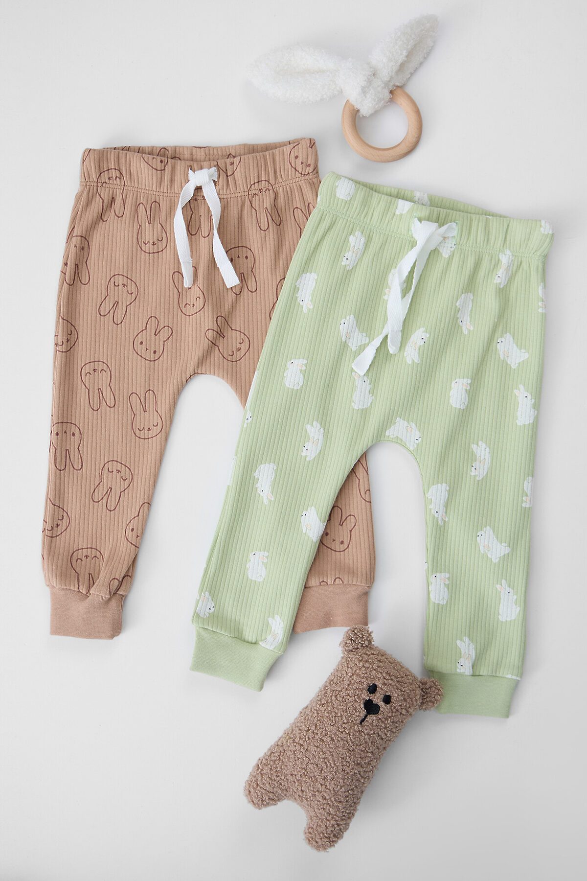 Ползунки детские (2шт.) MARK FORMELLE, зайки на бежевом +зайчата на св.зеленом