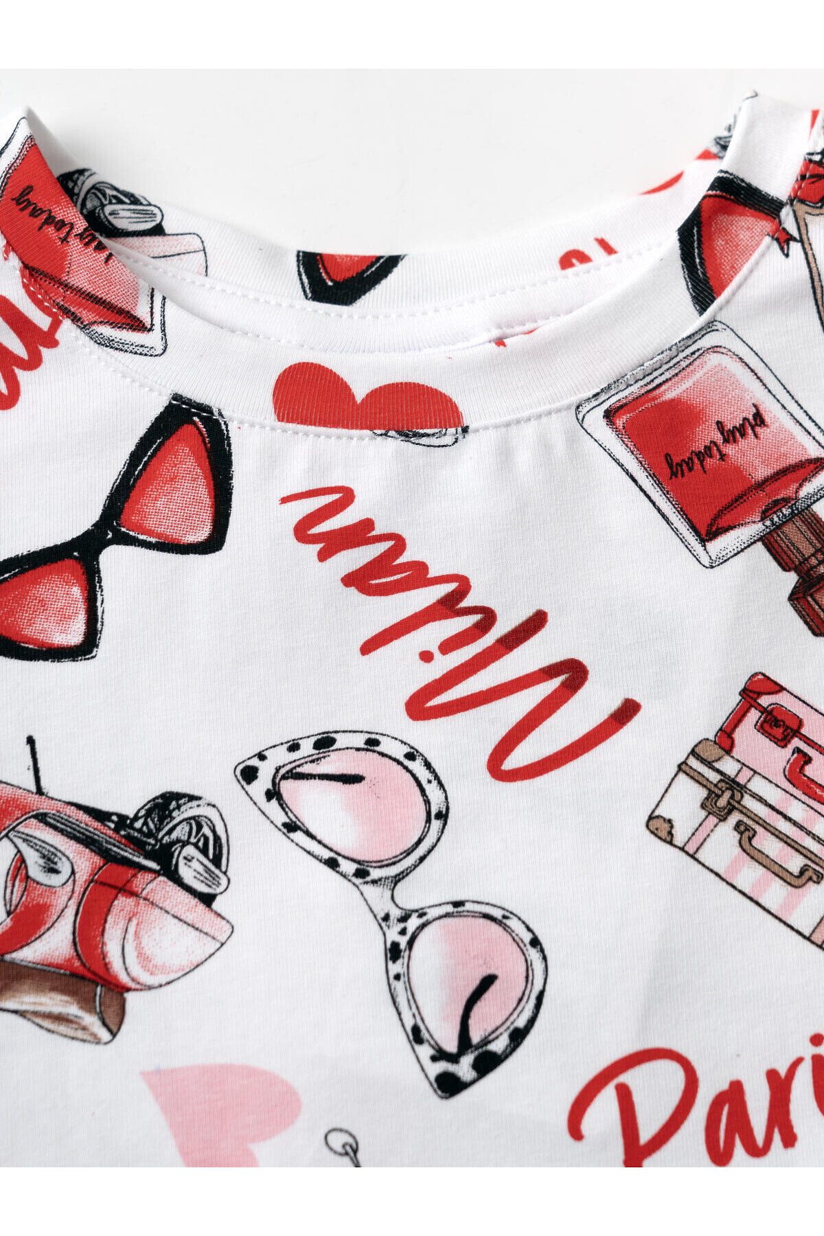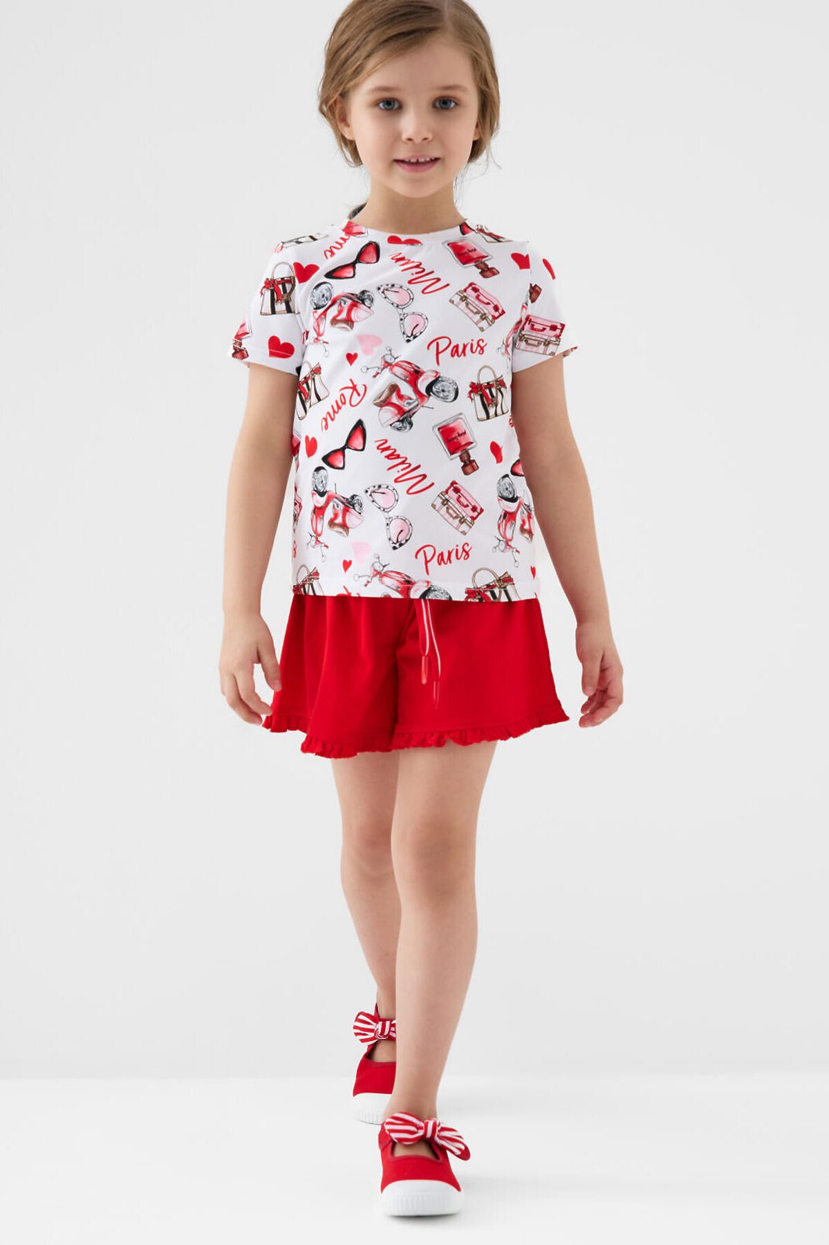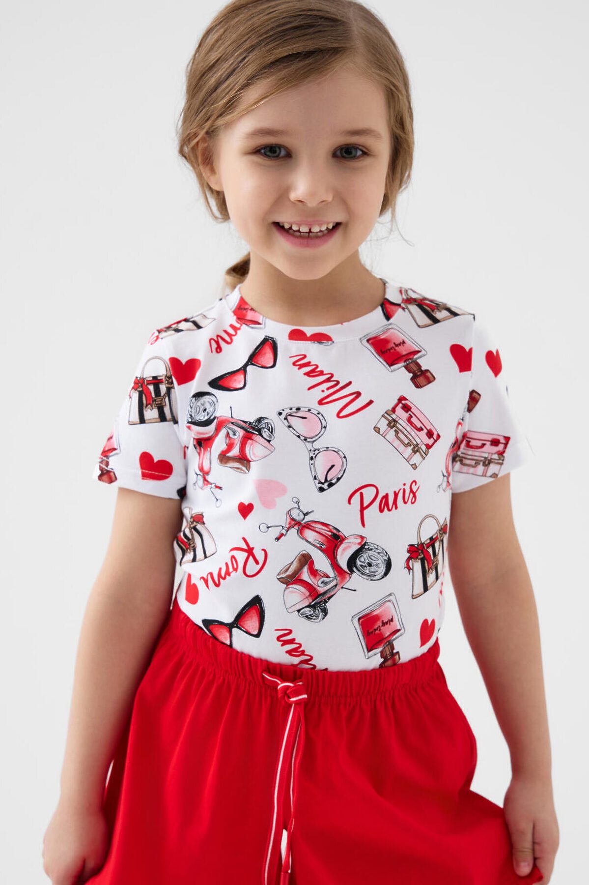 Детская футболка для девочки. Модель прямого кроя, выполнена из эластичного хлопкового трикотажа джерси. Яркие принты. Горловина круглая.