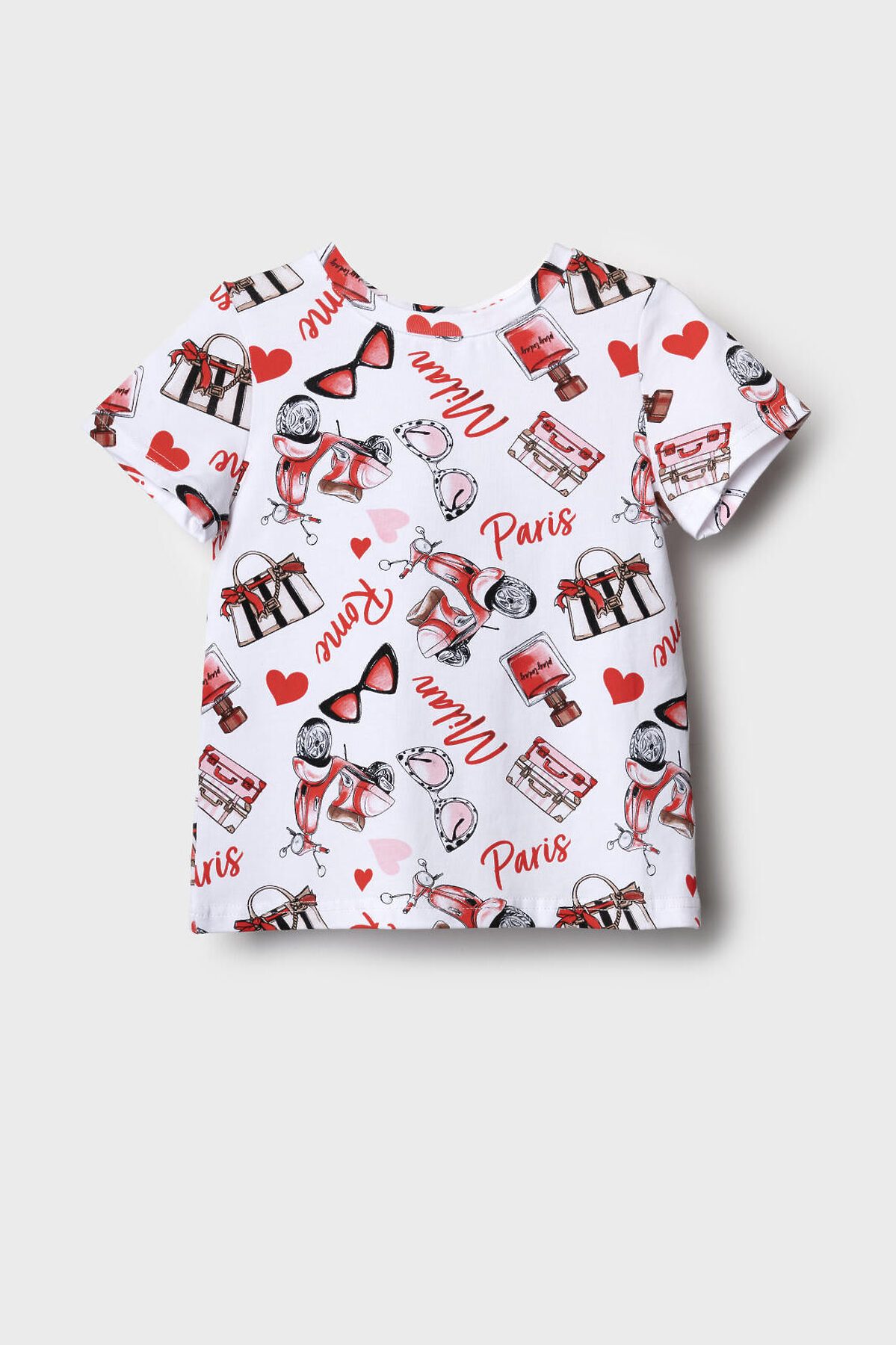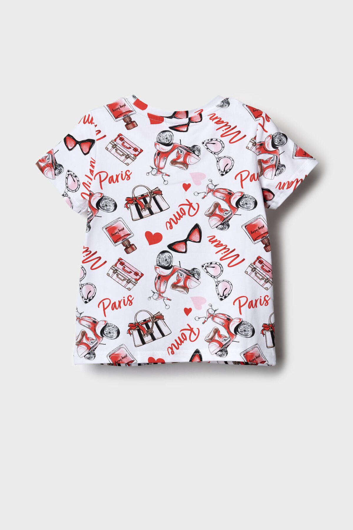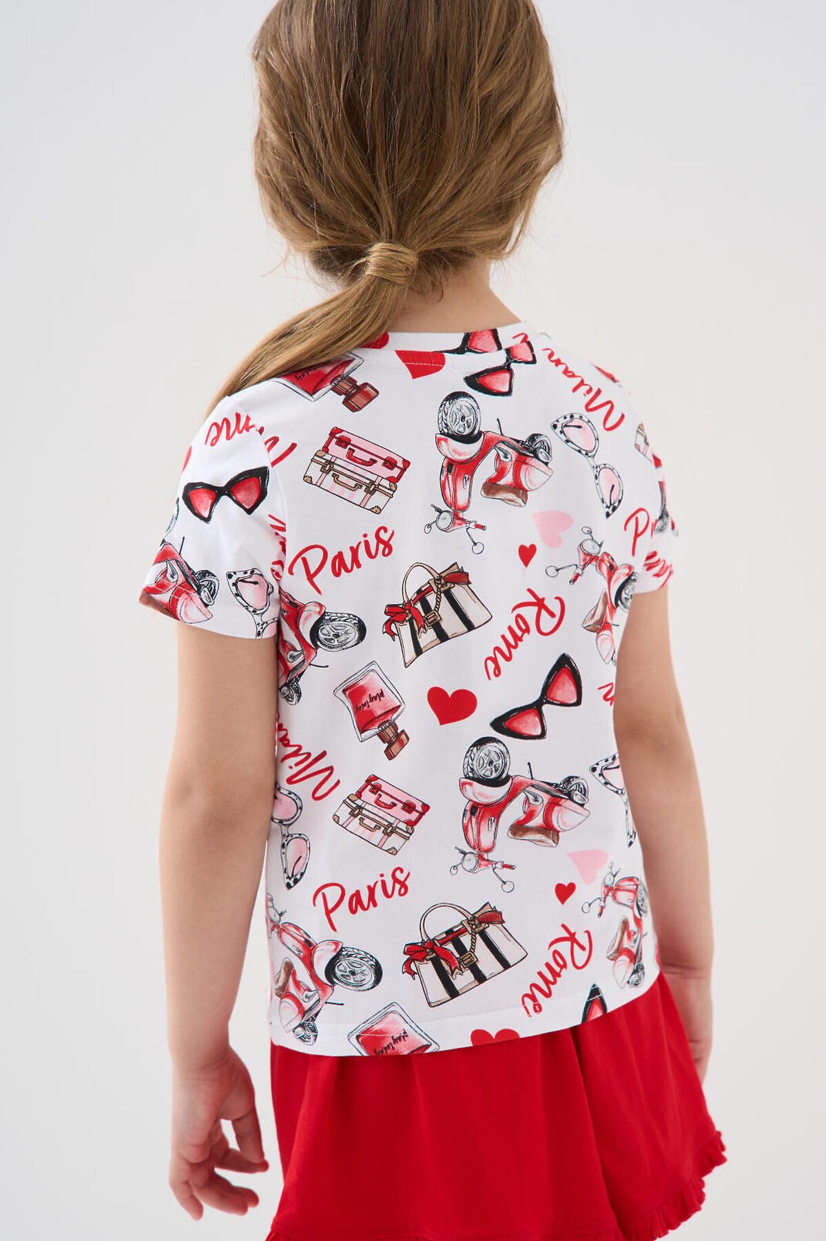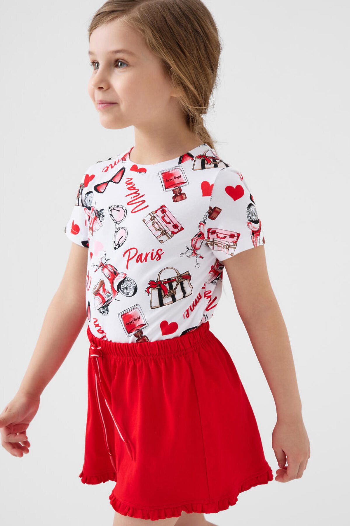 Детская футболка для девочки. Модель прямого кроя, выполнена из эластичного хлопкового трикотажа джерси. Яркие принты. Горловина круглая.