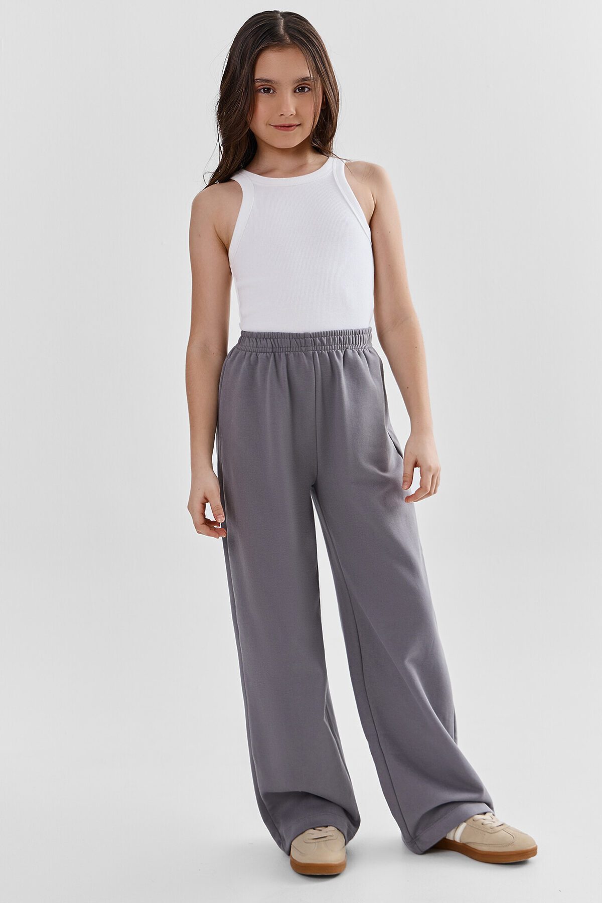 Удобные и модные широкие брюки для девочек, которые идеально подойдут для повседневной носки и создания стильных образов на физкультуру. Данная модель изготовлена из высококачественного натурального хлопка, который отличается превосходными дышащими и гигроскопичными свойствами. Мягкая и приятная на ощупь ткань обеспечит вашей юной моднице комфорт и свободу движений на протяжении всего дня. Широкий крой брюк создает привлекательный силуэт, визуально стройнит и придает образу девочки изюминку. Благодаря эластичному поясу с регулируемым шнурком, они идеально сидят на фигуре. Стильный дизайн с практичными боковыми карманами поможет создать модные луки для школы, игр и прогулок. Рекомендуем!