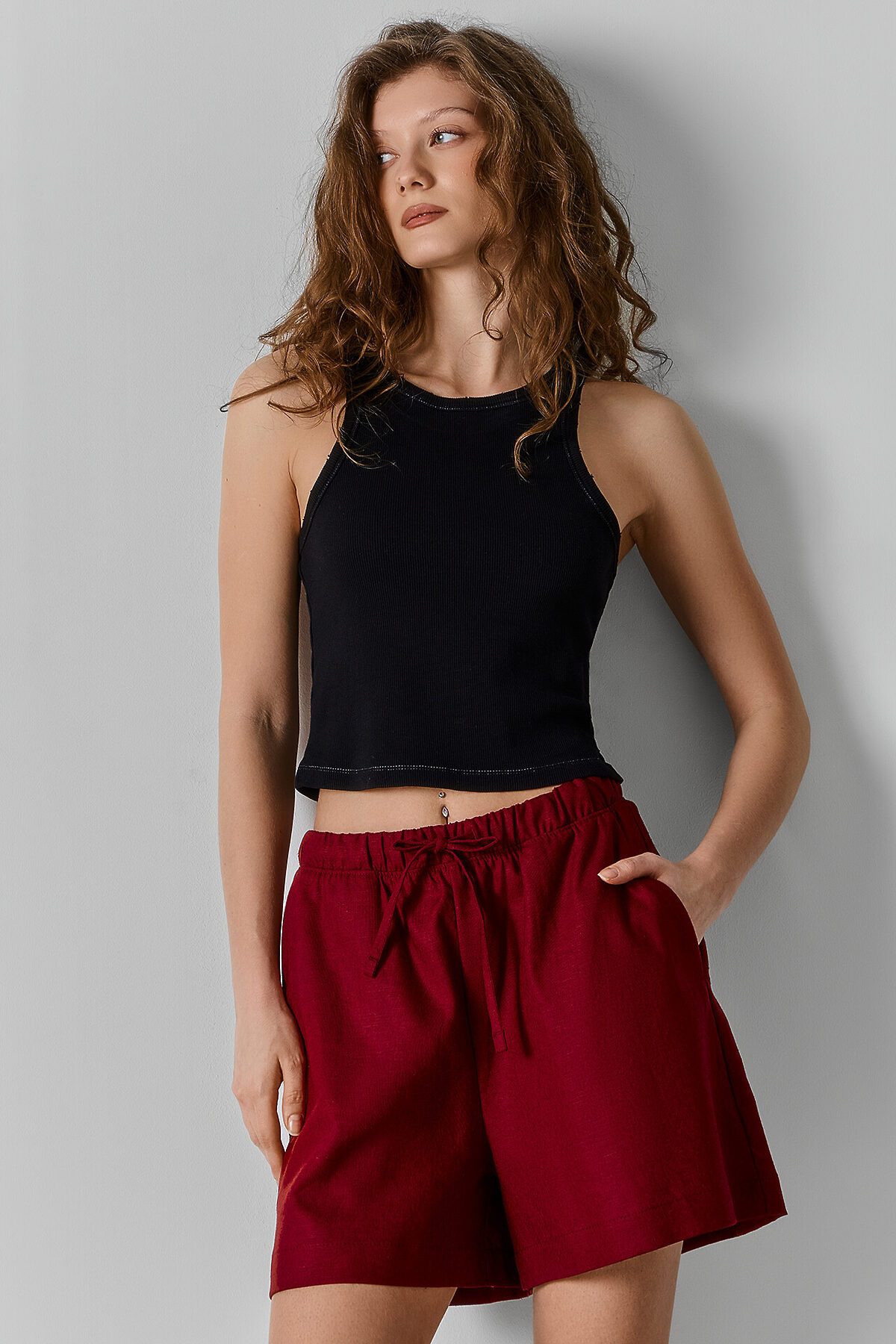 Женские шорты свободного силуэта с боковыми карманами и эластичным поясом на кулиске - это идеальное сочетание комфорта и стиля. Модель выполнена из смесового льна и вискозы, что придает изделию уникальные преимущества. Лён известен своей прочностью, долговечностью и прекрасной воздухопроницаемостью, что делает одежду из него идеальной для жаркой погоды. Он также обладает природными антибактериальными свойствами и гипоаллергенностью. В то время как вискоза добавляет мягкость и гладкость, улучшая тактильные ощущения и комфорт при носке.
