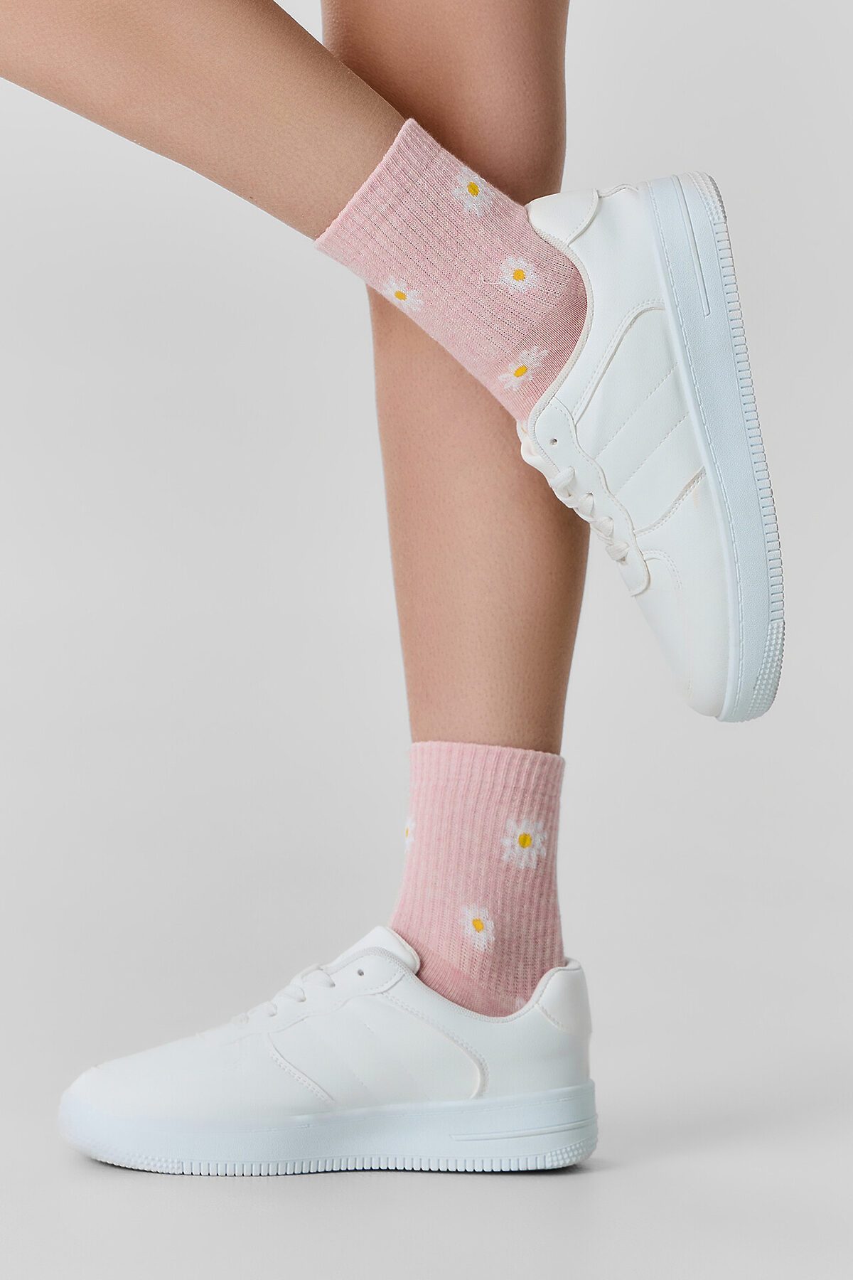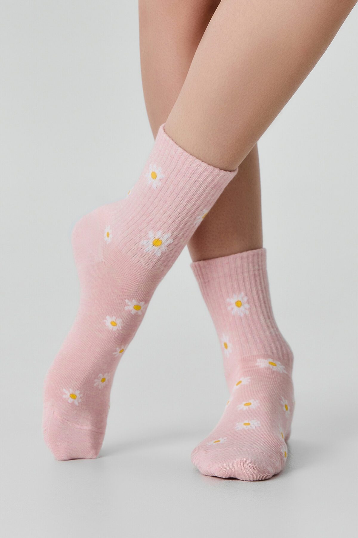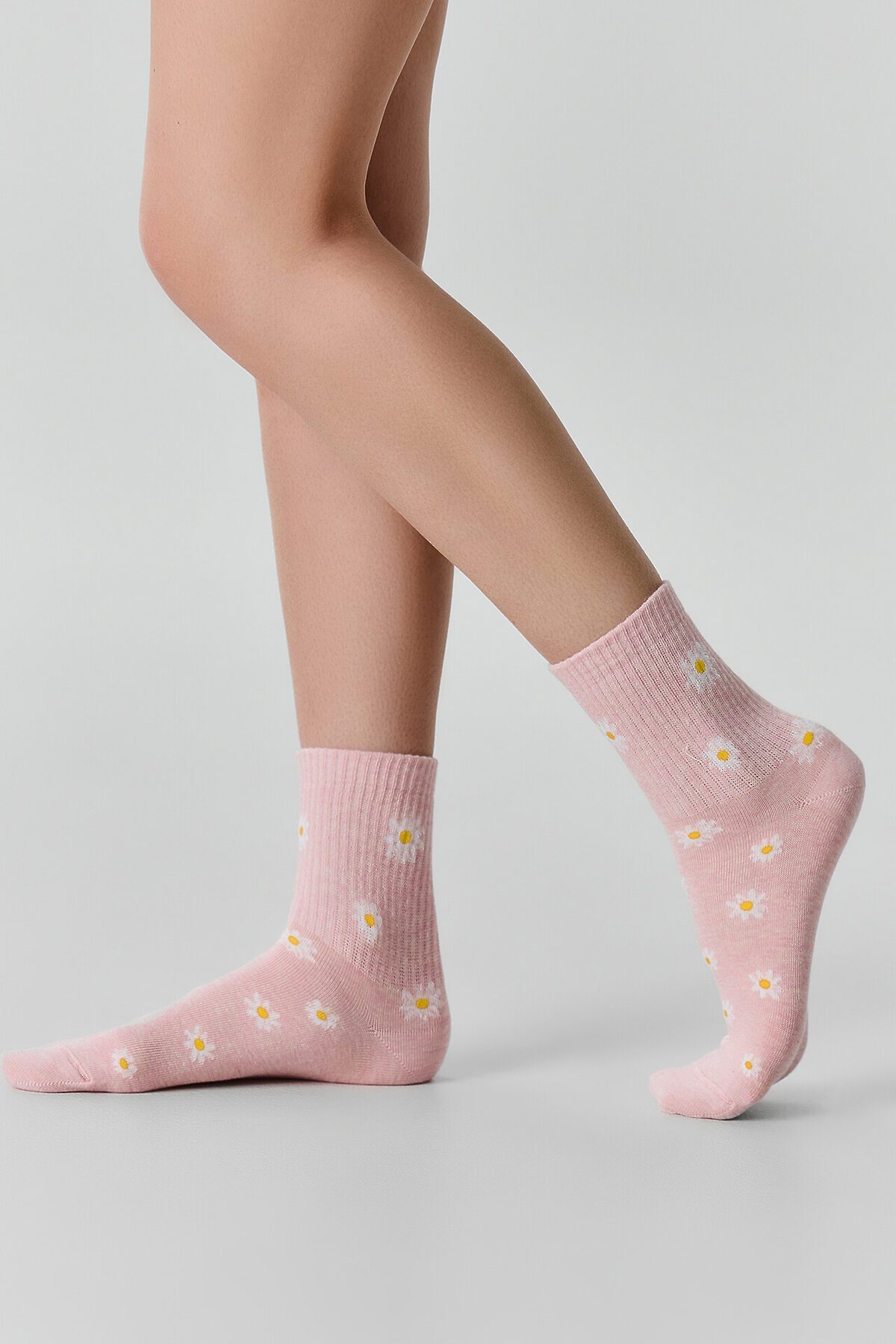 Высокие классические носки женские с плотным бортом и рисунком в виде ромашек. Выполнены из высококачественного гребенного хлопка - тонкого, прочного и эластичного. Натуральные волокна отлично пропускают воздух и впитывают влагу, обеспечивают ощущение комфорта в течение дня. Благодаря небольшому количеству эластана в составе, носочки хорошо облегают и сохраняют форму, практичны и долговечны. Пятка и мысок дополнительно усилены для защиты от протирания при активном движении. Резинка мягко, но надежно удерживает носки, не передавливая ногу и не оставляя на коже следов. Отличный вариант для круглогодичного использования. Мягкие и комфортные. Порадуйте себя и своих близких прекрасными носочками от Mark Formelle!