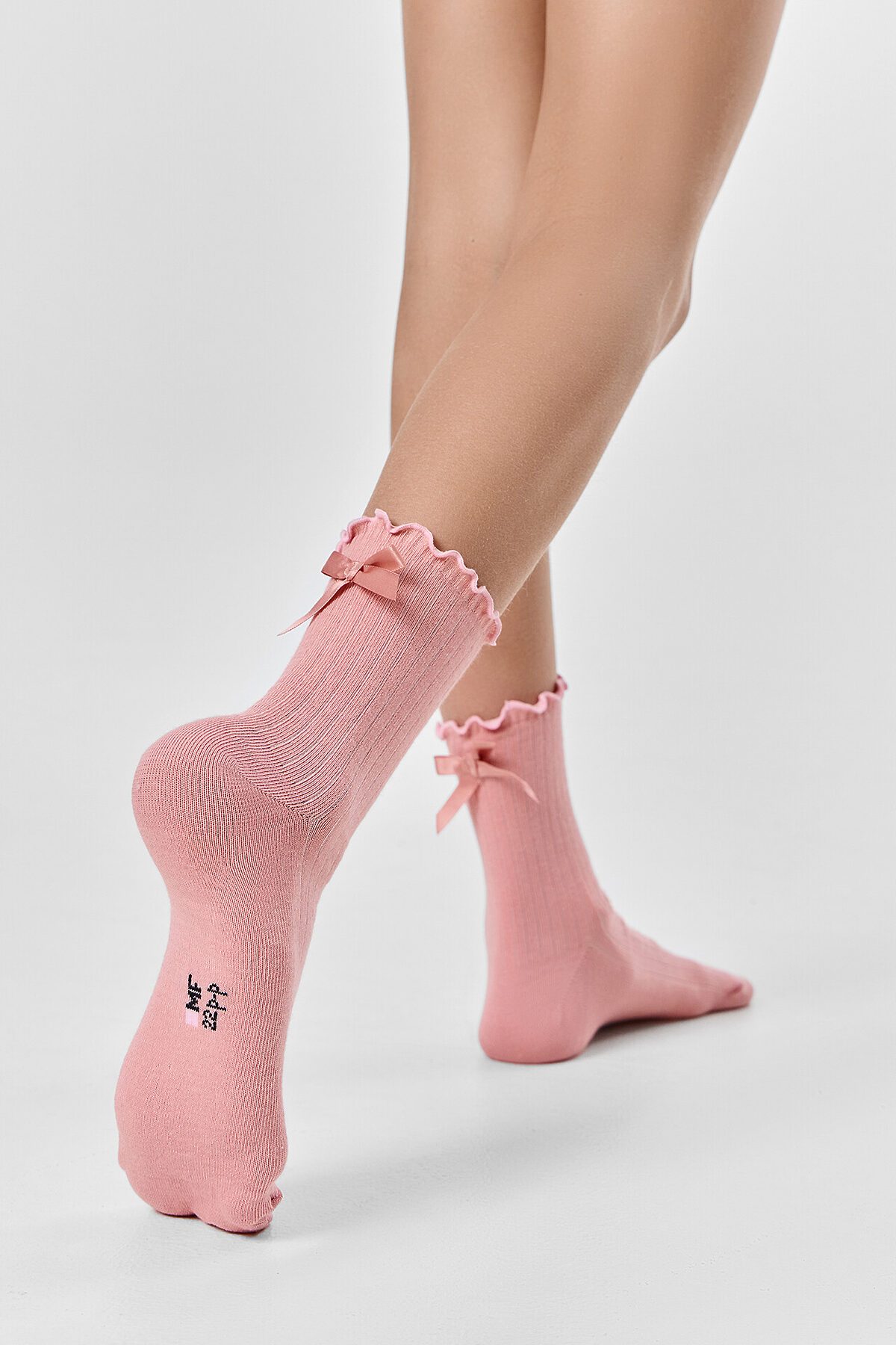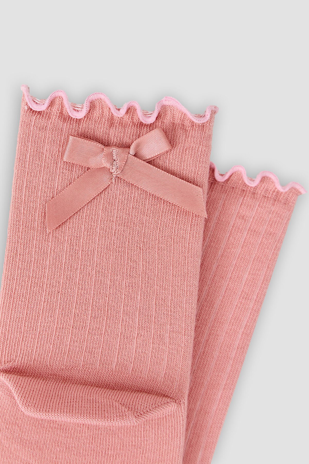 рис.3545 Детский носок с обработкой борта оверлоком и пришивным бантиком.