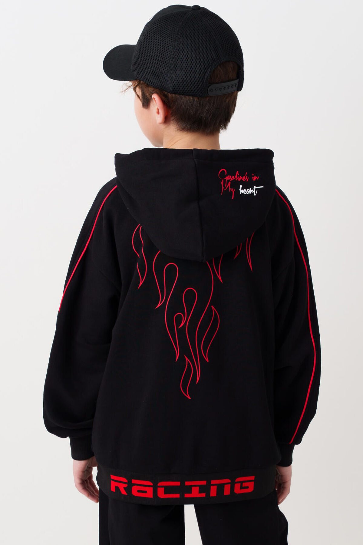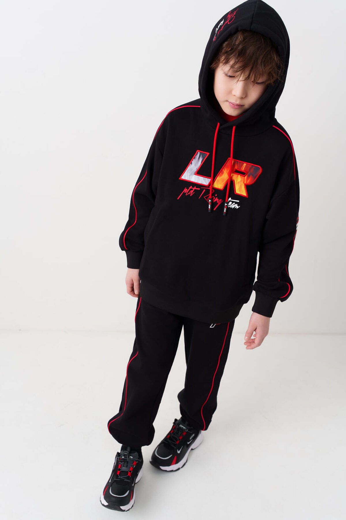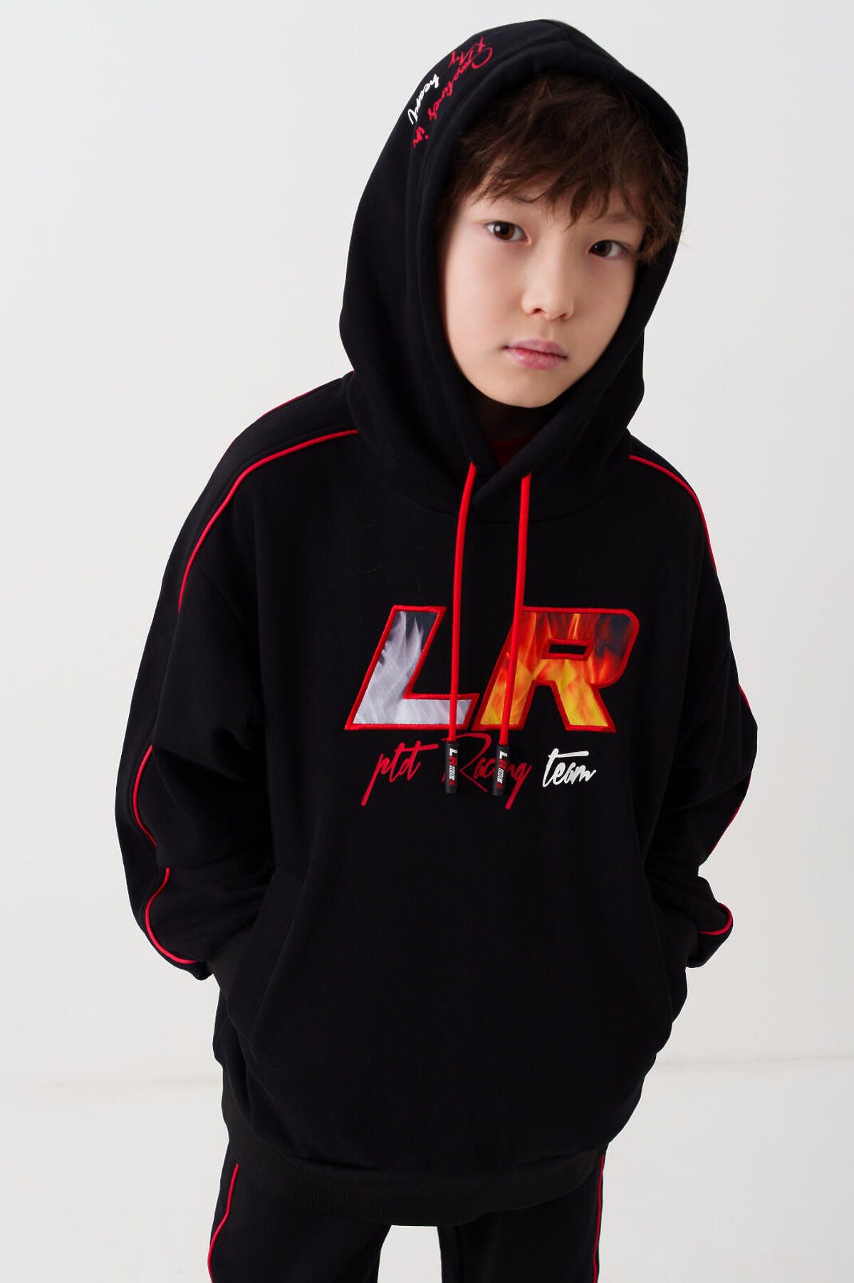 Худи оверсайз для мальчика подростка. Выполнено из хлопкового футера без начеса. На груди — крупный логотип и надписи, вдохновлённые мотоспортом. Капюшон регулируется шнурком, а на передней части расположен удобный карман-кенгуру. Манжеты и низ изделия выполнены из эластичного риба, что обеспечивает комфортную посадку. На правом рукаве — яркий силиконовый ярлык.