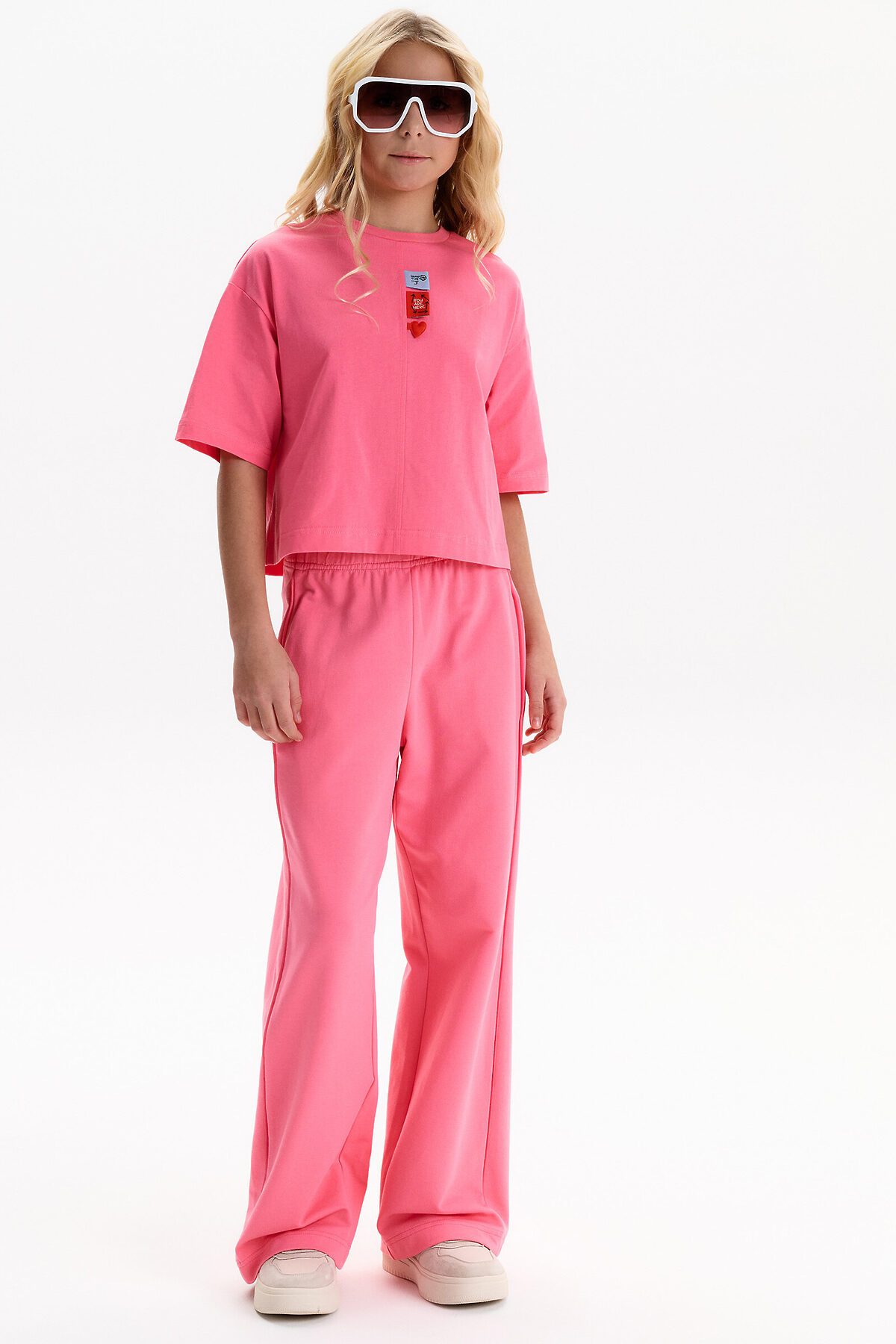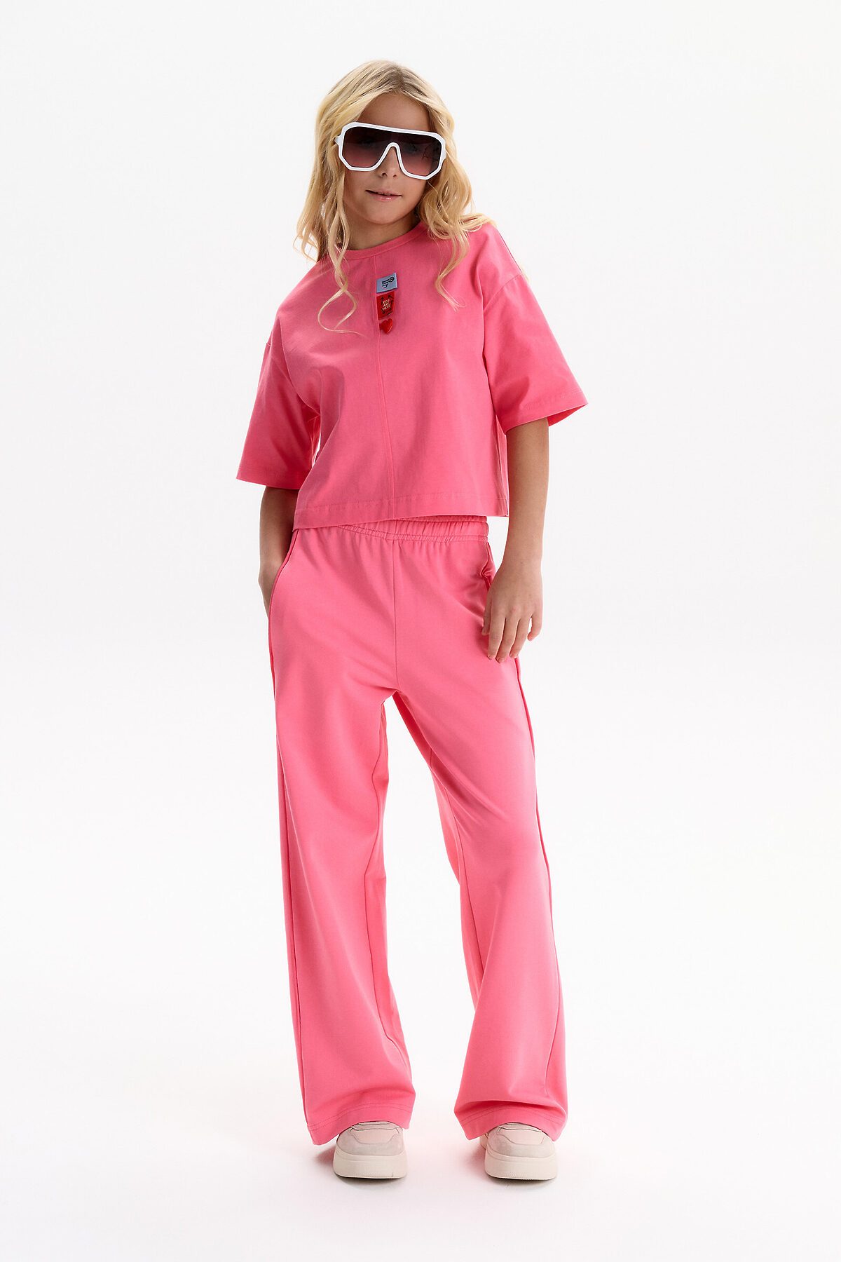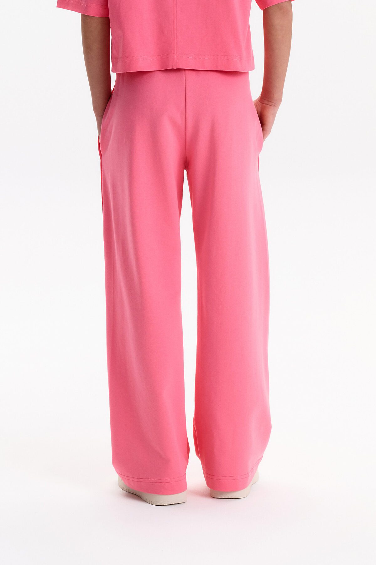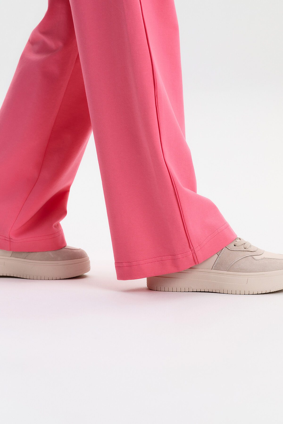 Новые широкие прямые брюки плаццо из тонкого хлопкового футера. Плотность 245 гр/кв.м. Боковые швы с кантом переведены на перед. Карманы в боковых швах. В поясе внутренняя утяжка на шнурок.