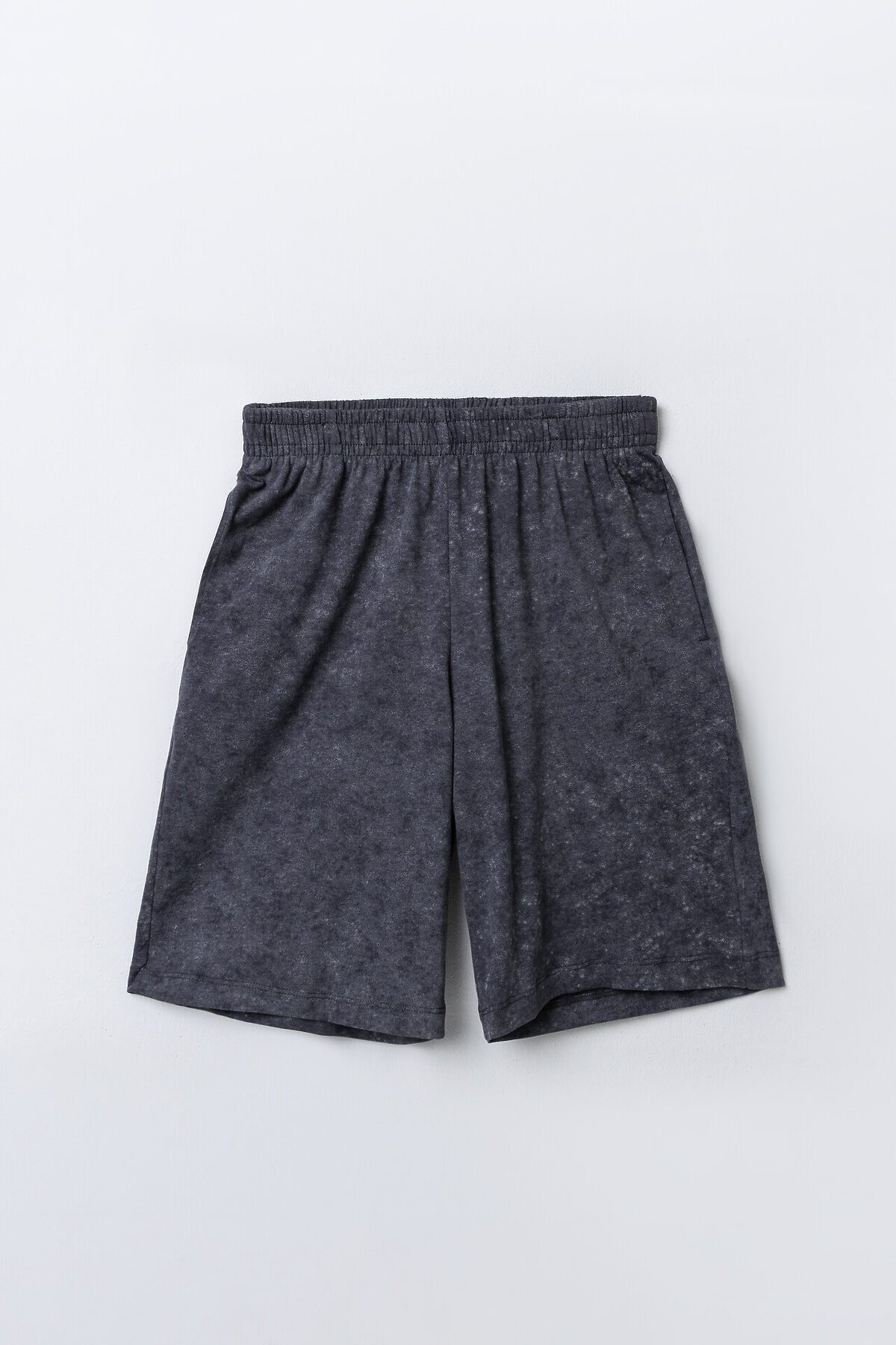Комплект для мальчиков состоит из джемпера и шортов. Джемпер прямого, свободного силуэта. Плечо слегка спущено. Горловина круглой формы с притачной обтачкой из трикотажной рибаны 1*1 R-24, (R11-062.01.220) 96% хлопок; 4% эластан , 220 гр/м2, 160 см. Шов притачивания обтачки по спинке. Рукав втачной, одношовный, короткий. Шорты прямого, свободного силуэта с карманами в боковом шве. Пояс цельнокроеный с эластичной тесьмой внутри (внутрення резина 40RV), ширина 40 мм. Низ джемпера и шортов обработан на 2-х игольной плоскошовной машине швом в подгибку.