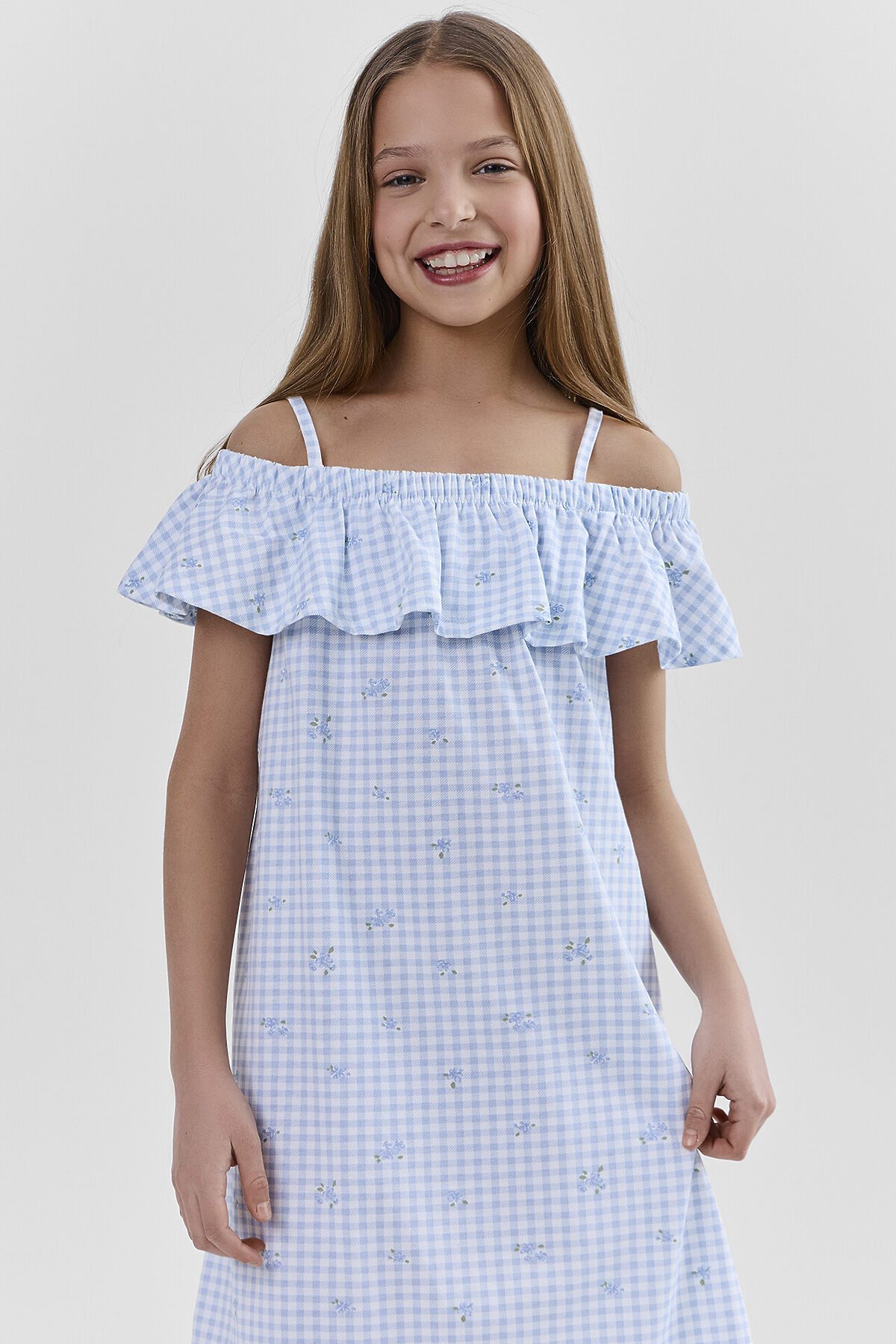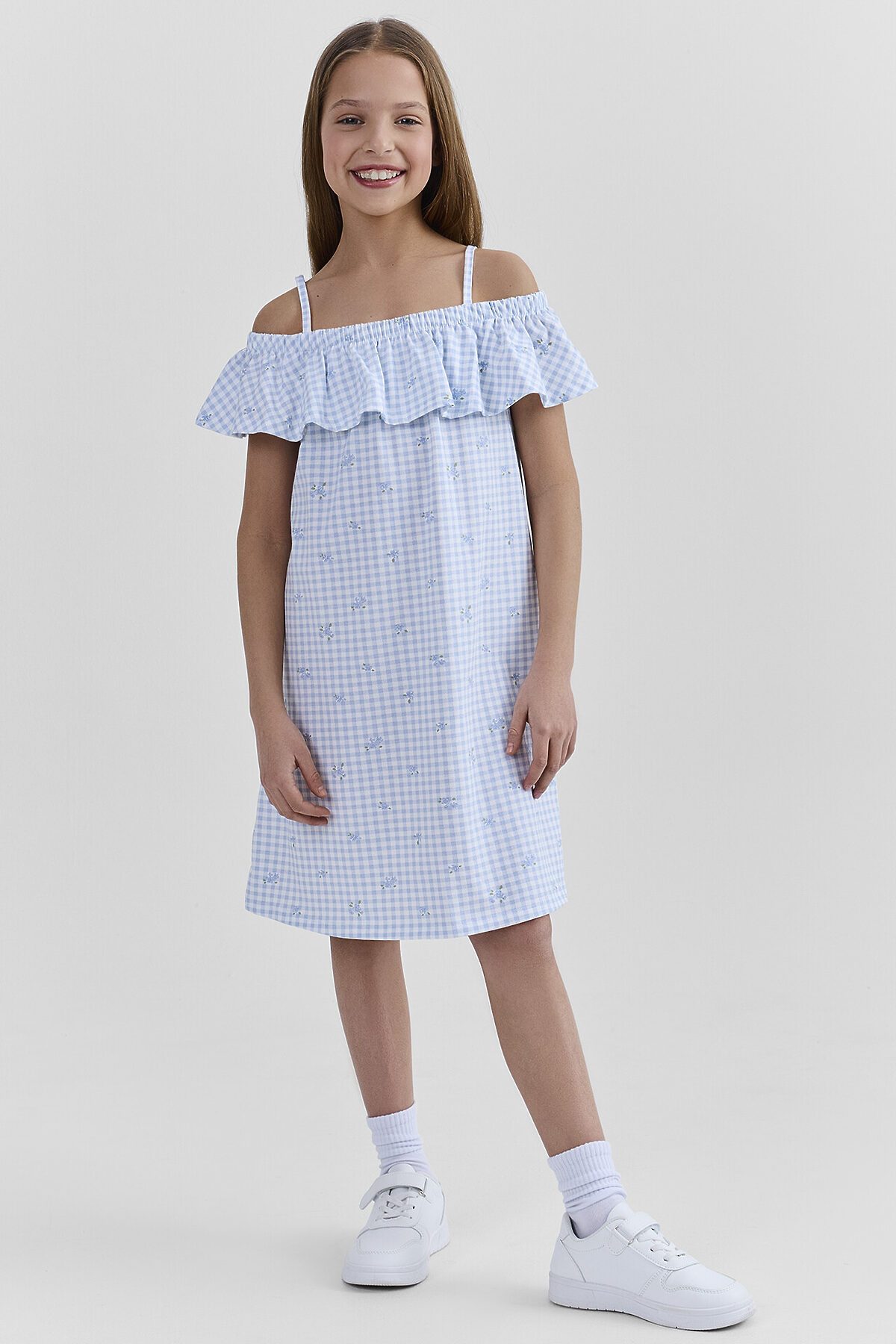 Сарафан для девочек MARK FORMELLE, цветы на голубой клетке