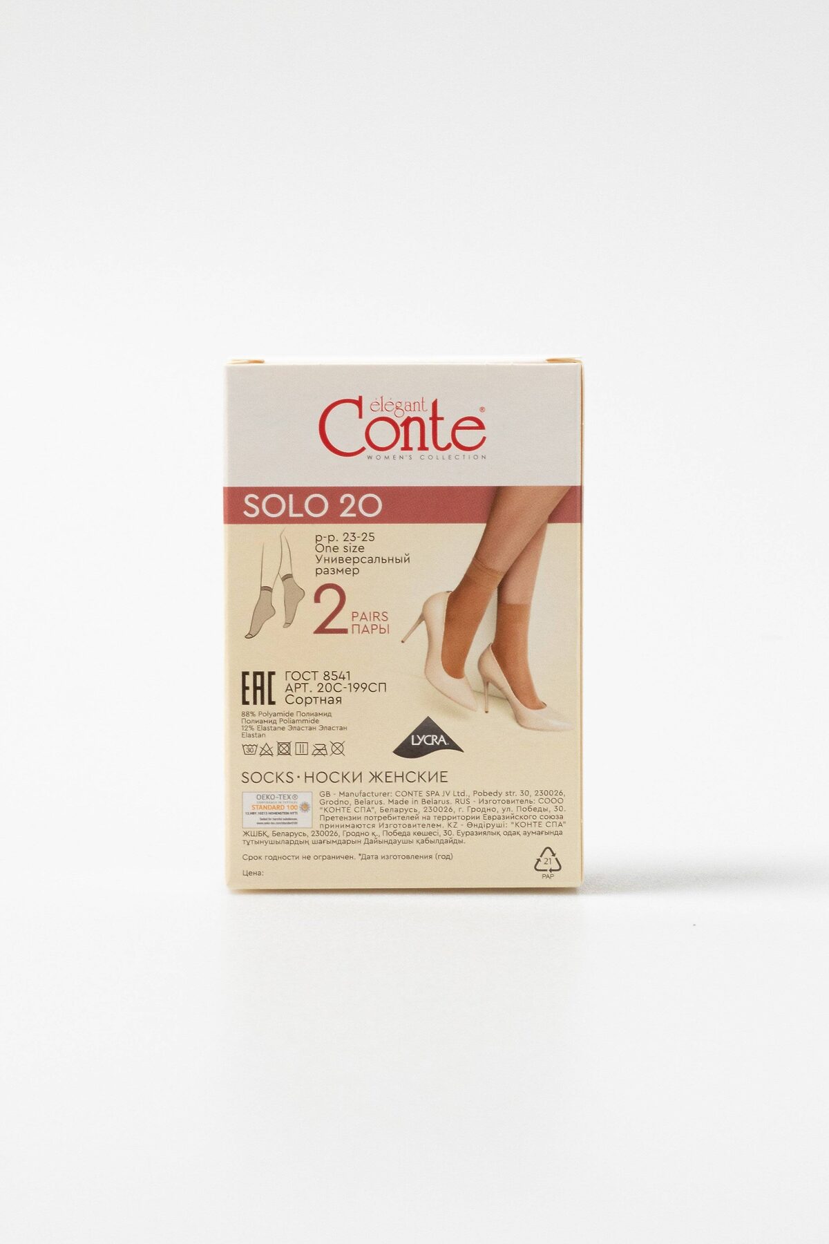 CONTE SOLO 20 (2 пары) Носки женские CONTE ELEGANT, bronze