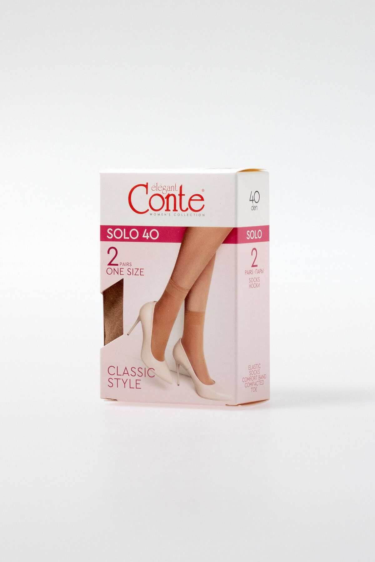 Полуматовые эластичные носки SOLO практичные, прочные и устойчивые к повреждениям. Классическая модель. Идеально подходят на каждый день. • 40 den • комфортная резинка • уплотненный мысок • универсальный размер • 2 пары в упаковке • классические базовые носки.