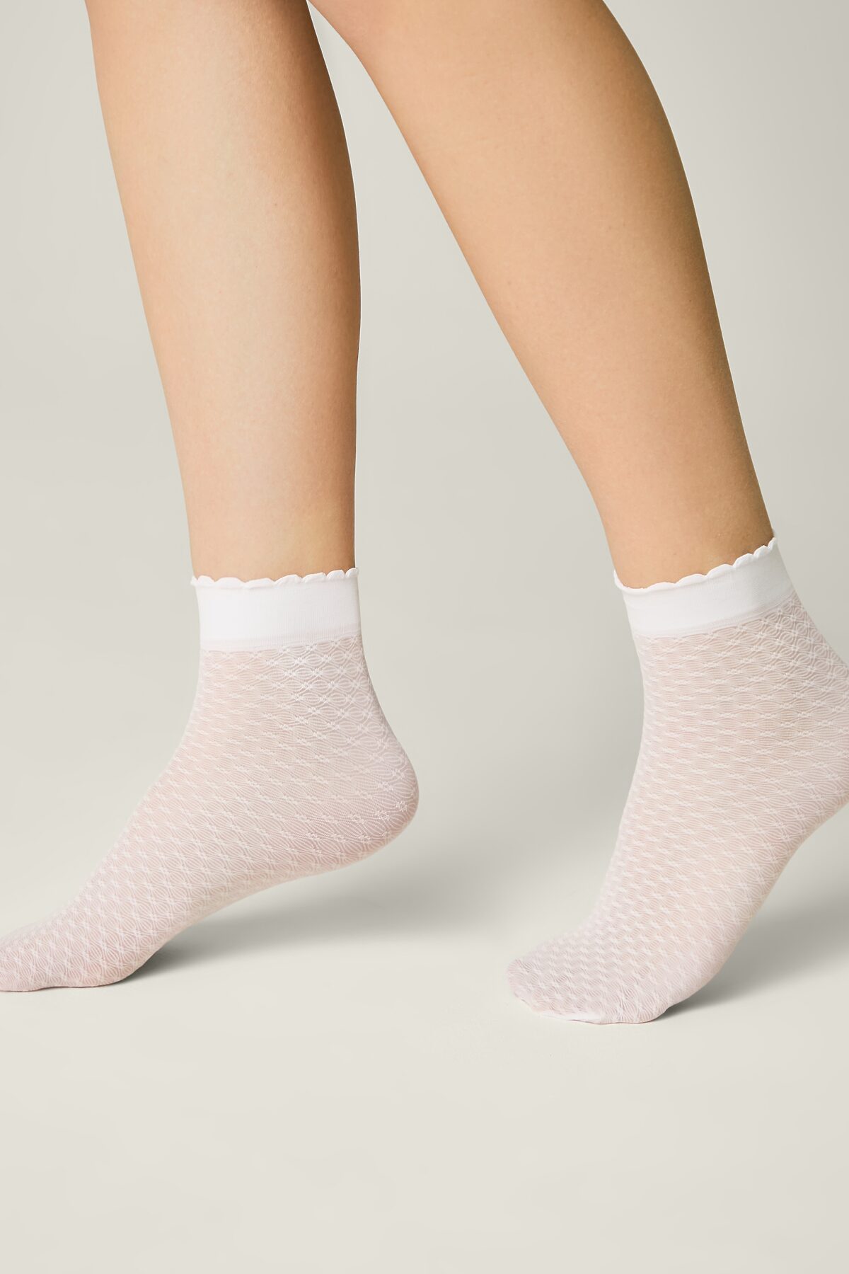 CONTE Тонкие носки с ажурным геометрическим рисунком JULIA CONTE ELEGANT, bianco