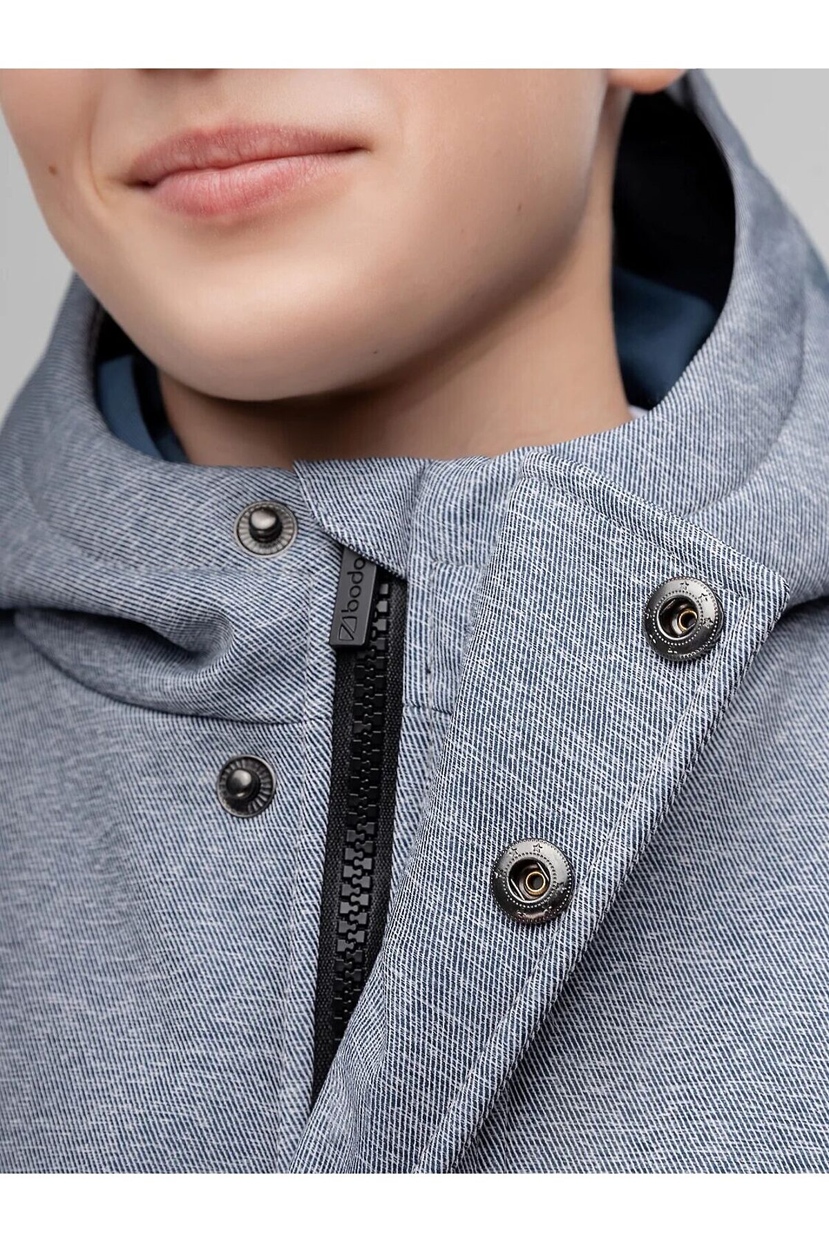 Утеплённая куртка на молнии на подкладке. Куртка со спущенным плечом, рукава с манжетой с внутренней резинкой. Куртка с капюшоном со стойкой. На полочке расположены накладные карманы. Материал - ткань курточная с мембраной, 100% полиэфир, плотность 205 г/м2, мембрана 5000 мм / 5000 г/м² Утеплитель 150 г/кв.м. Подкладочный материал - кулирная гладь 100% хлопок. Температурный режим от -5 до +10, в зависимости от индивидуального теплообмена ребенка и промежуточного слоя одежды.
