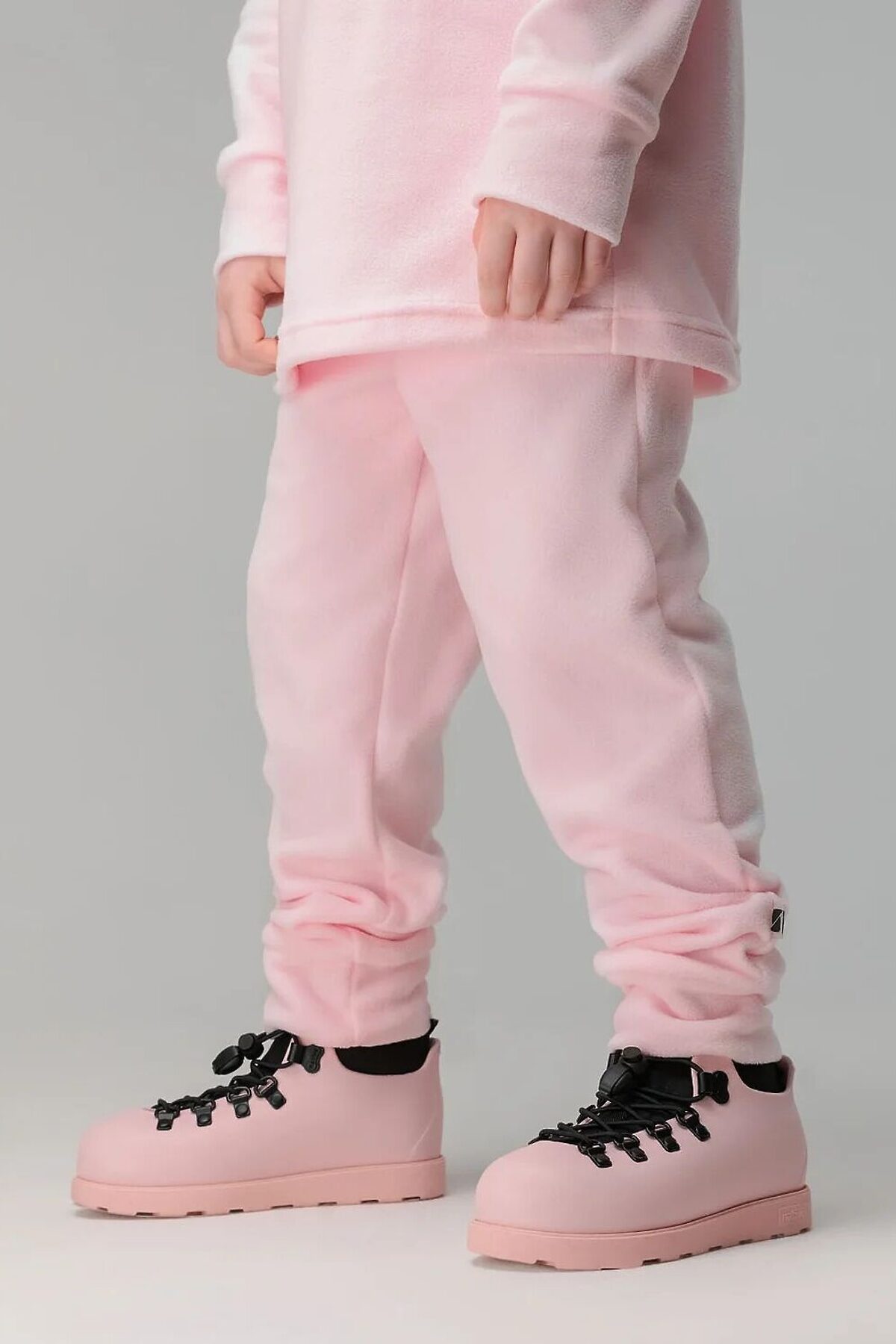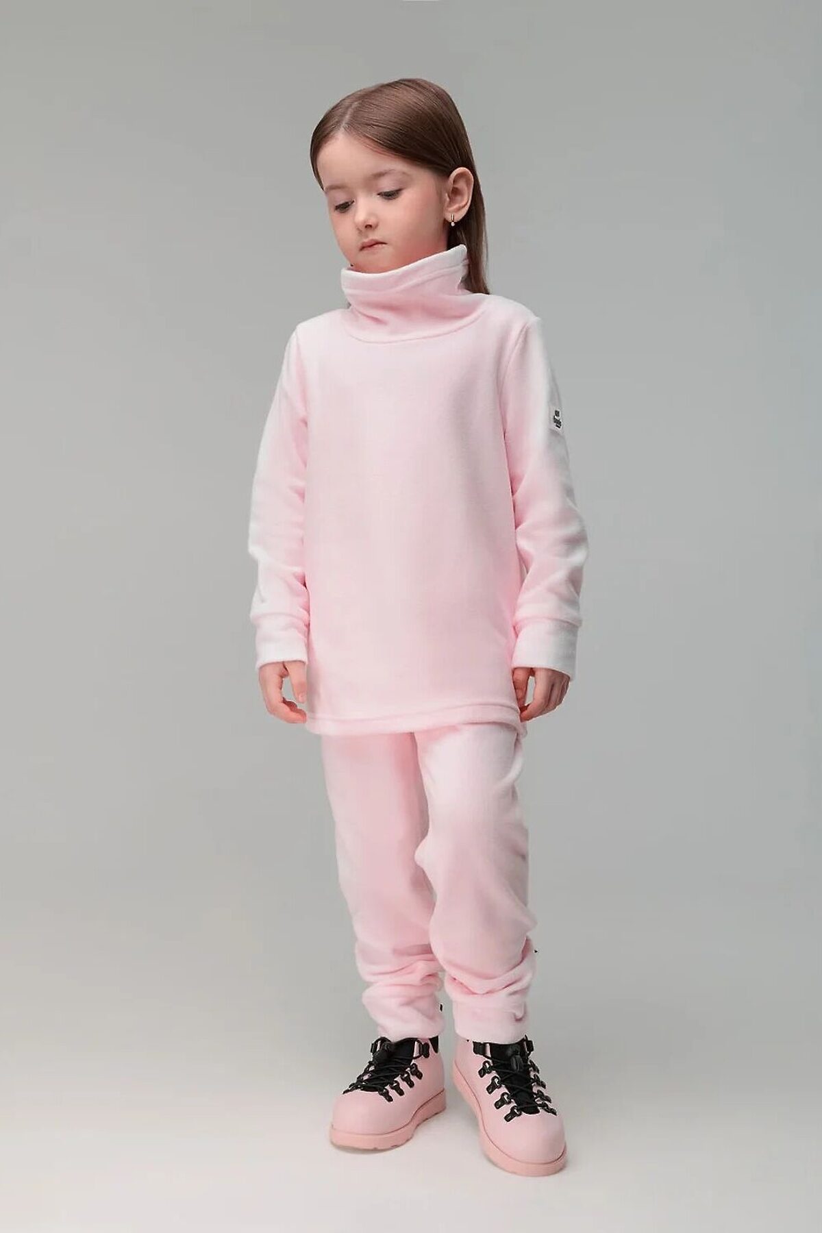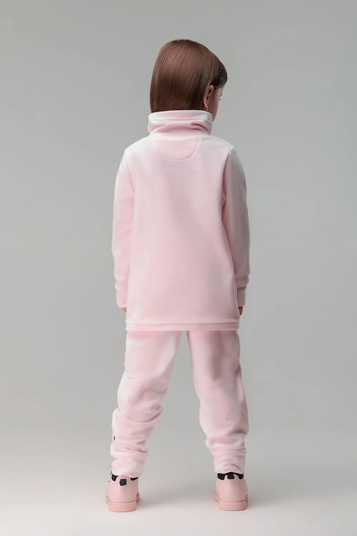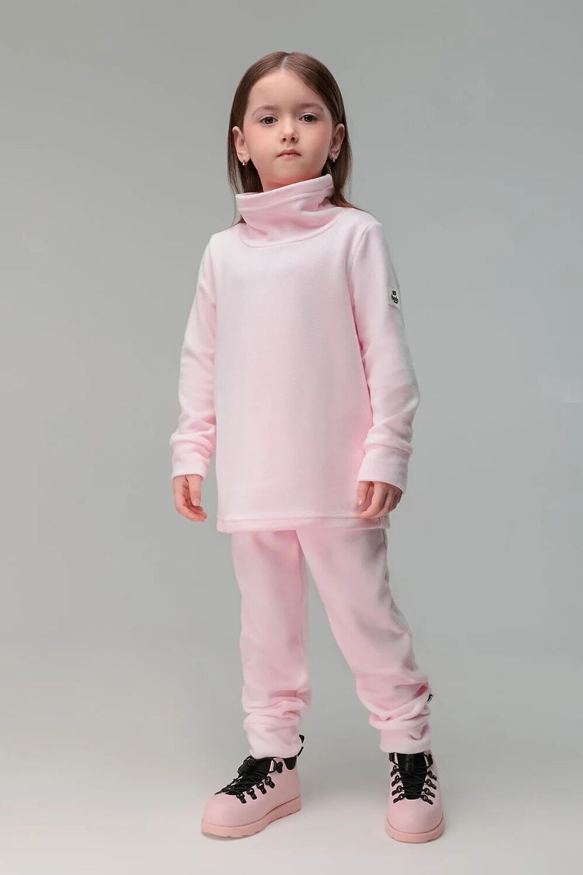 Флисовый костюм: толстовка и брюки. Толстовка с воротником-стойка, рукава на манжетах, полуприлегающий покрой. Брюки- джоггеры, детали: пояс - эластичная резинка, низ изделия- манжеты. Плотность флиса 190г