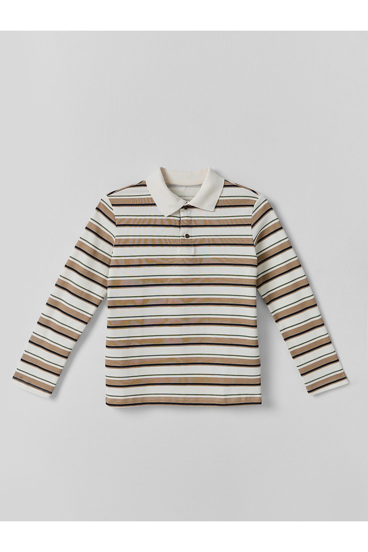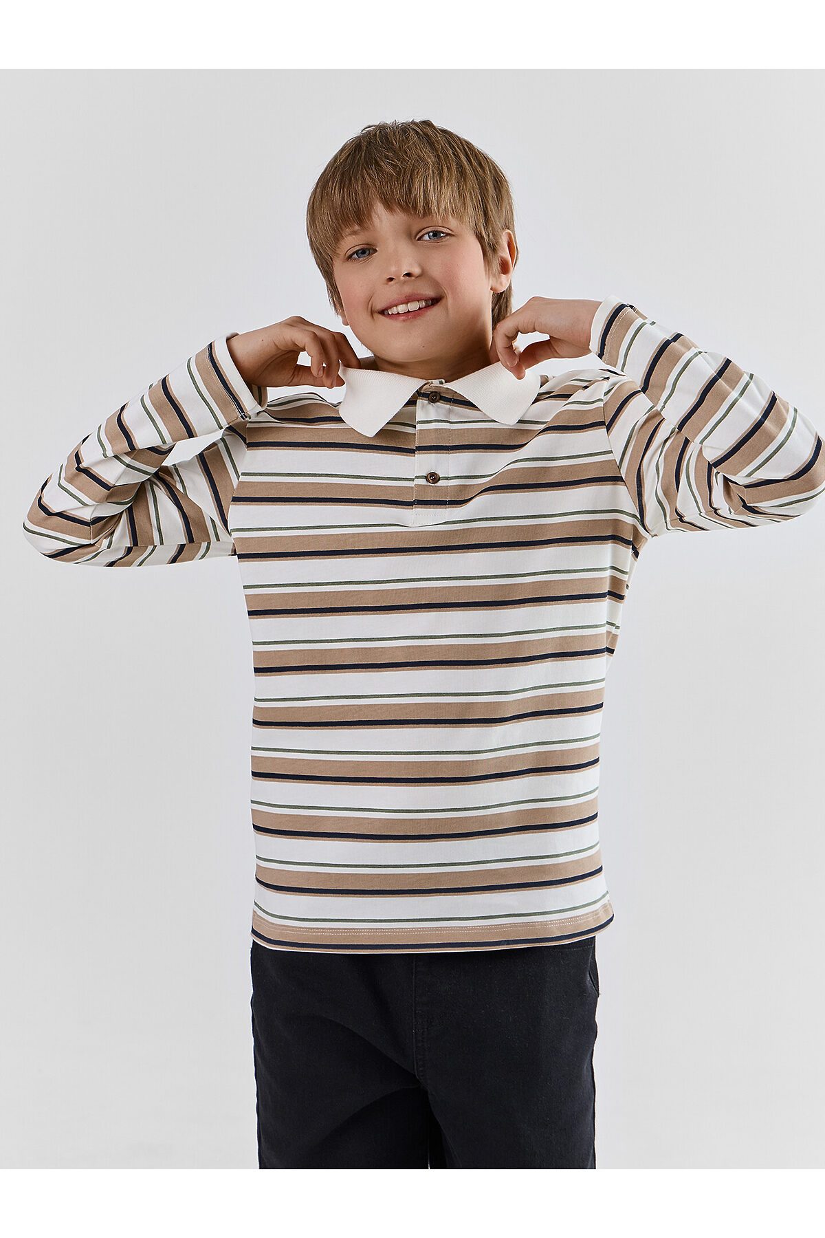 Поло для мальчиков MARK FORMELLE, бежевая полоска на св.молочном