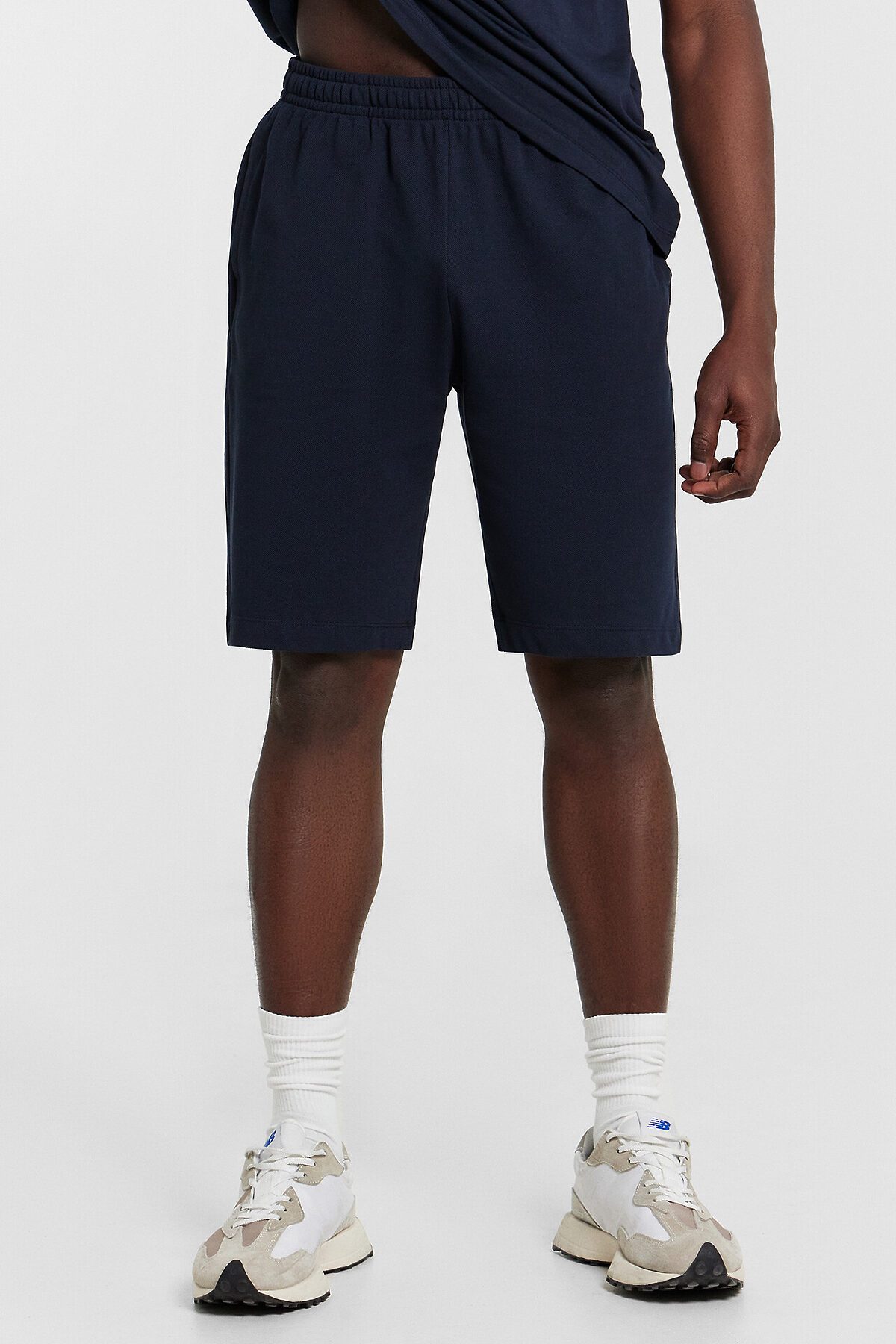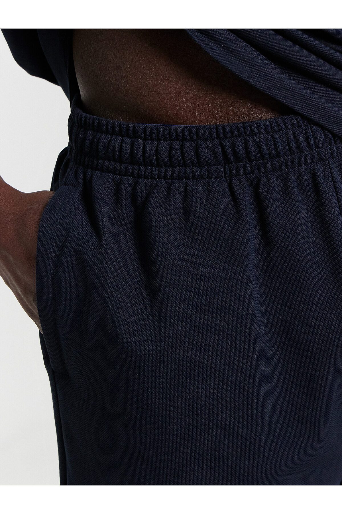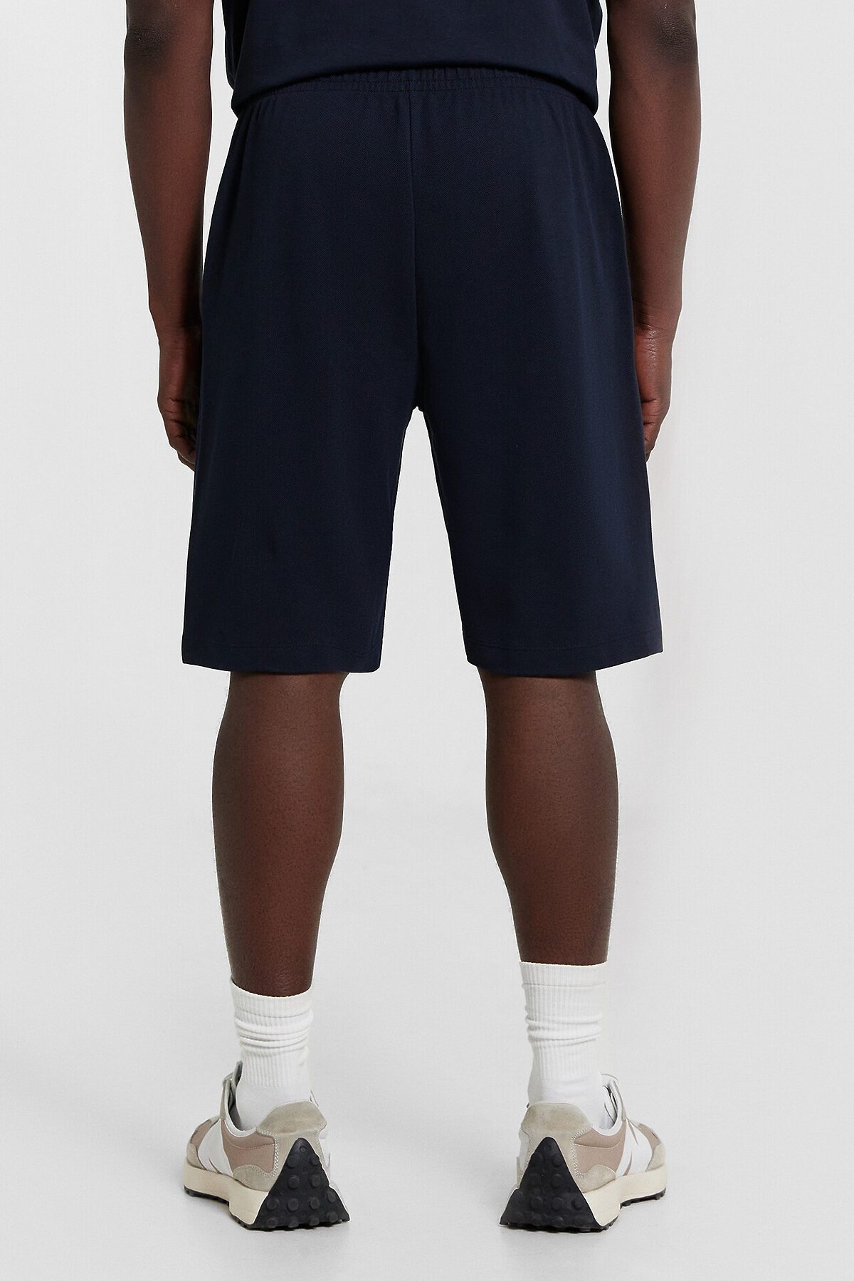 Шорты мужские изготовлены из трикотажного полотна пике.. Шорты прямые, свободные. Пояс цельнокроеный с эластичной тесьмой внутри. На передних деталях обработаны карманы в боковых швах, подкладка кармана из основного полотна. Нижние срезы обработаны швом вподгибку на 2х игольной плоскошовной машине.