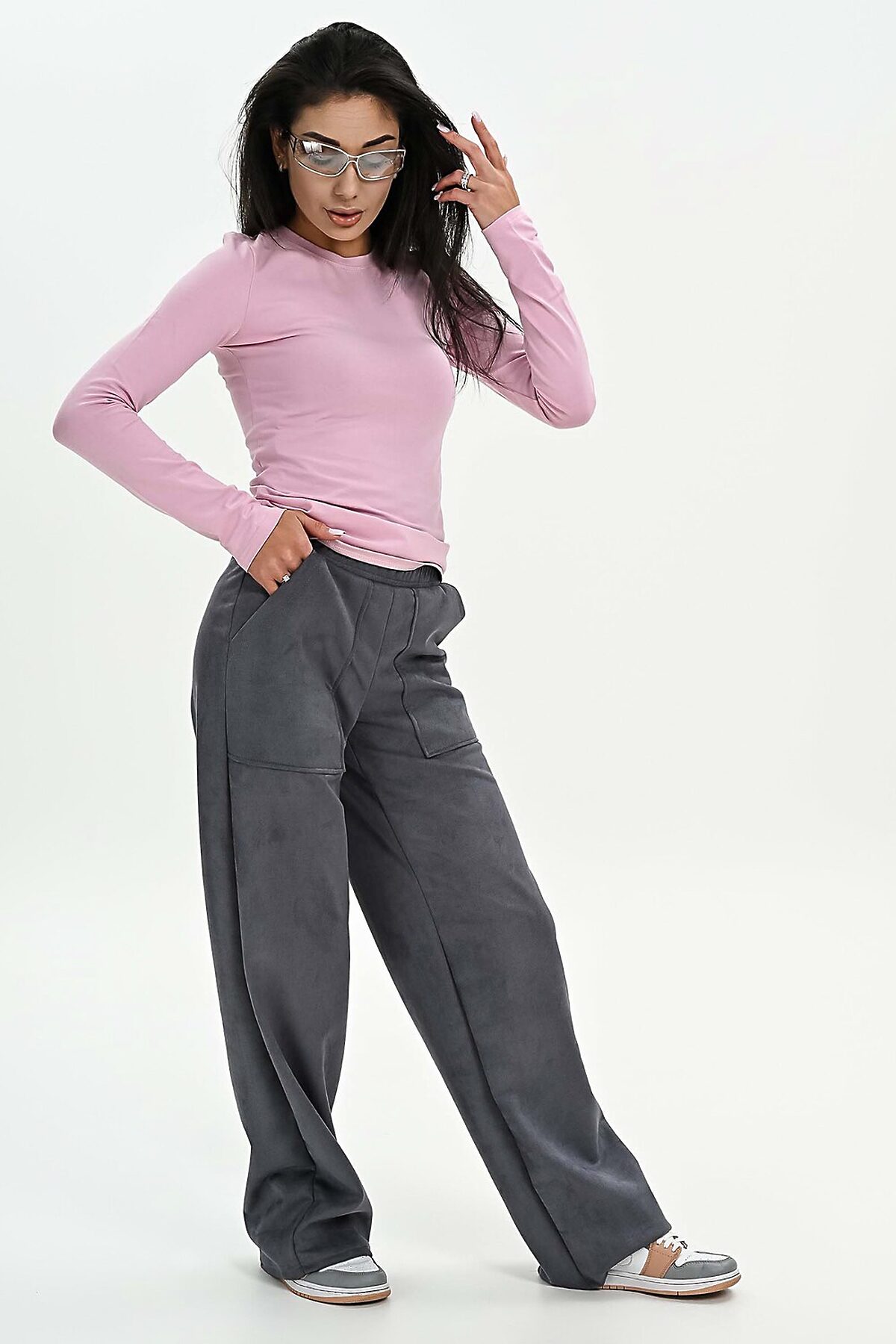 Брюки из мягкой эко замши НАТАЛИ, серый