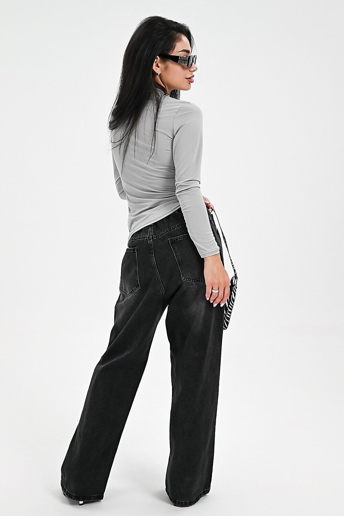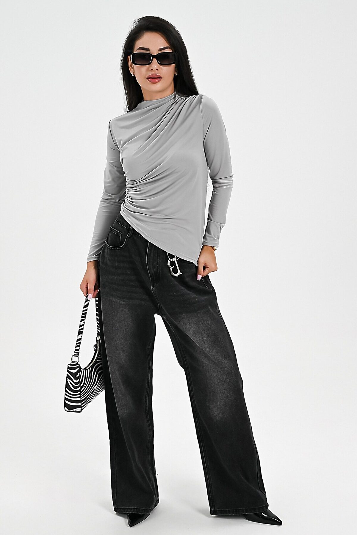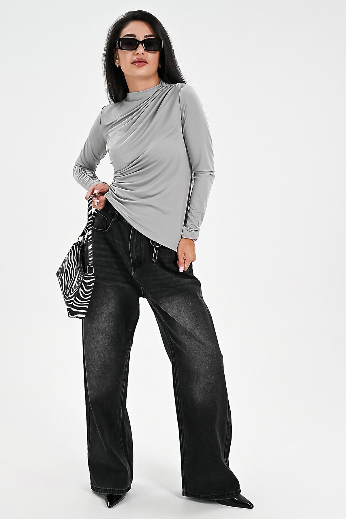 Лонгслив с драпировкой полуприталенный , стрейтч (ткань тянется).