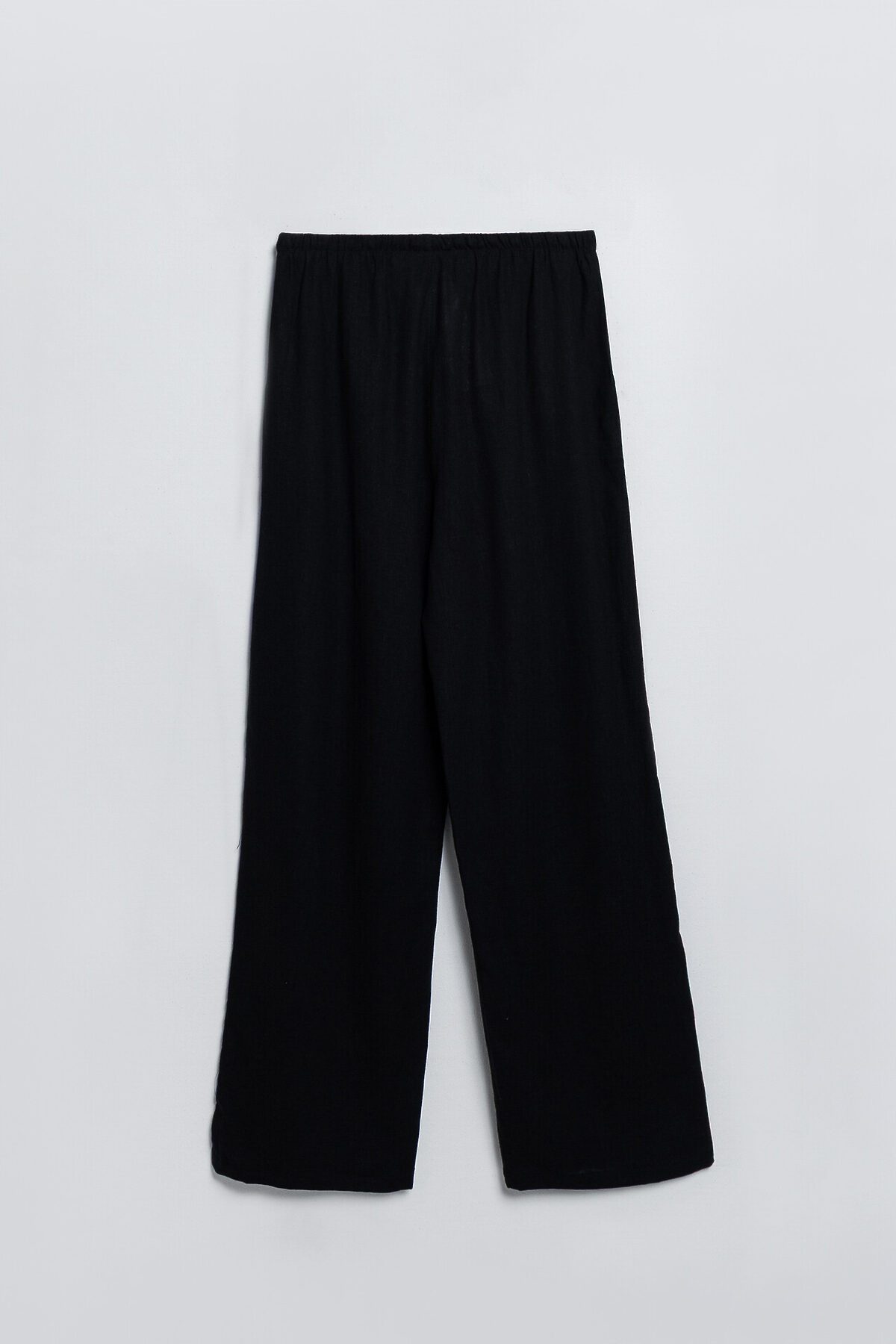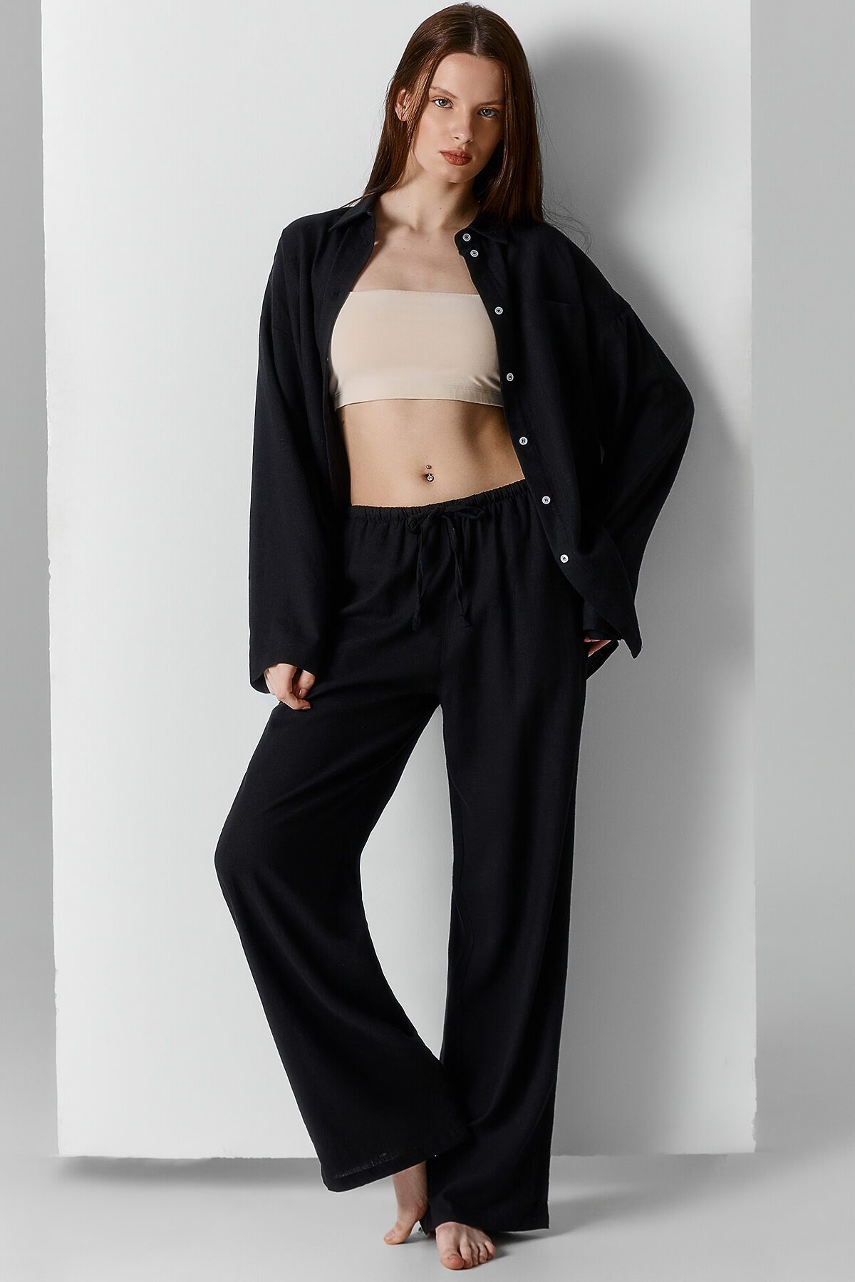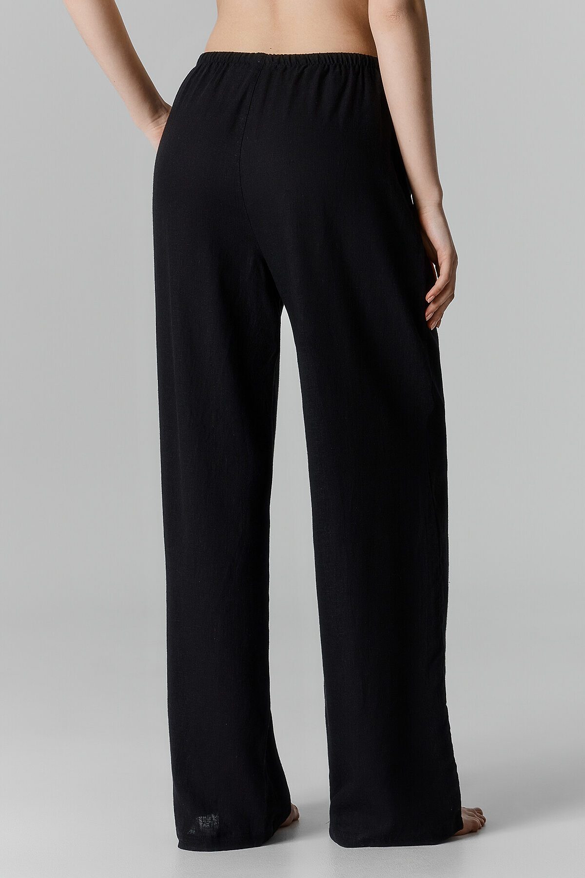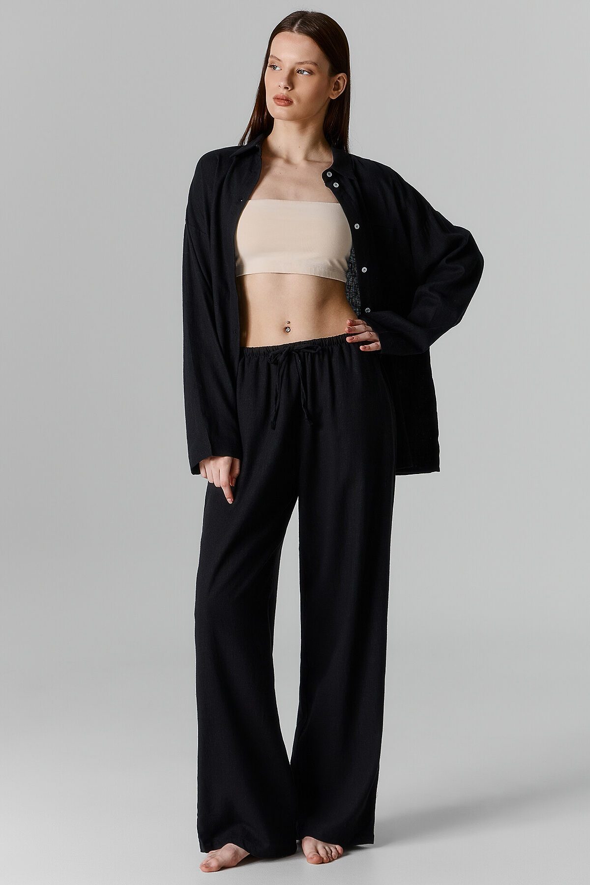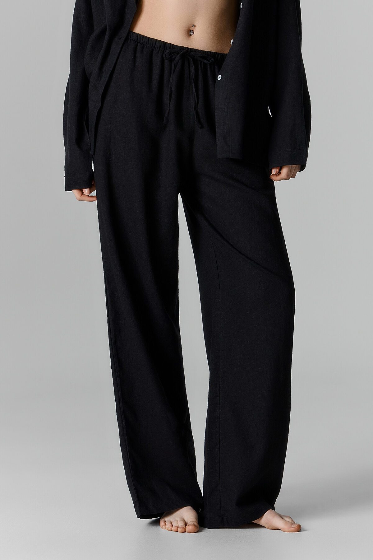 Женские домашние брюки свободного силуэта — это сочетание удобства и естественного стиля для уютных домашних образов. Они выполнены из натурального льна и вискозы. такое сочетание материалов подарит легкость, мягкость и воздухопроницаемость, идеально подходя для домашнего гардероба. Свободный крой позволяет чувствовать себя непринужденно, обеспечивая максимальную свободу движений. Эластичный пояс с кулиской добавляет комфортную посадку и возможность регулировки, а боковые карманы делают модель практичной и функциональной. Низ изделия обработан швом вподгибку, что обеспечивает аккуратность и долговечность. Для создания стильного домашнего комплекта вы можете дополнить брюки рубашкой из этой же коллекции. Такой комплект обеспечит уют и гармоничный образ для комфортного отдыха!