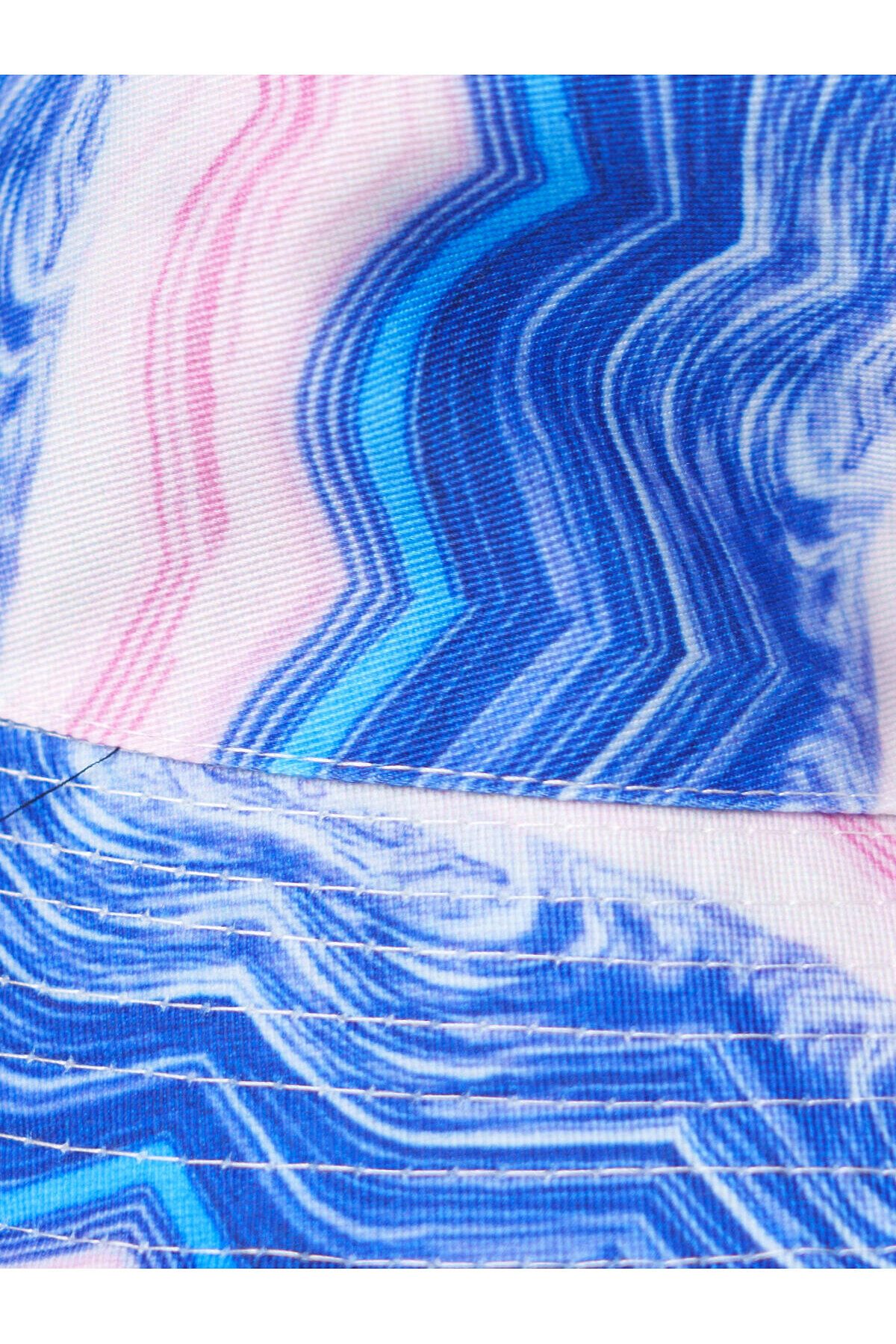 Детская панама для девочки. Изделие имеет классическую форму с широкими отстроченными полями и ярким принтом. По бокам сзади расположены два вентиляционных отверстия в виде вышитых люверсов.