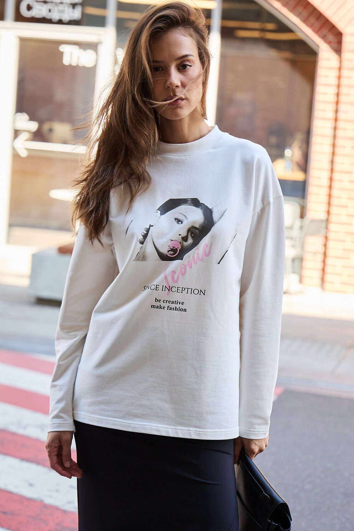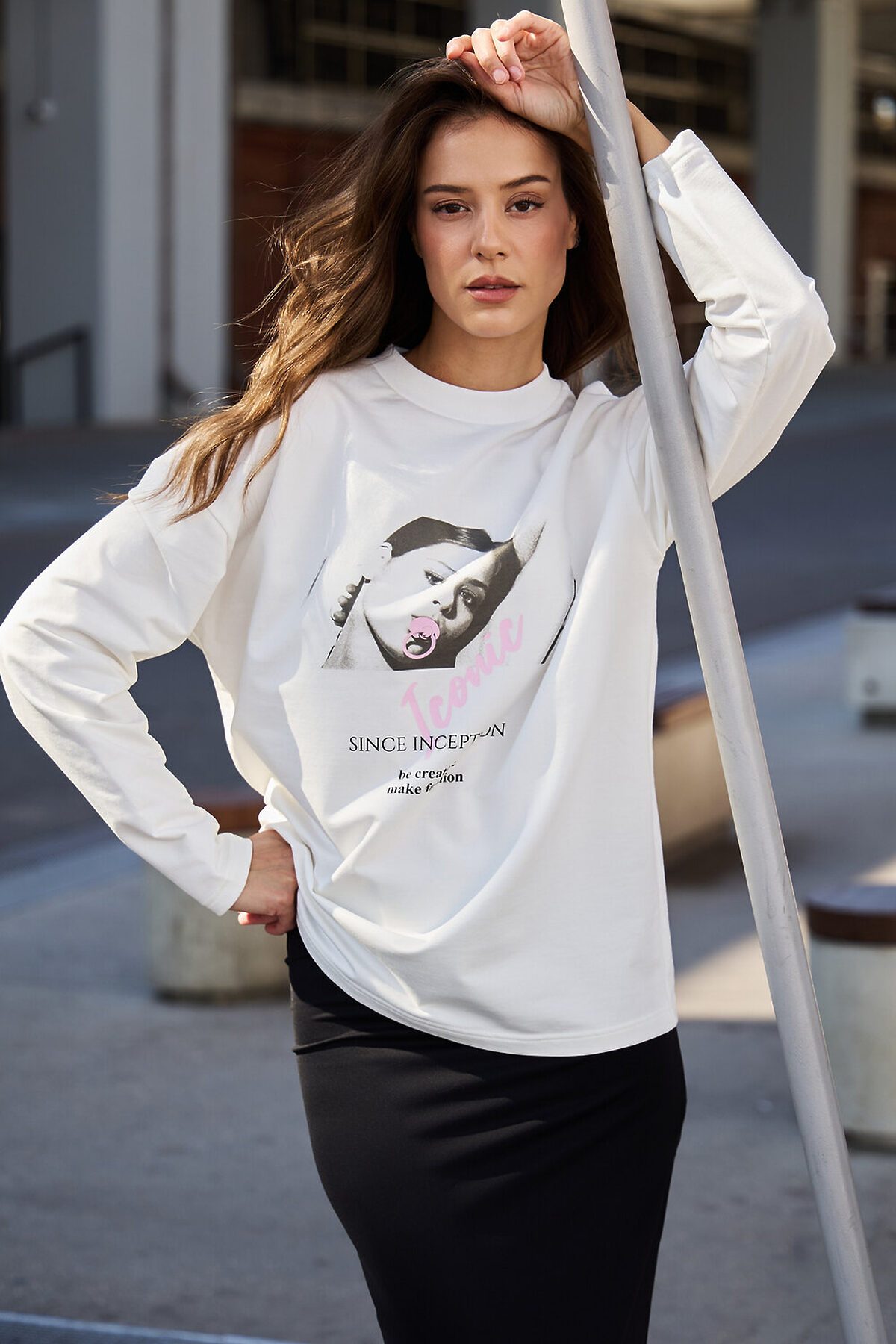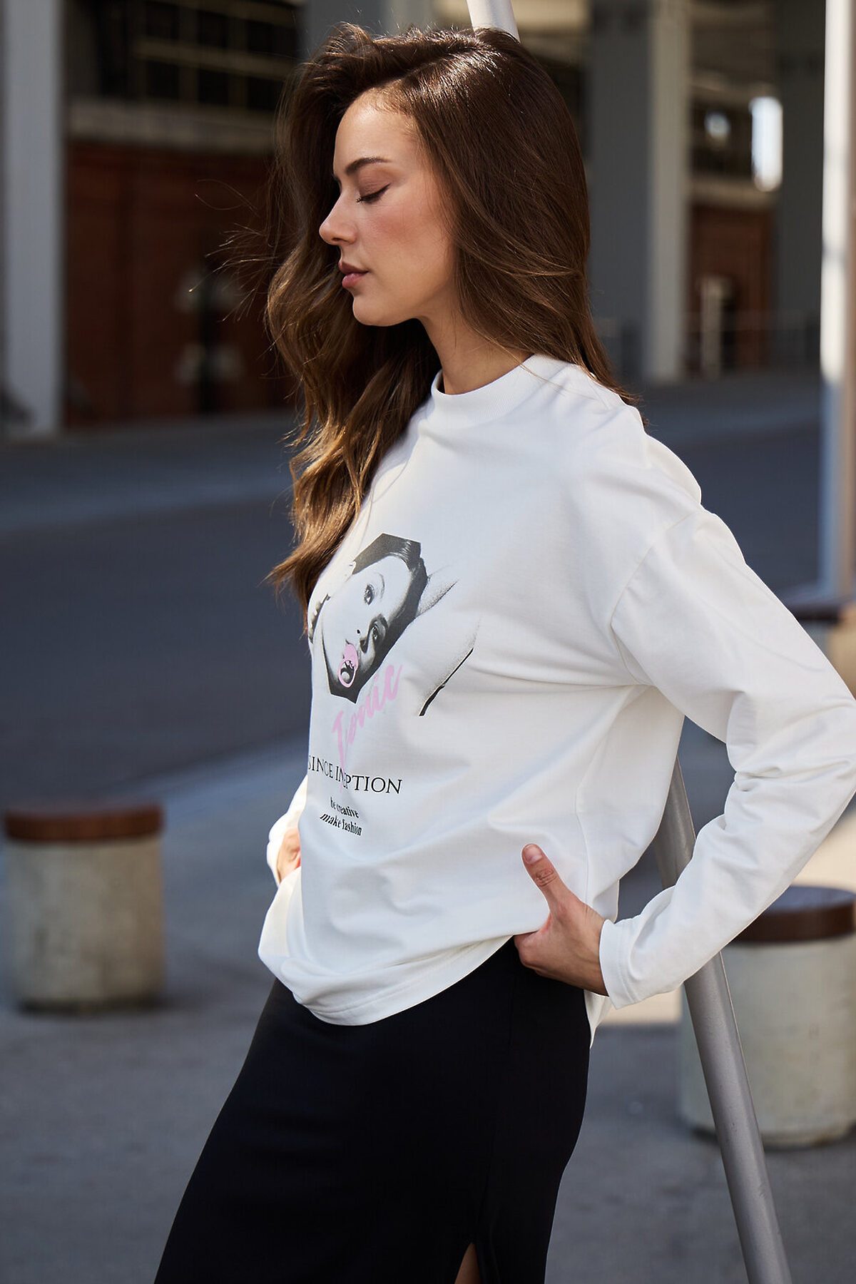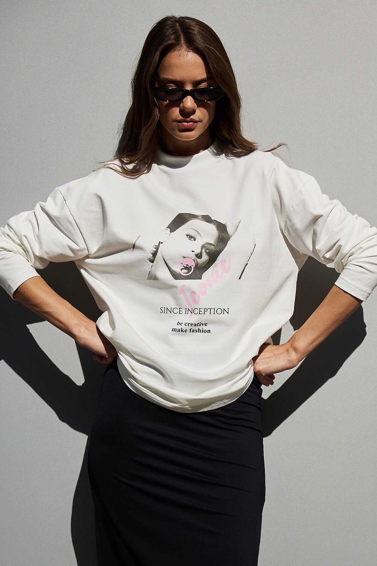 Лонгслив оверсайз с принтом НАТАЛИ, молочный