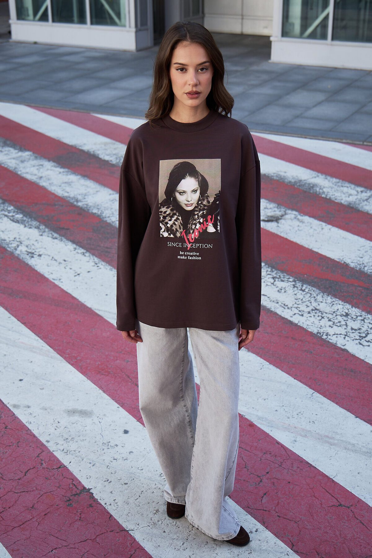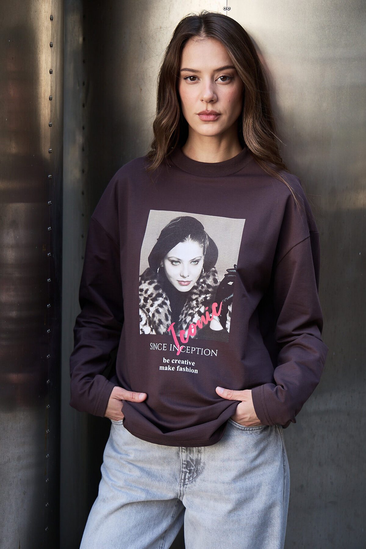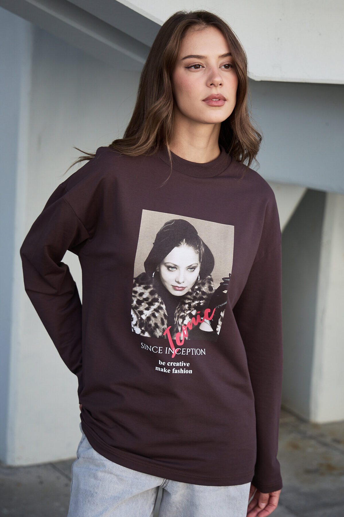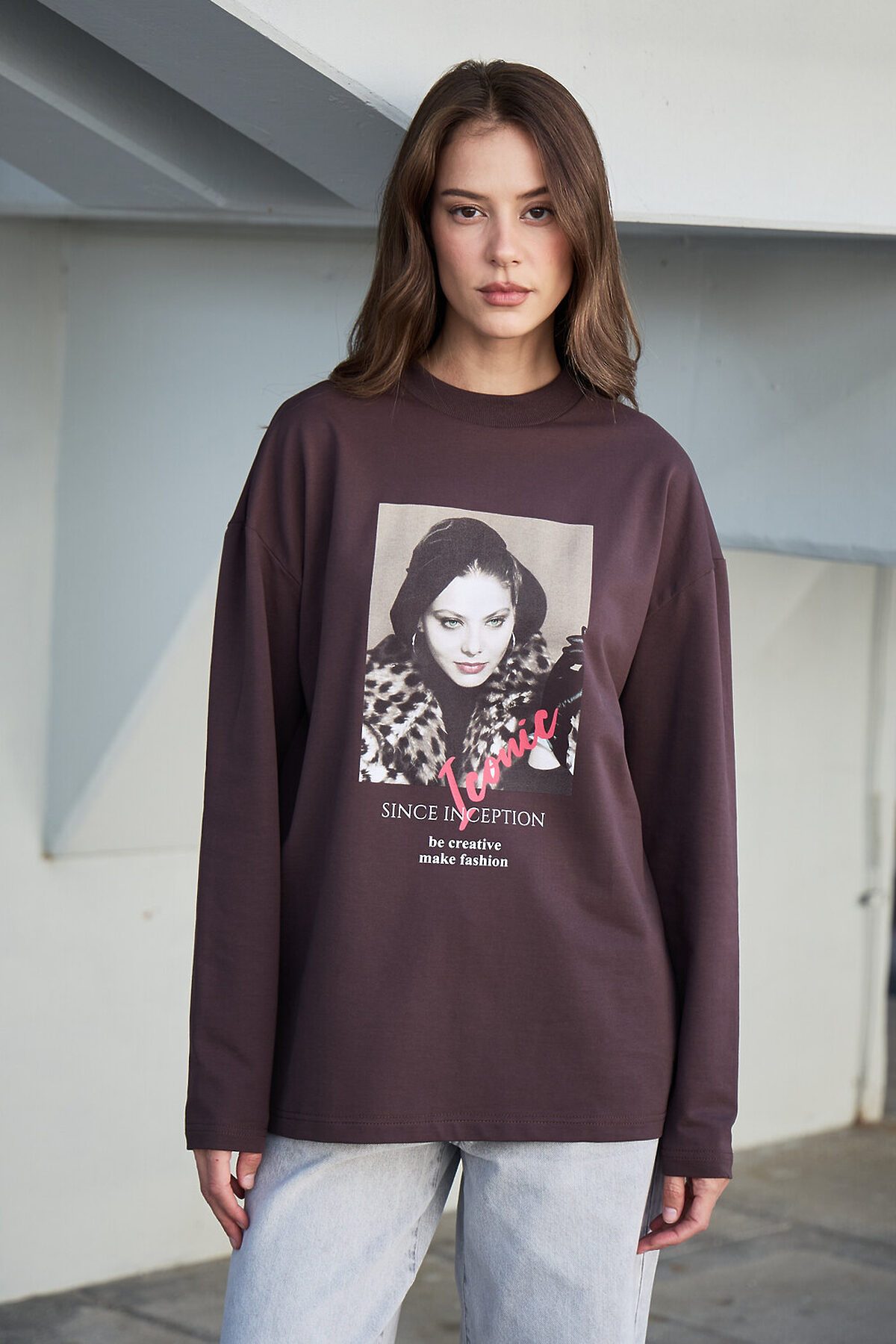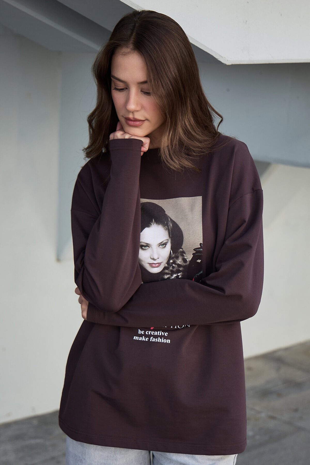 Лонгслив оверсайз с принтом НАТАЛИ, коричневый