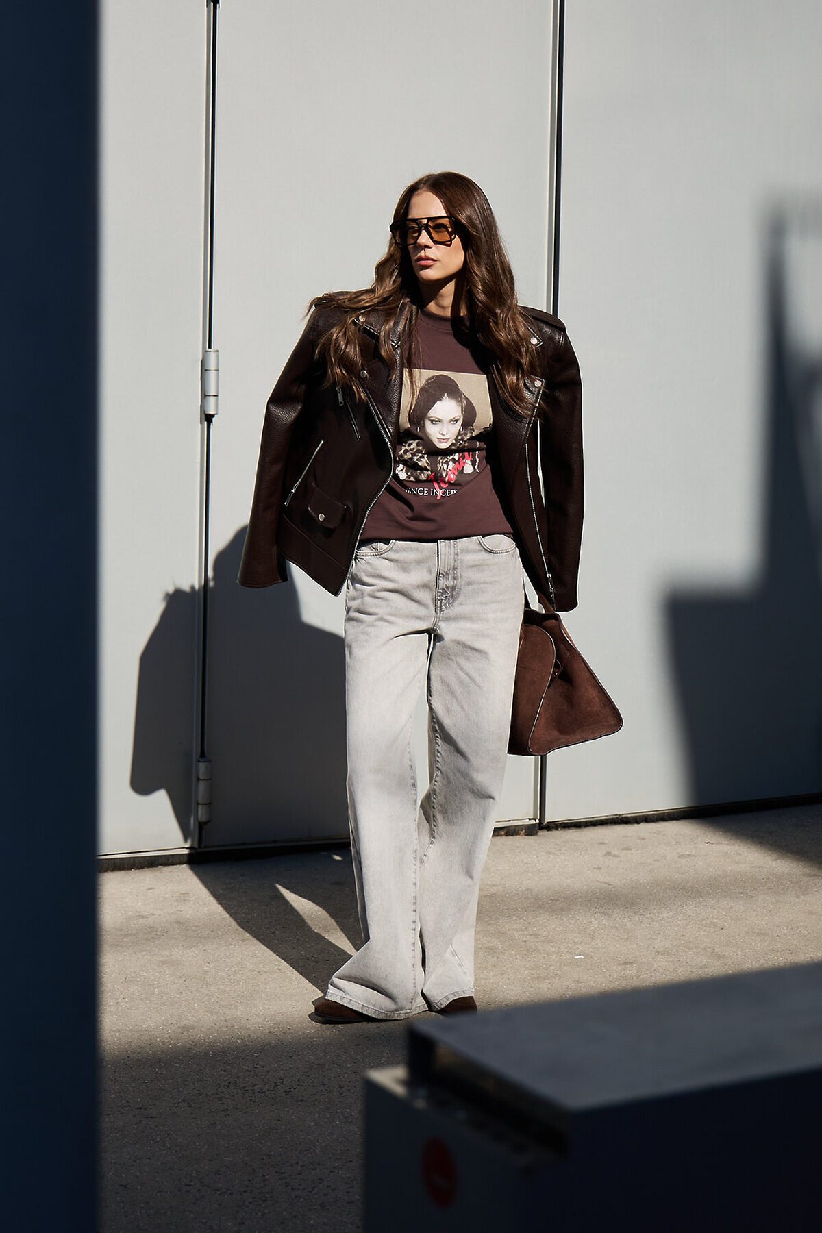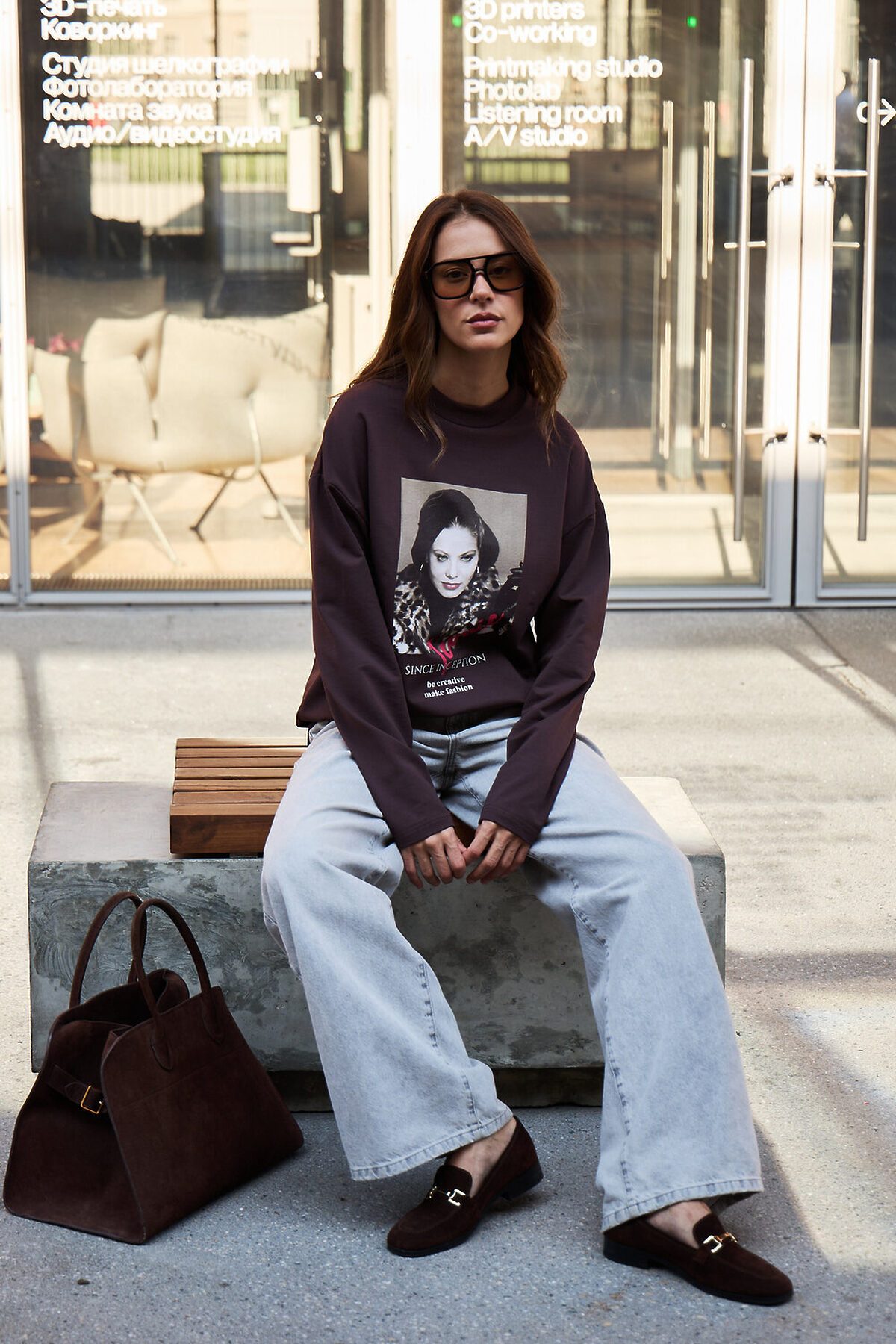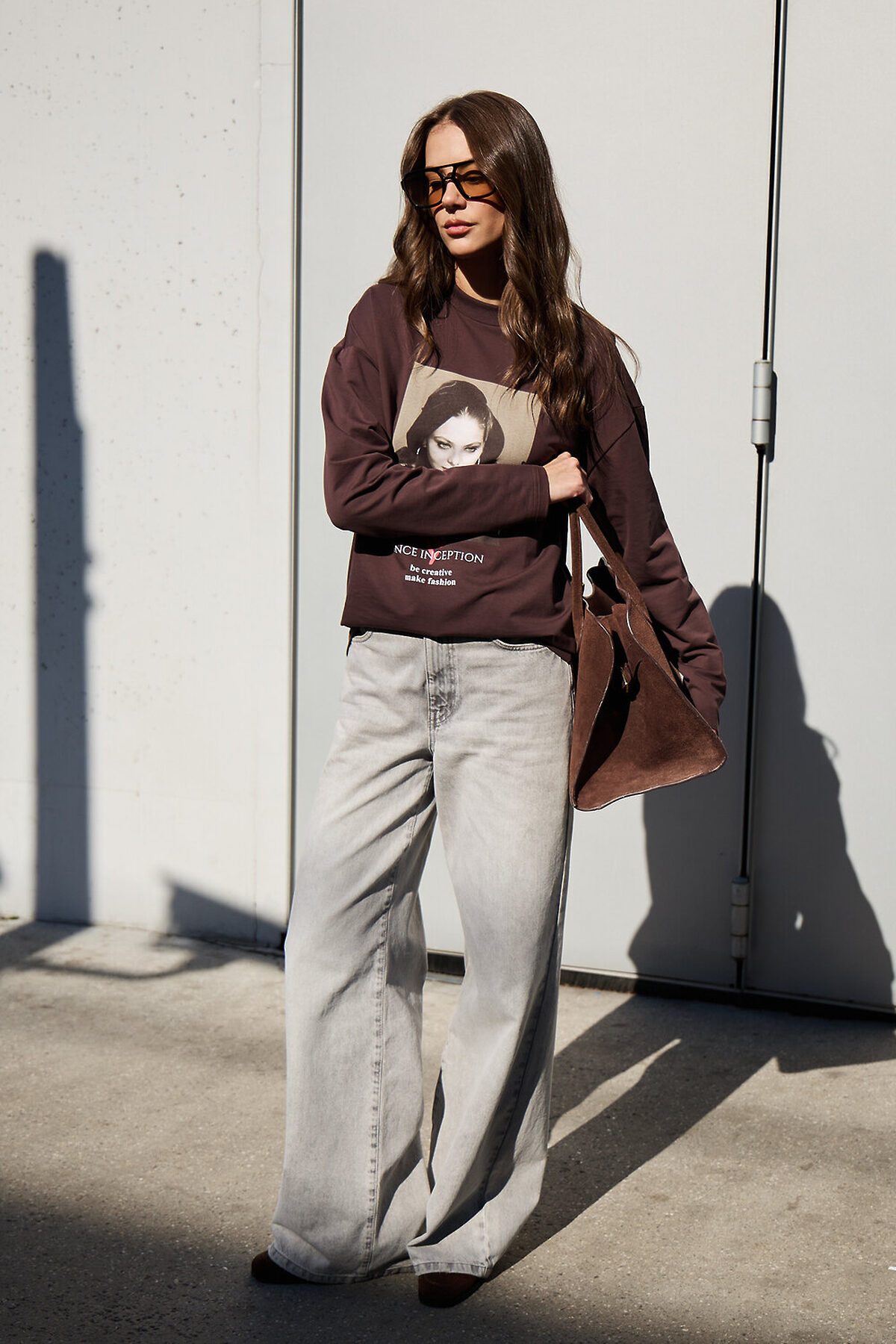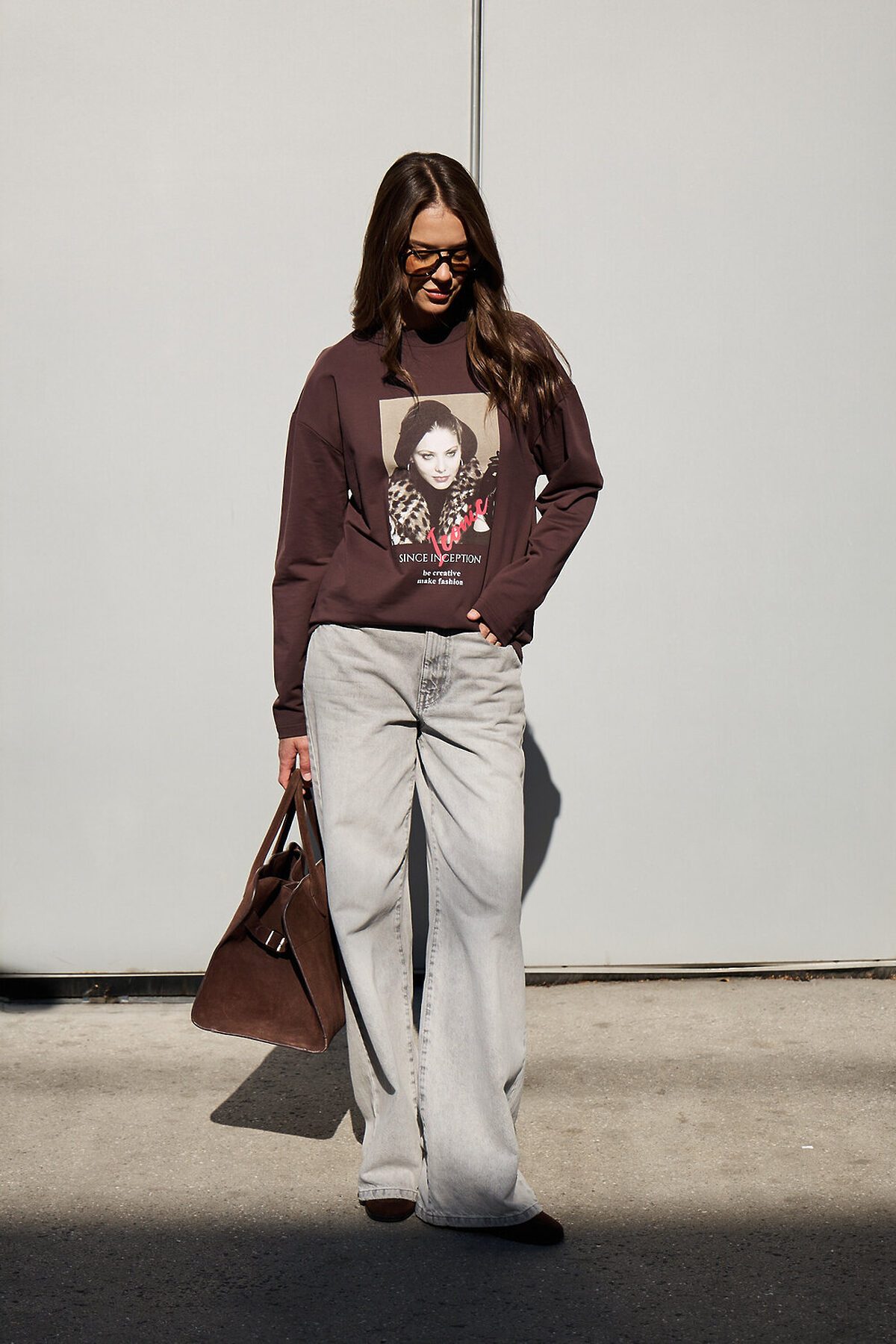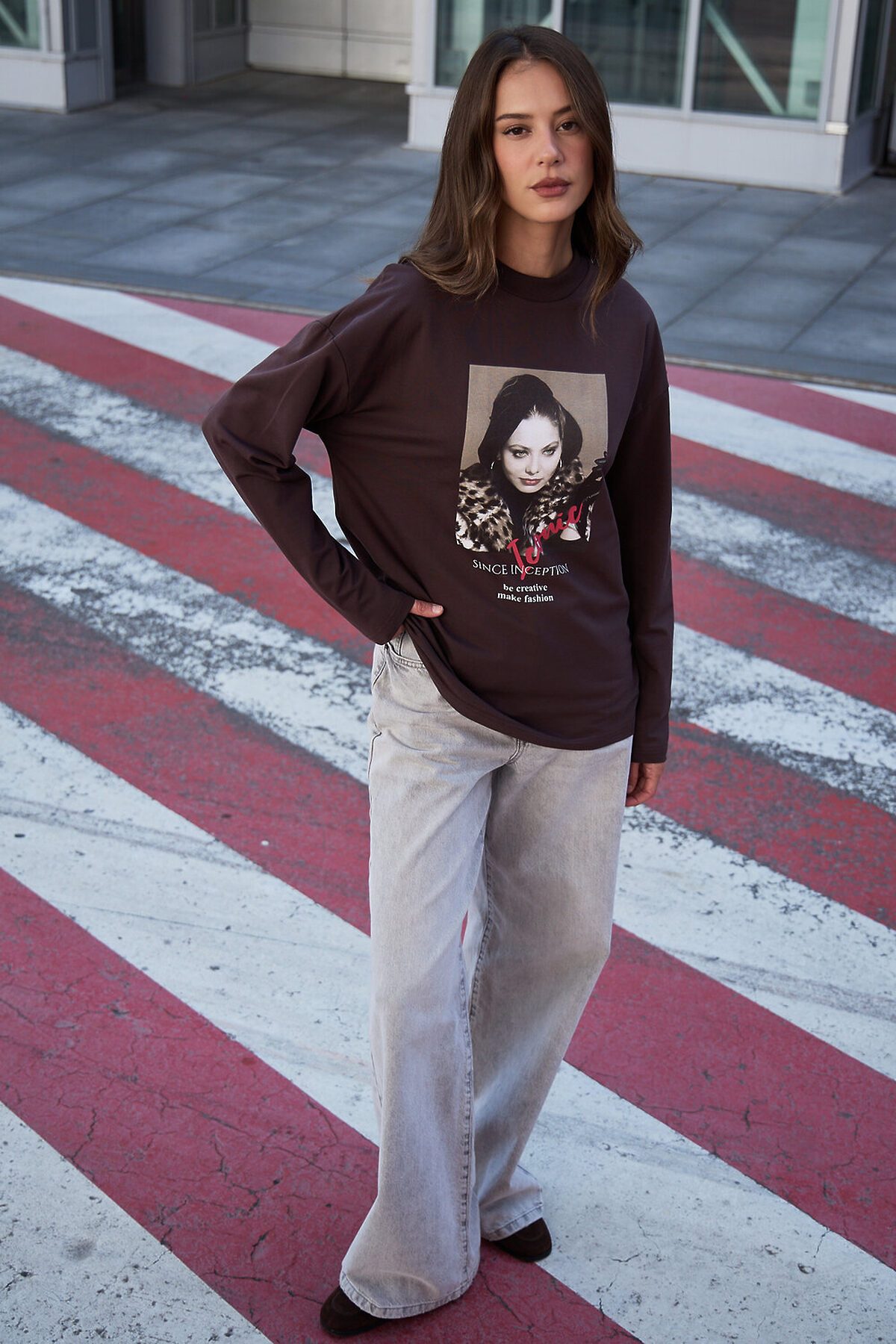 Лонгслив оверсайз с принтом НАТАЛИ, коричневый