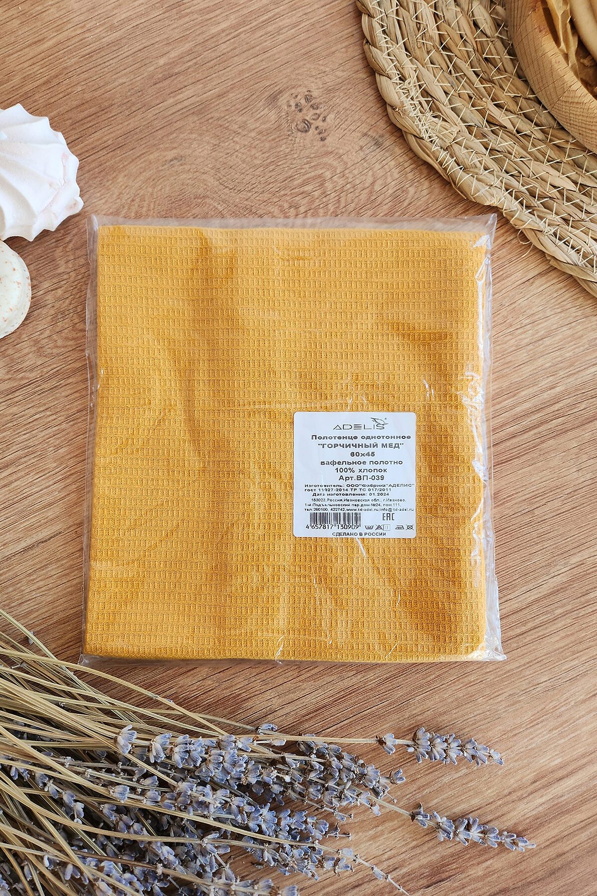 Полотенце вафельн. однотон. 60*45 150г/м2 пакет ТТ НАТАЛИ, горчичный