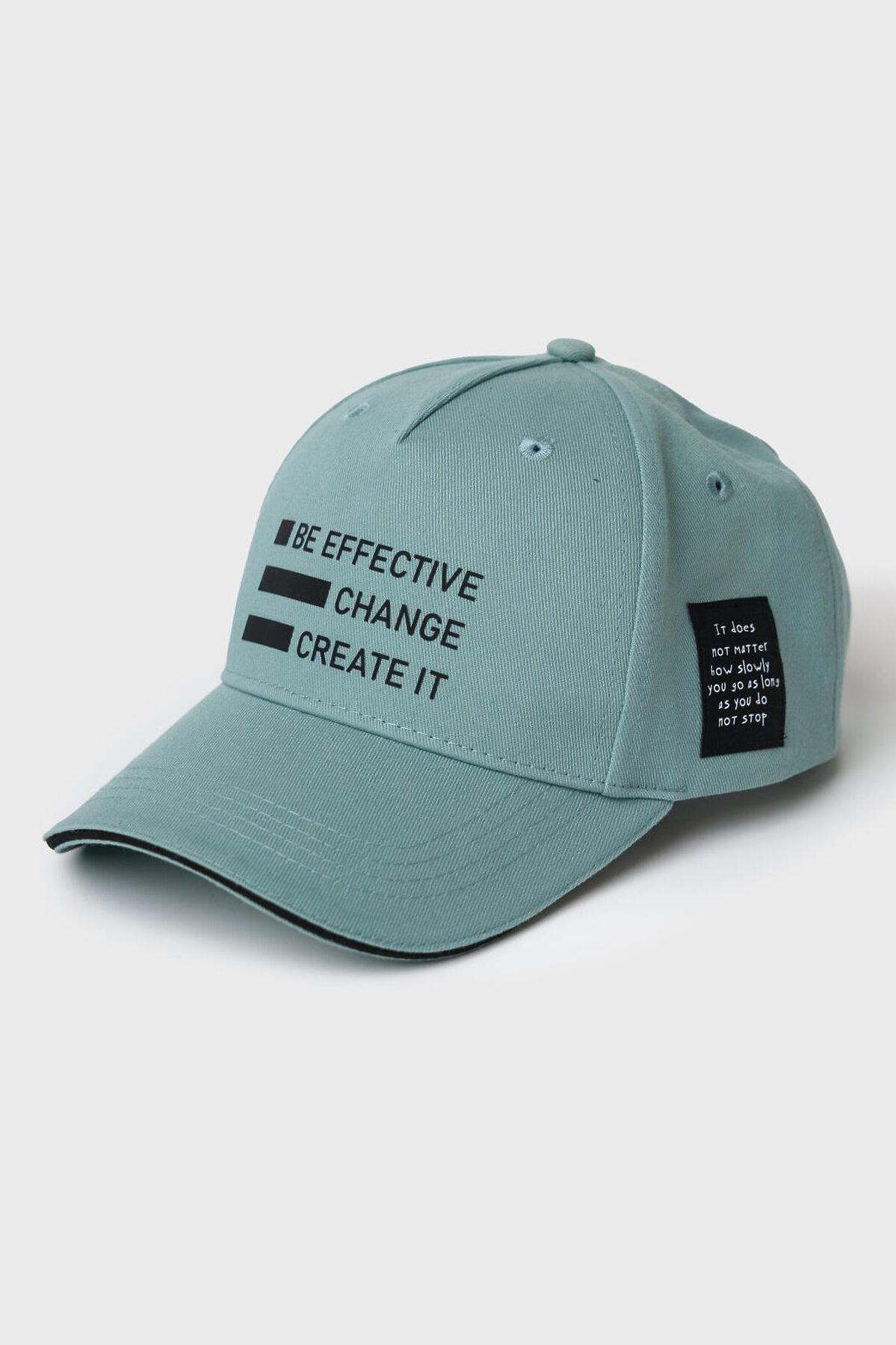 Бейсболка для мальчика подростка в модном стиле с эффектом вываренного денима. Изделие выполнено из фактурной ткани из 100% хлопка. Козырек изогнутый, с декоративной прострочкой и контрастным кантом. На передней панели расположен принт с мотивационным слоганом. Сбоку — текстовая нашивка с вдохновляющей цитатой. Вентиляция обеспечивается с помощью металлических люверсов. Размер регулируется пластиковой застежкой на кнопках. Бейсболка подойдет для весенне-летнего сезона.