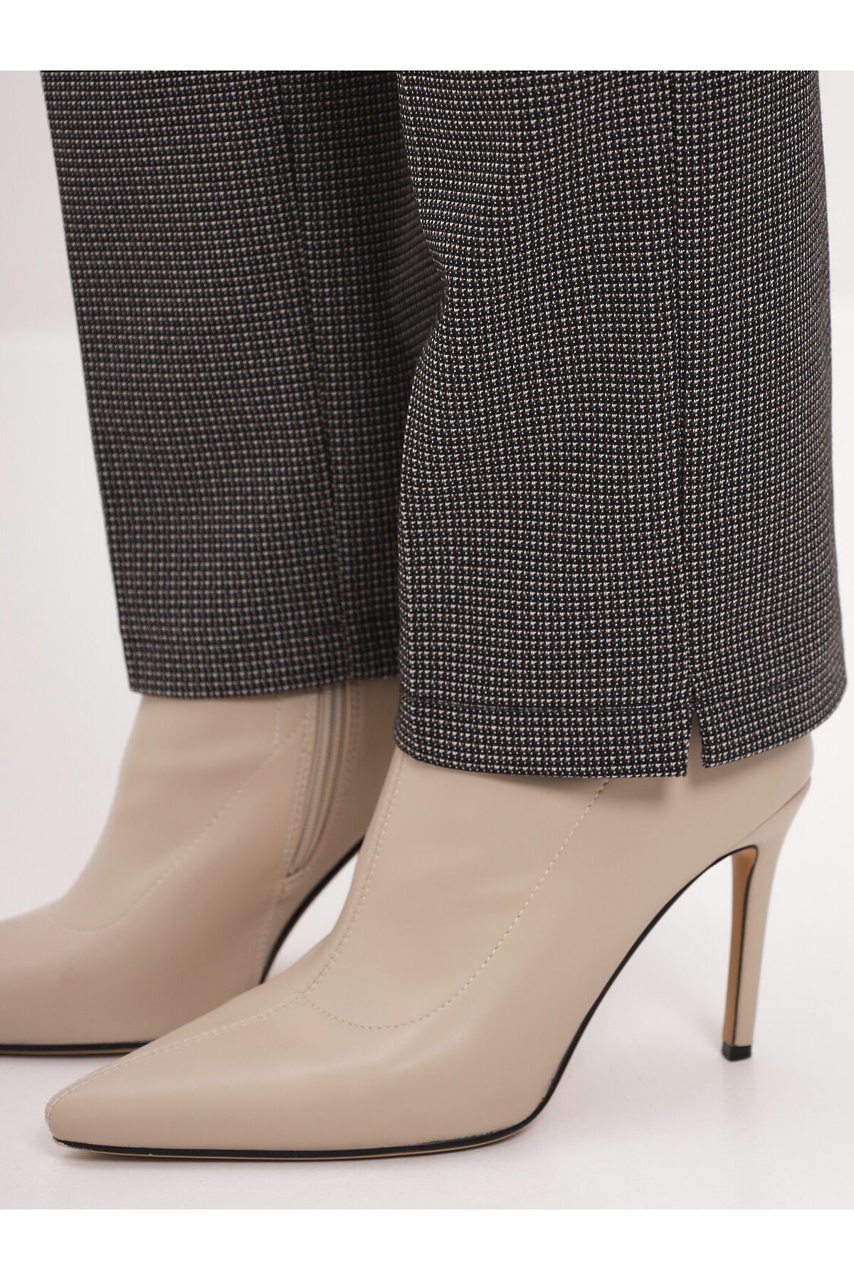Базовые брюки с классической посадкой. Модель с завышенной линией талии имеет немного зауженный крой, полноценную длину и разрезы внизу по бокам. Боковые действующие карманы, сзади два кармана-обманки. Пояс брюк на резинке - идеально подойдут на любую фигуру. Классические расцветки отлично впишутся в любой образ и для любого случая.