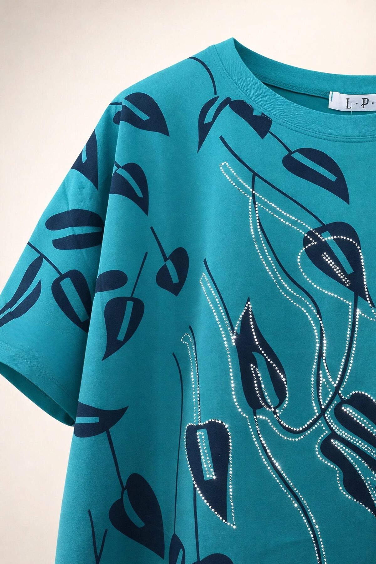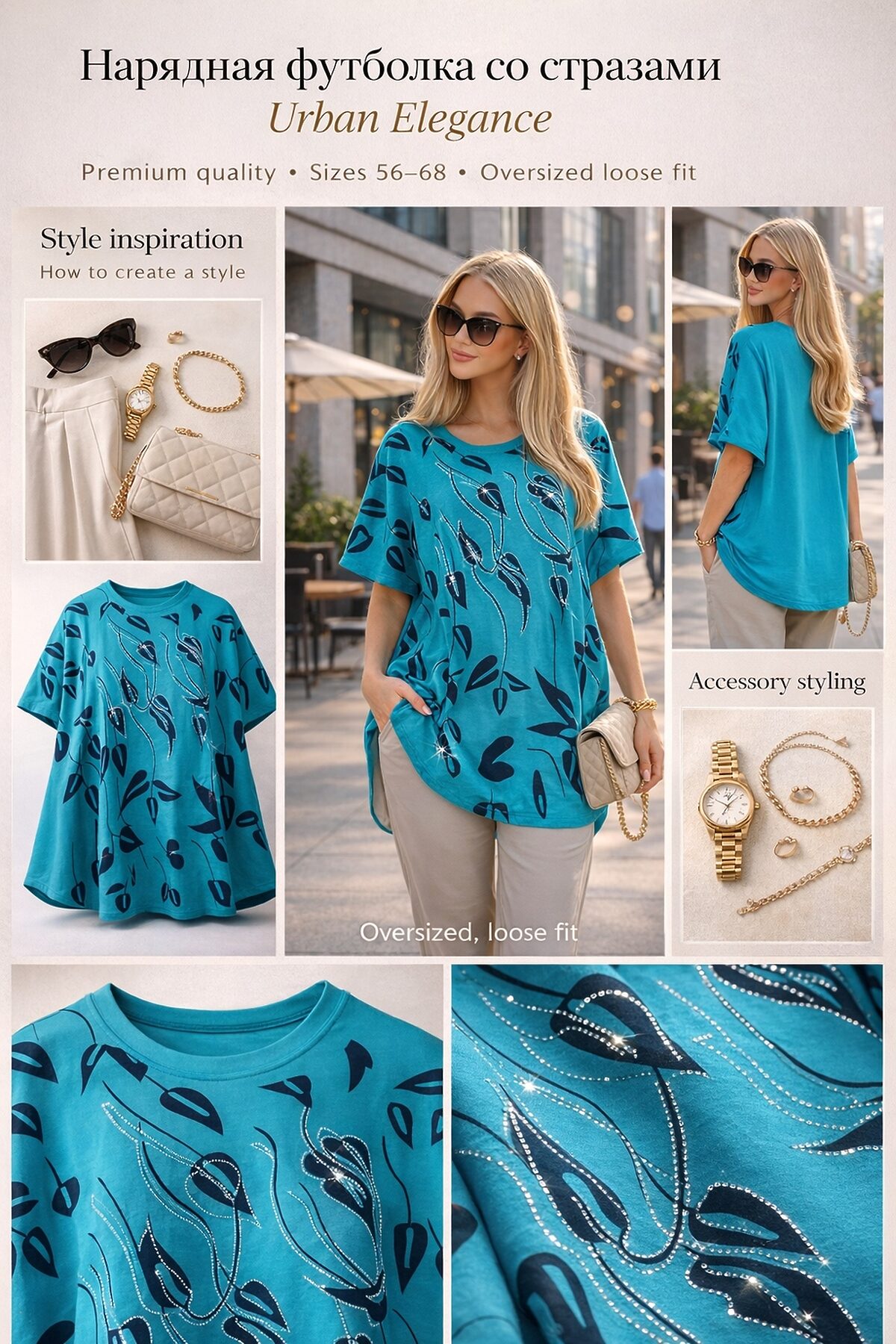 Нарядная футболка-туника oversize со стразами Urban Elegance, арт. F8113 где повседневный комфорт встречается с городской роскошью это современная интерпретация базовой футболки: свободный оверсайз-крой, изысканный графичный принт и утончённые стразы превращают её в настоящий must-have для женщин, ценящих элегантность без излишеств. Изделие выполнено из высококачественного хлопкового стрейча (95% хлопок, 5% спандекс) плотного, но мягкого и приятного к телу материала. Благодаря добавлению лайкры ткань обладает отличной эластичностью: она идеально подстраивается под фигуру, не сковывая движений, и сохраняет форму даже после многократных стирок. Спущенная линия плеча создаёт расслабленный, модный силуэт, визуально удлиняющий шею и придающий образу лёгкую небрежную грацию. Крой оверсайз обеспечивает универсальность: туника легко садится на фигуры размеров 5868, скрывая недостатки и подчёркивая достоинства. Это действительно единый размер, который работает благодаря продуманному крою и эластичности ткани. Центральный акцент ботанический принт в темной гамме, дополненный расстановкой страз по контурам листьев и ветвей. Стразы переливаются в свете, создавая эффект живого декора не кричащего, а деликатного, с глубиной и текстурой. Это не блеск ради блеска, а акцент, который говорит о вашем вкусе и внимании к деталям. Как носить? С классическими брюками и лодочками для делового ланча или вечерней прогулки; С кожаными шортами и ботильонами для смелого уличного образа; С юбкой-миди и жакетом для официального мероприятия в неформальной обстановке; С леггинсами или джинсами и кроссовками для комфорта без потери стиля; С поясом поверх туники чтобы подчеркнуть талию и добавить структуры. Уход: Деликатная стирка при 30C, без отбеливателей. Рекомендуется выворачивать изделие наизнанку перед стиркой для сохранения блеска страз. Гладить через тканевую прокладку, избегая прямого контакта утюга с декором. Urban Elegance Это ваш стиль: уверенный, утончённый, современный. Наденьте эту тунику и вы будете выглядеть так, будто только что вышли из модного журнала.
