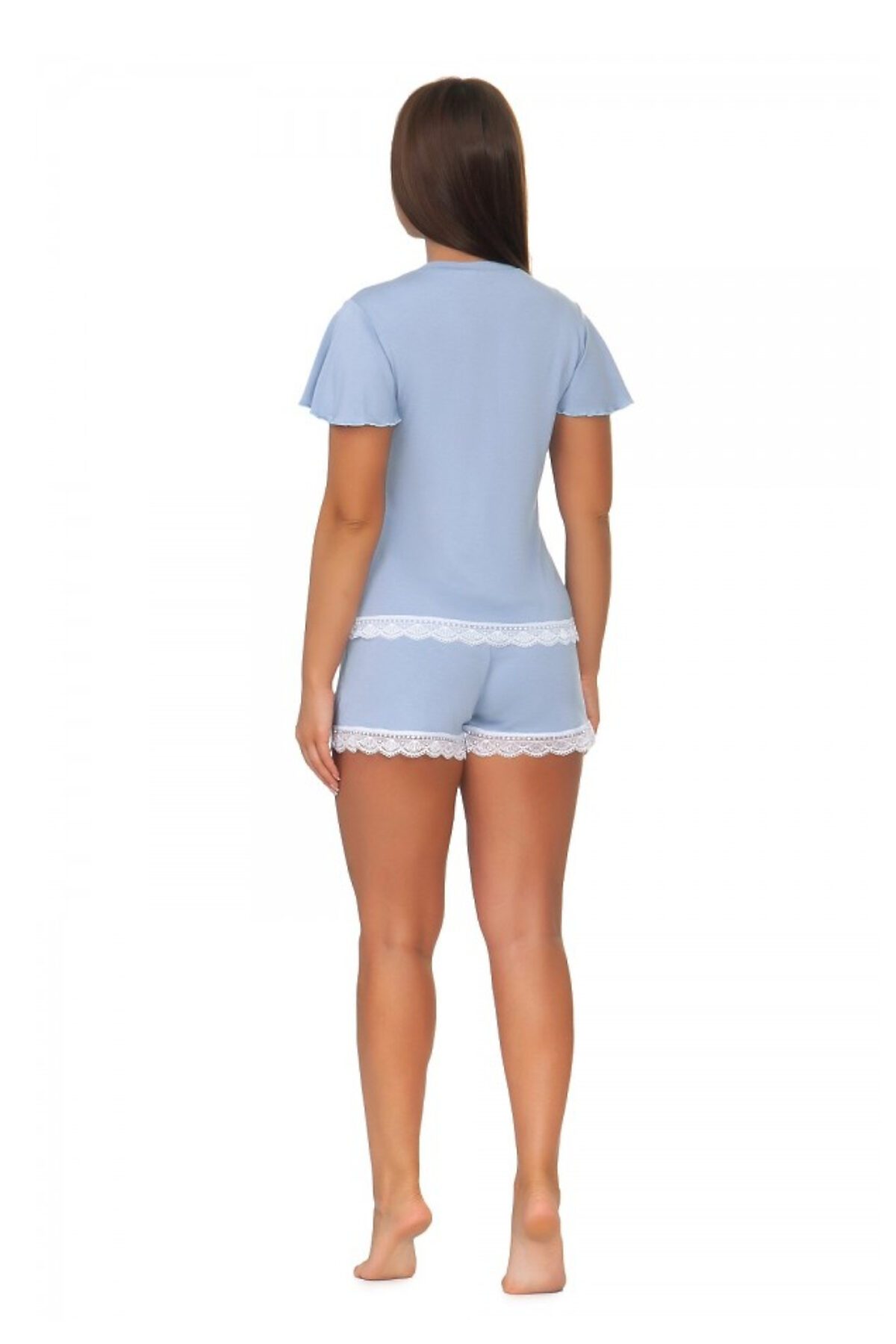 Пижама женская: футболка с кружевной отделкой и с рукавами-крылышками; шорты с кружевом по низу. Материал: очень нежная и комфортная вискоза, тонкое мягкое кружево.