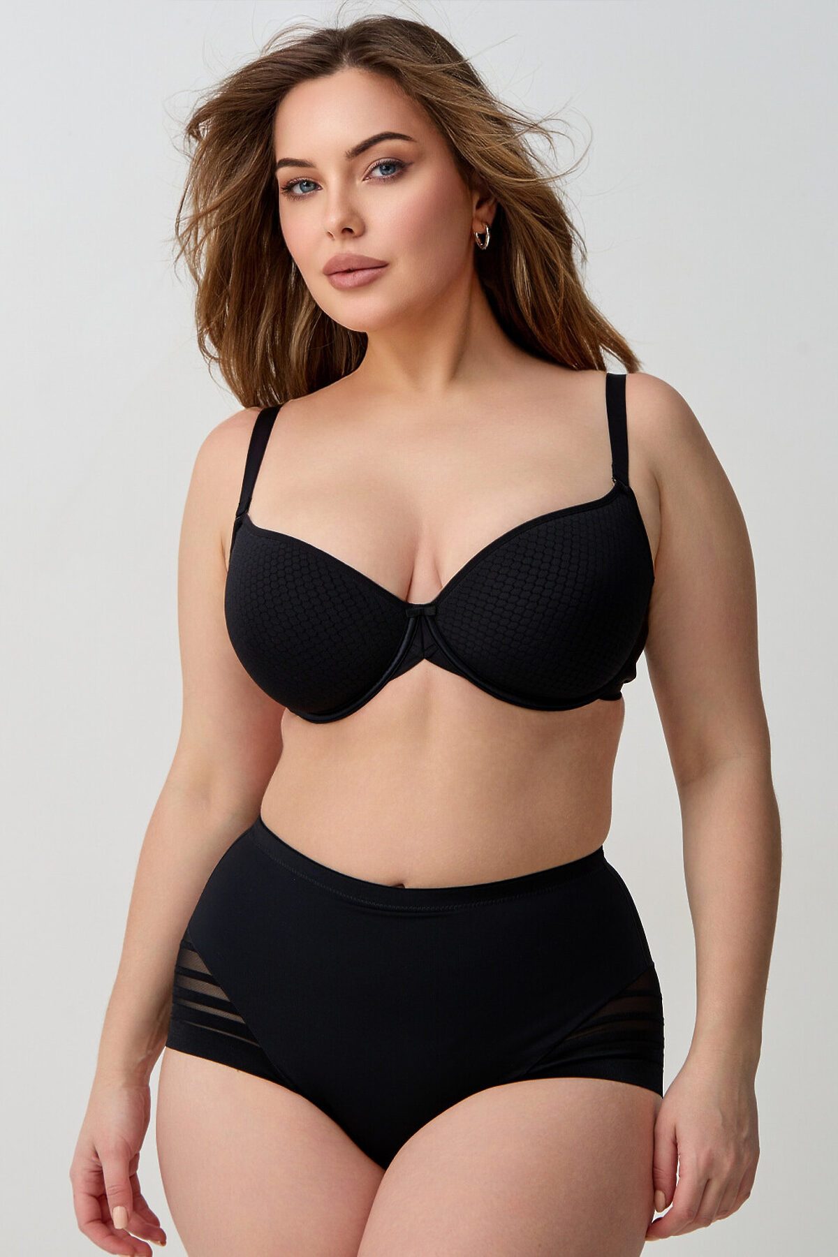 Бюстгальтер с чашками из инновационного материала спейсер создан для максимального комфорта и идеальной посадки. Трёхслойная 3D-текстура ткани обеспечивает циркуляцию воздуха, позволяя коже дышать и сохраняя ощущение свежести в течение дня. Чашки формируют естественную линию груди, а каркасы обеспечивают устойчивую поддержку. Гладкий стан и рисунок на чашках придают модели лёгкость и женственность, оставаясь при этом незаметными под одеждой. Широкие мягкие бретели равномерно распределяют нагрузку на плечи и спину, снижая давление и повышая комфорт. Прочная конструкция сохраняет форму даже после длительного ношения, делая модель идеальным выбором для повседневного использования. Бретели регулируются и отстегиваются
